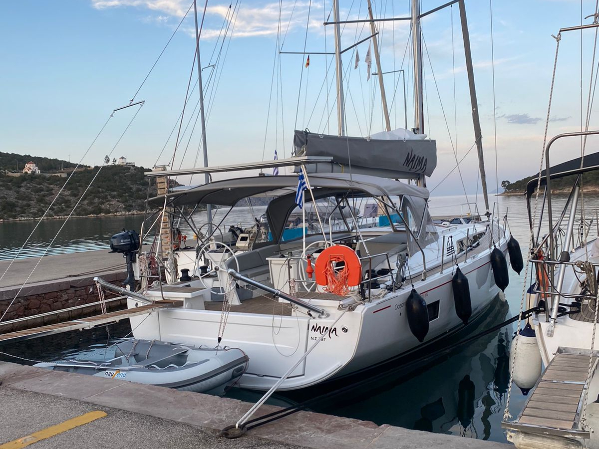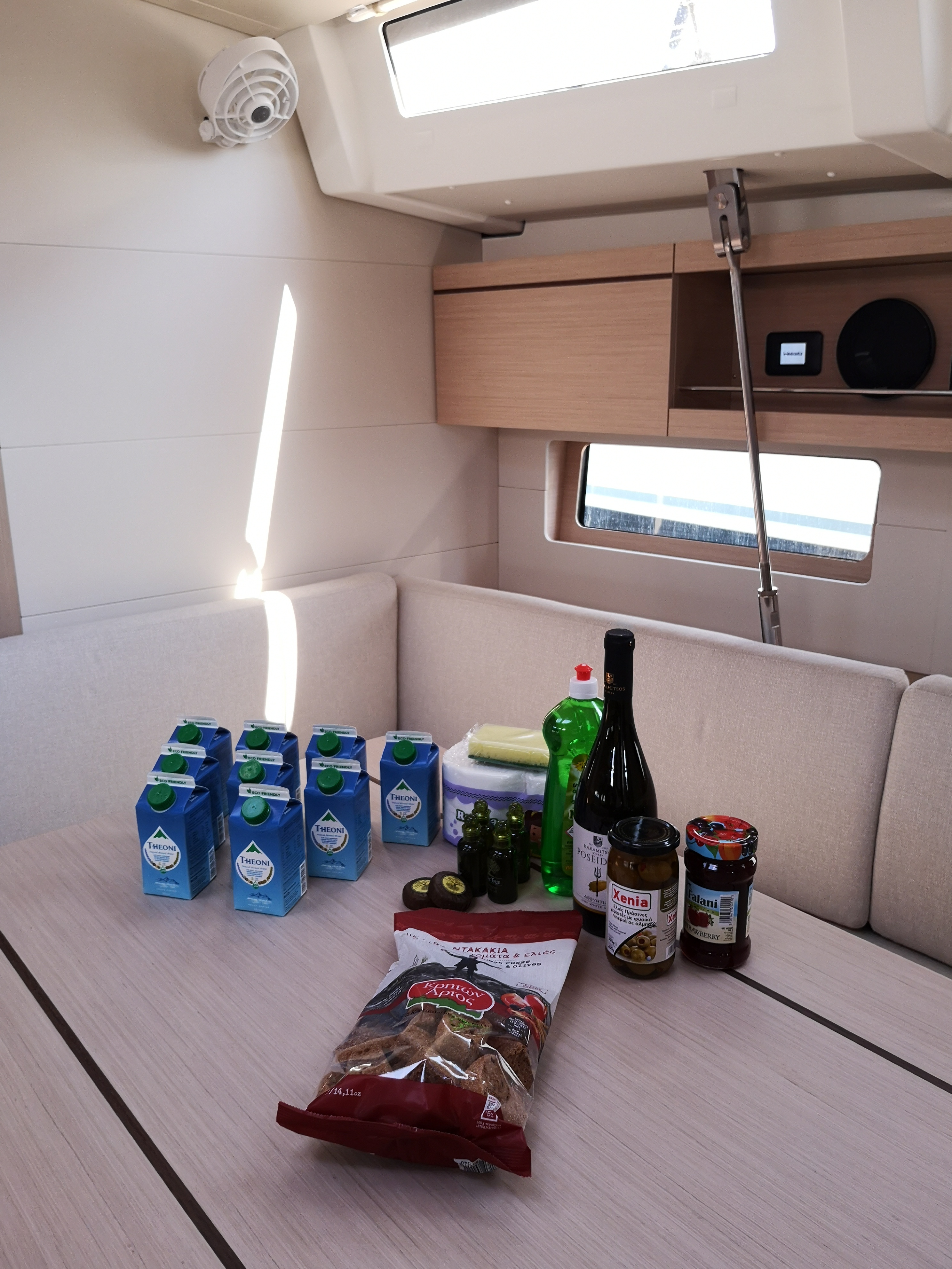 | Outside | Bathing ladder, Bathing platform (hydr.), Bimini top, Cockpit speakers, Cockpit cushions, Gangway, Snorkeling gear, Solar panels, Sprayhood, Teak deck |