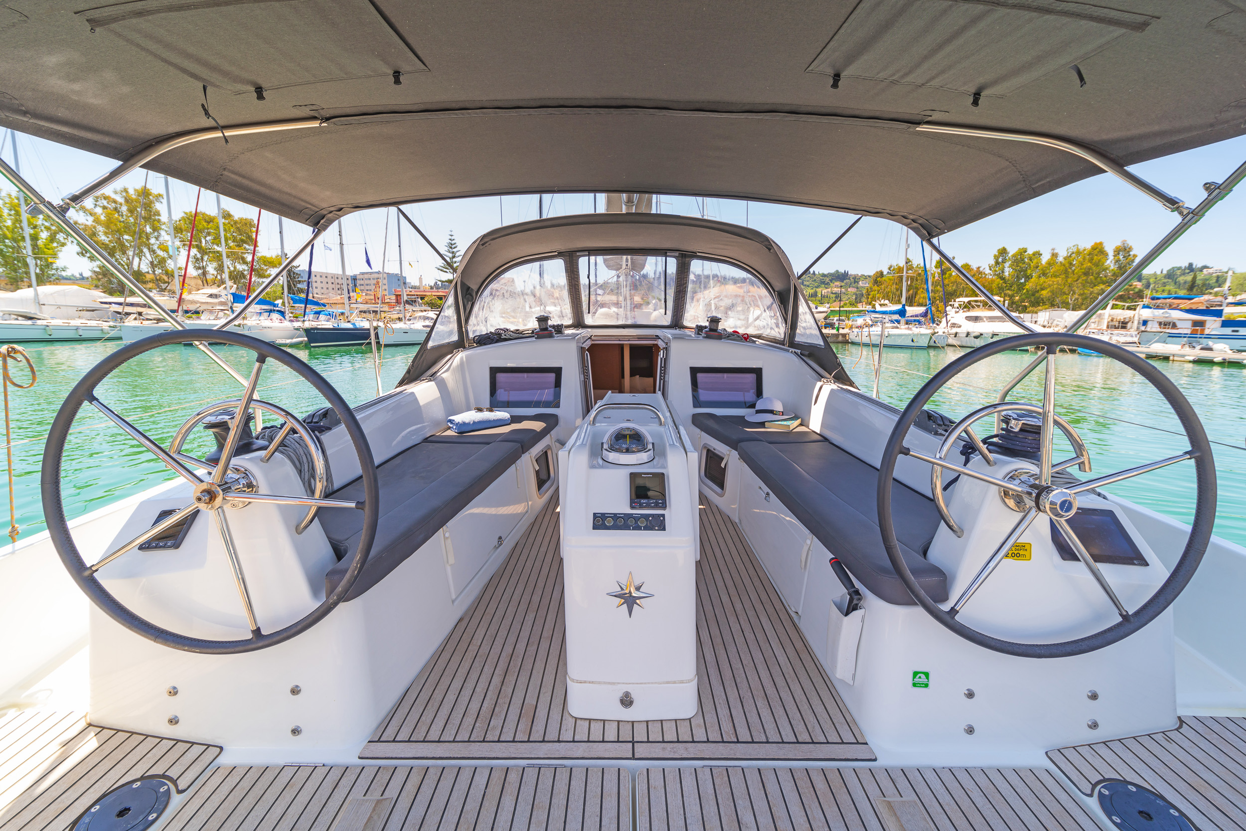 | Outside | Bathing platform, Bimini top, Cockpit speakers, Cockpit cushions, Gangway, Solar panels, Sprayhood |