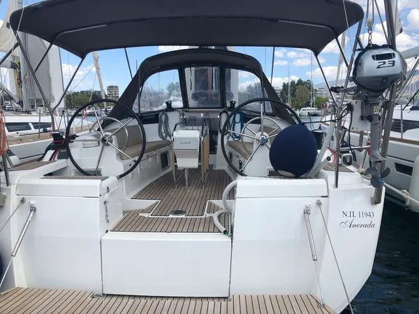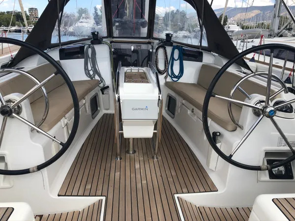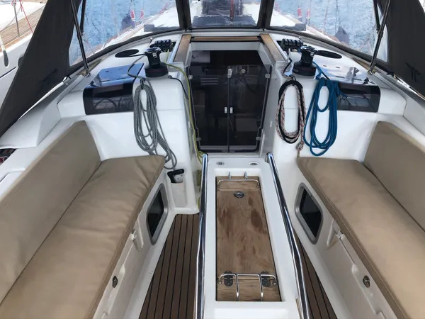 | Outside | Anchor with chain, Bathing ladder, Bimini top, Boat hook, Cockpit speakers, Cockpit cushions, Cockpit table, Jerry cans for diesel, Electr. anchor windlass, Fender, Mooring lines, Gangway, Plastic bucket, Snorkeling gear, Solar panels, Sprayhood, Teak in cockpit, Canister for water, Winches |