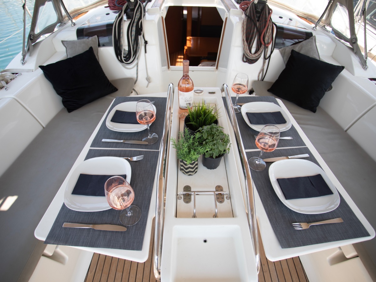 | Outside | Bimini top, Solar panels, Sprayhood |