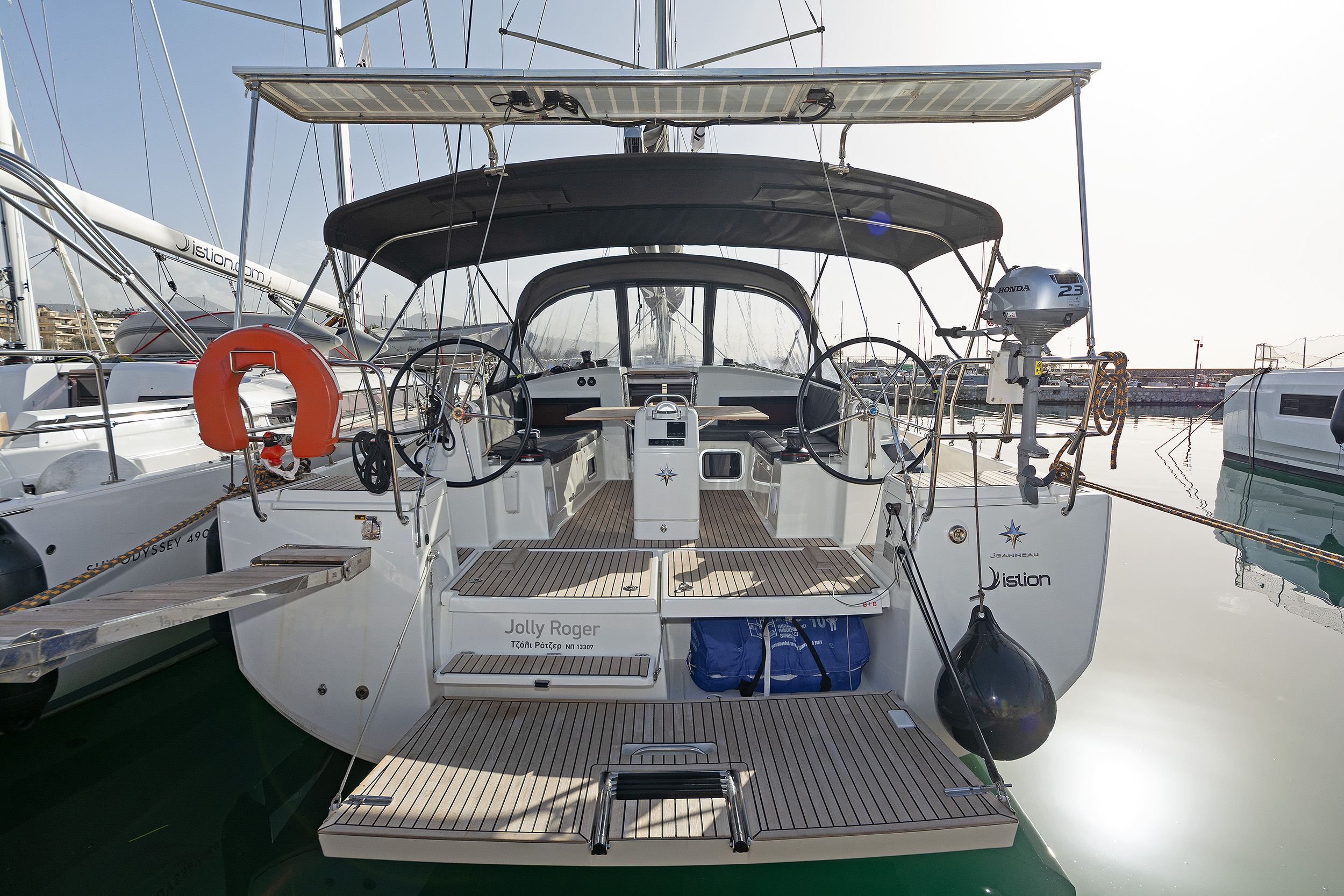 | Outside | Bimini top, Boat hook, Cockpit shower, Cockpit speakers, Cockpit cushions, electr. winch, Gangway, Solar panels, Sprayhood, Teak deck, Winches |