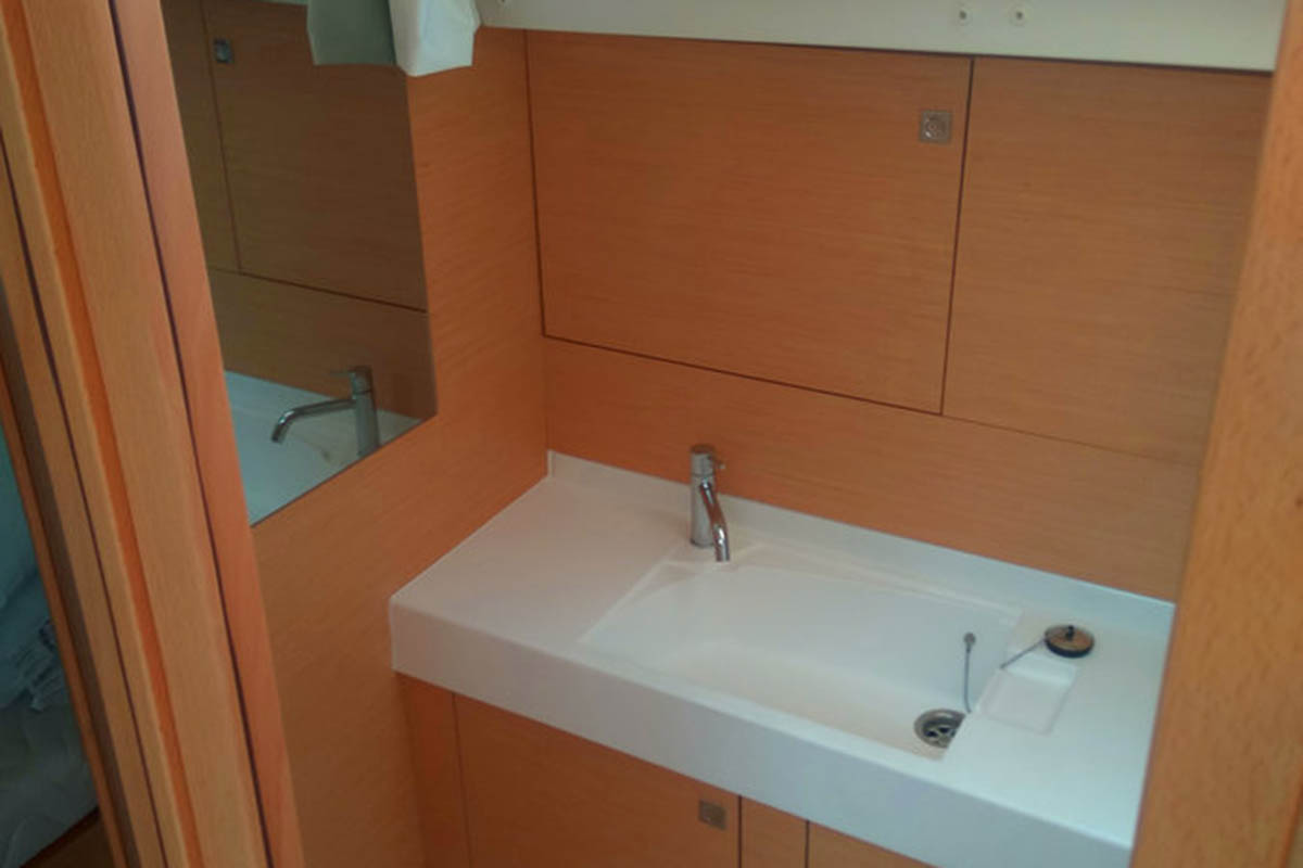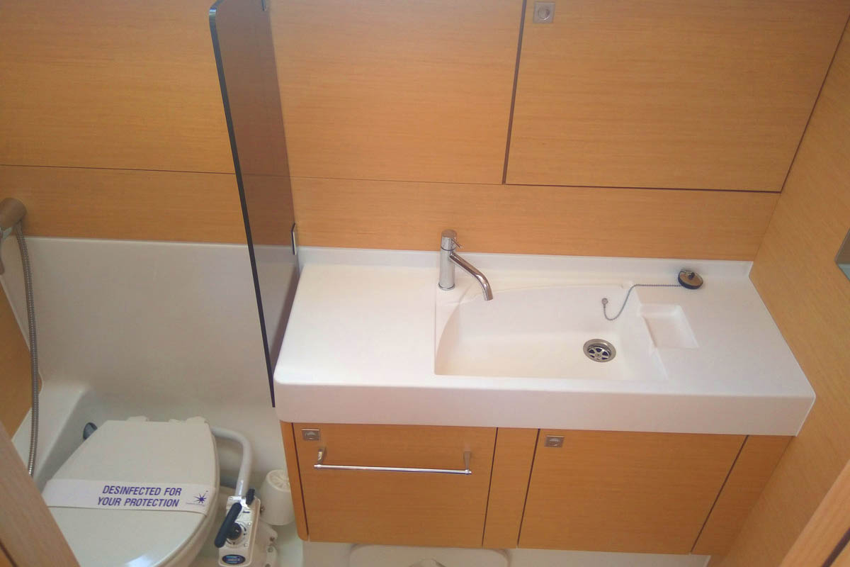 | Outside | 220V shore connection, Anchor with chain, Bathing ladder, Bathing platform, Bimini top, Cockpit shower, Cockpit speakers, Cockpit cushions, Cockpit table, Electr. anchor windlass, Sprayhood, Teak in cockpit, Winches |