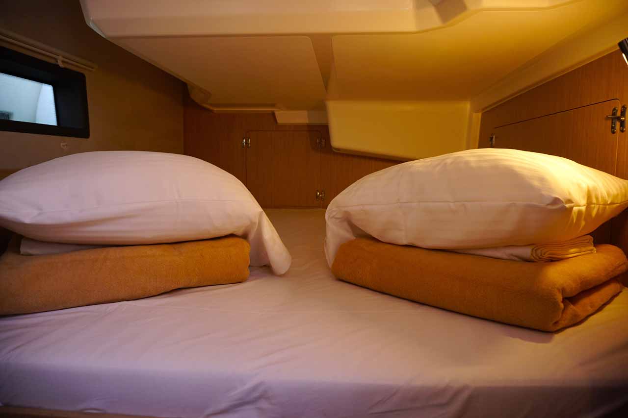 | Safety | Automatic life jackets, Autopilot, Lightning buoy, Bosun's chair, First aid kit, Tools, Bowthruster, Epirb, Solid life vests, Fire extinguisher, Handheld VHF, Engine spare parts , Fog horn, Distress signals, Radar reflector, Repair box for dinghy, Life raft, Searchlight, Torchlight, VHF with AIS, Second anchor |