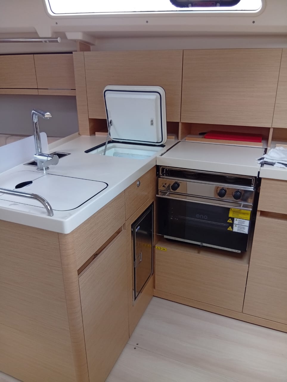 | Outside | Bathing ladder, Bimini top, Cockpit shower, Cockpit cushions, Cockpit table, Electr. anchor windlass, Gangway, Snorkeling gear, Sprayhood, Teak in cockpit |