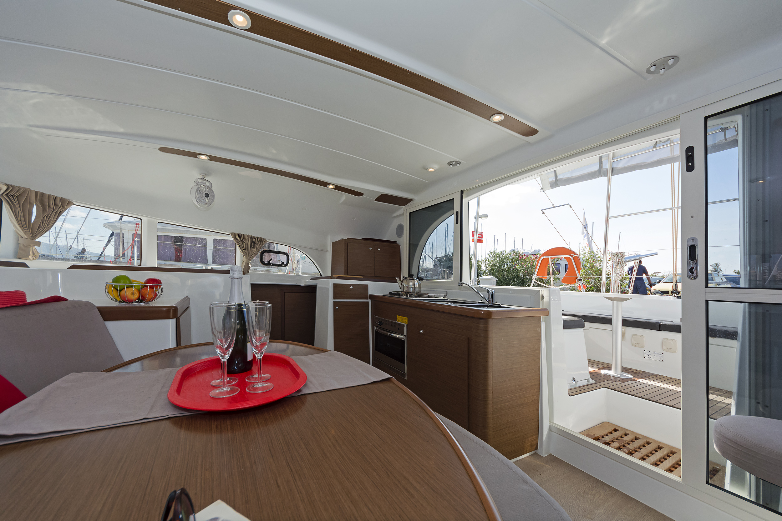 | Outside | 220V shore connection, Anchor with chain, Bathing ladder, Bimini top, Boat hook, Cockpit cushions, Cockpit table, Delta anchor, Electr. anchor windlass, Fender, Gangway, Snorkeling gear, Solar panels, Sprayhood, Wire (shroud) cutter, Water hose, Winches |