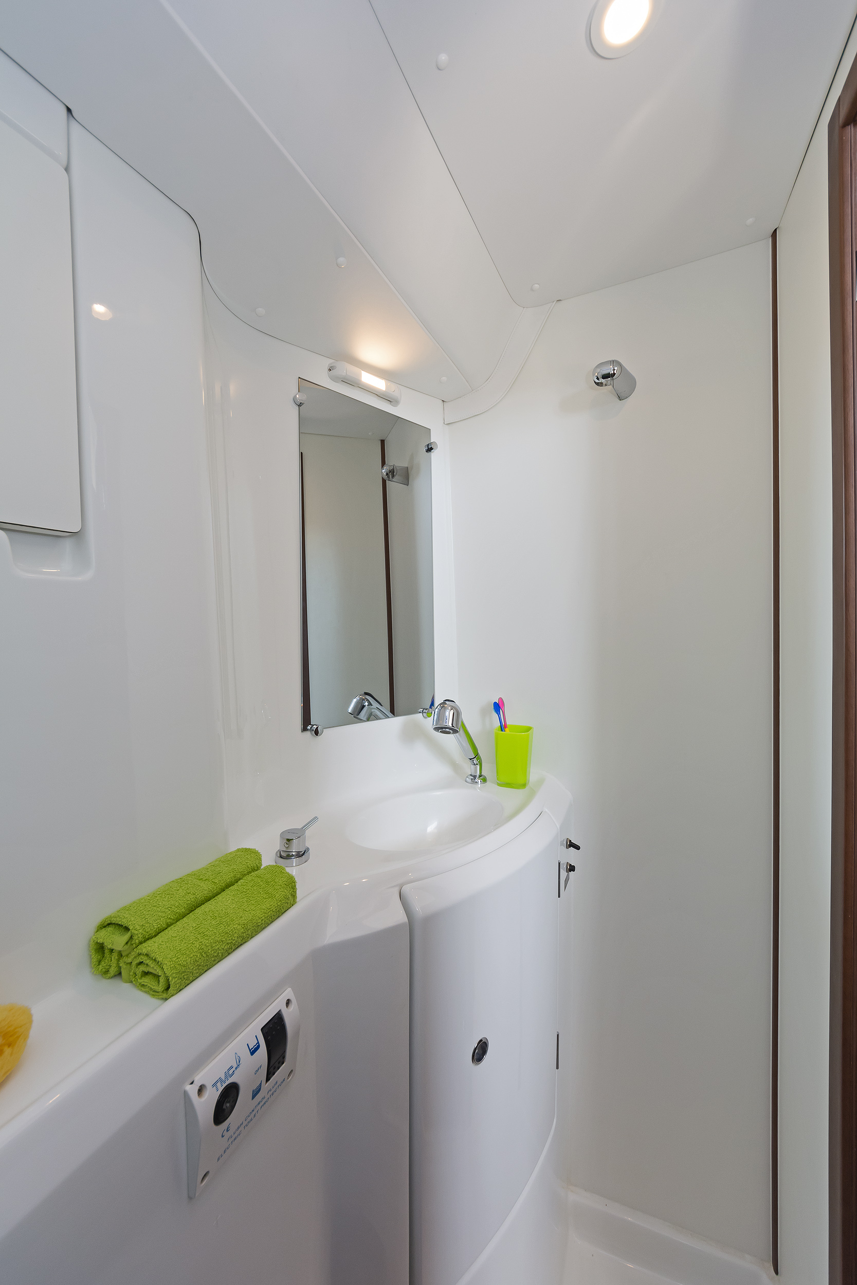 | Inside | 220V sockets, Gas oven, Refrigerator, Battery charger, Pantry equipment, Radio with CD/USB/MP3/Aux-In/Bluetooth, USB Socket, fans in cabins, Warm water, WC (electr.) |