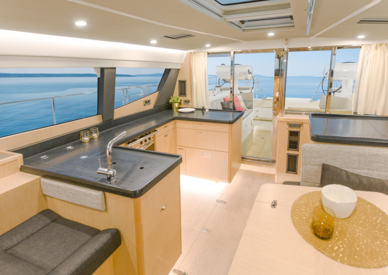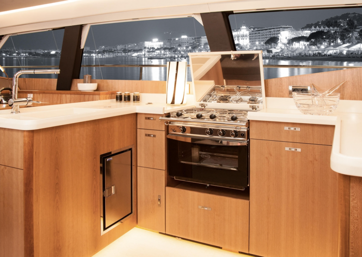 | Inside | Black water tank, Gas stove with oven, Freezer, Generator, Heating, Coffee machine, Airconditioning (independent from shore power), Refrigerator, Microwave oven, TV, Washing machine, Watermaker |