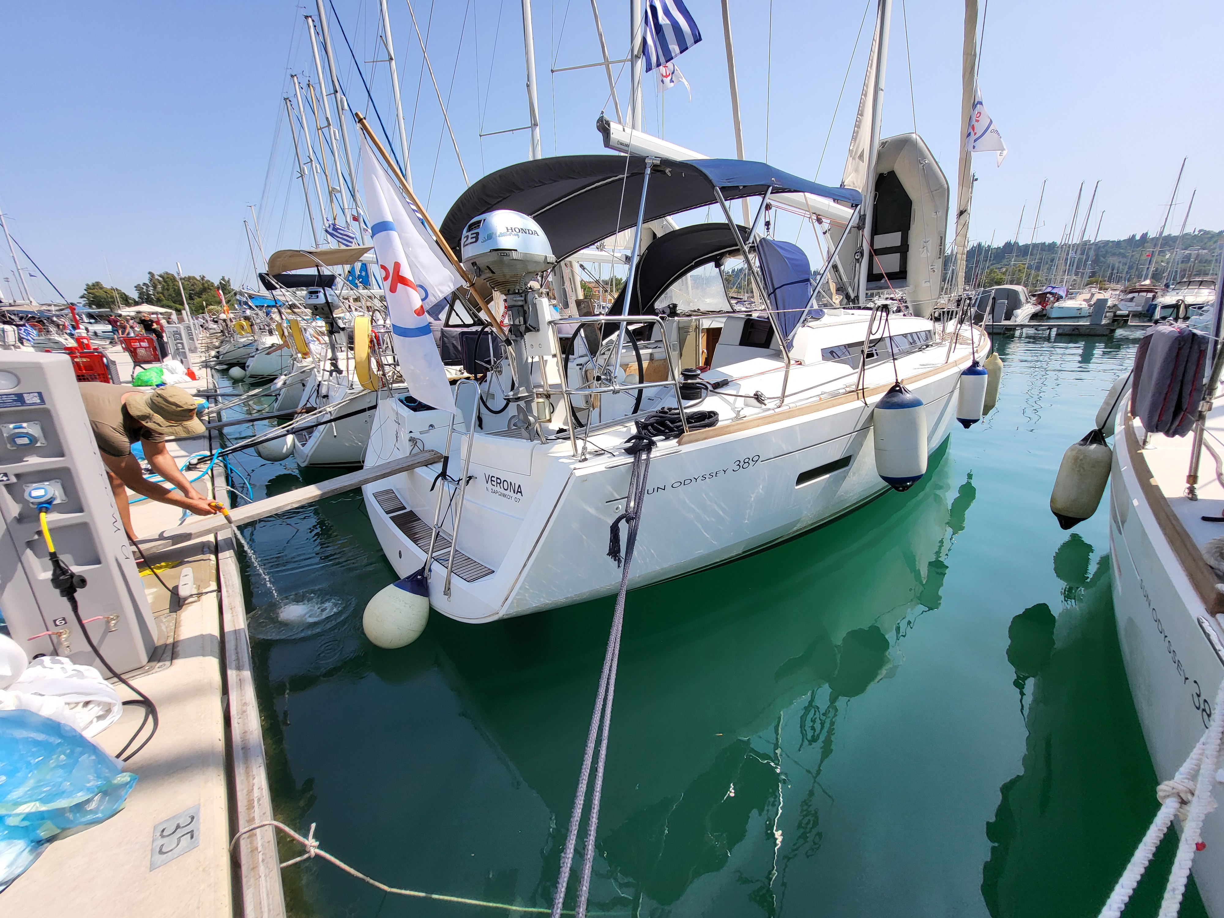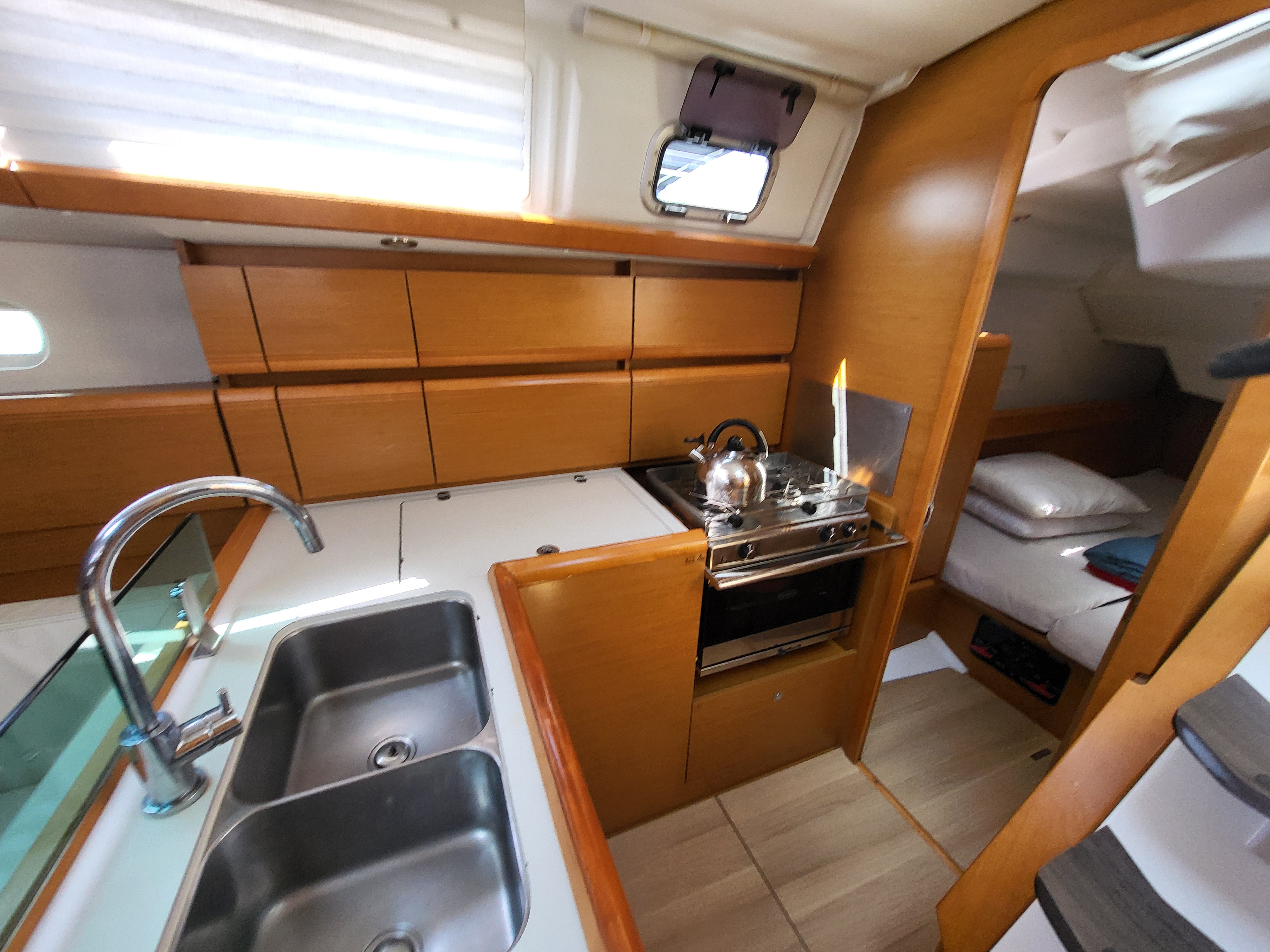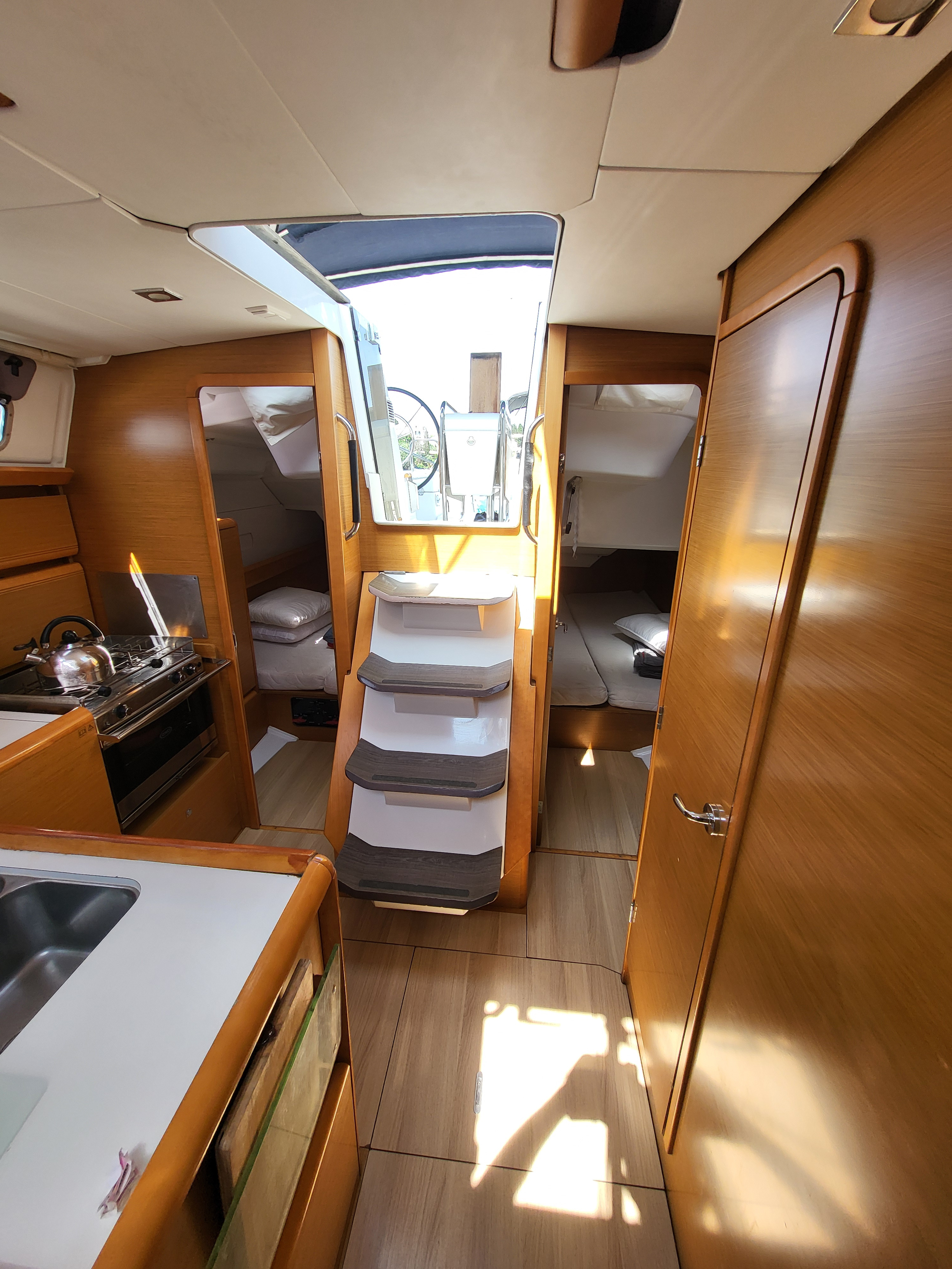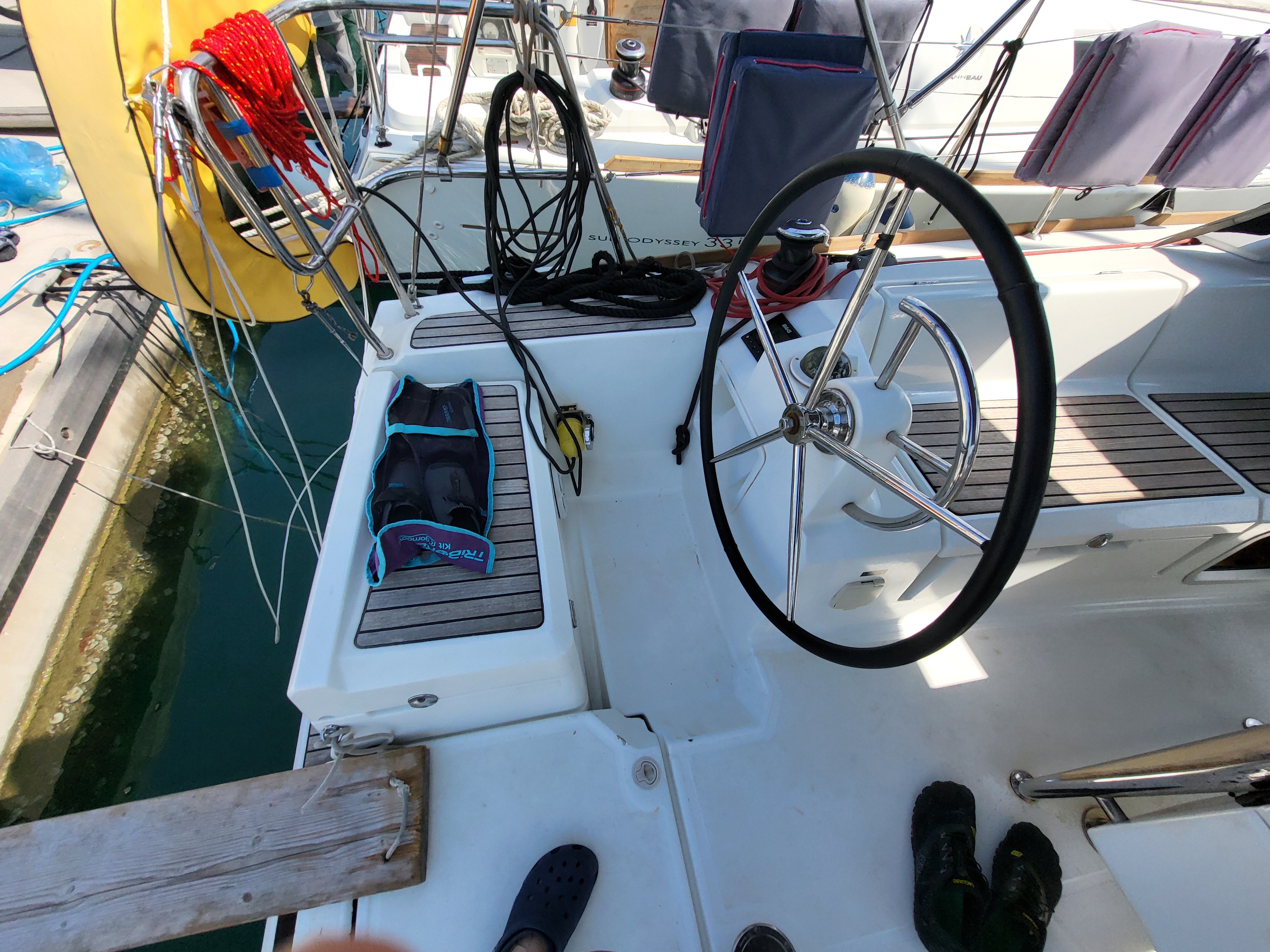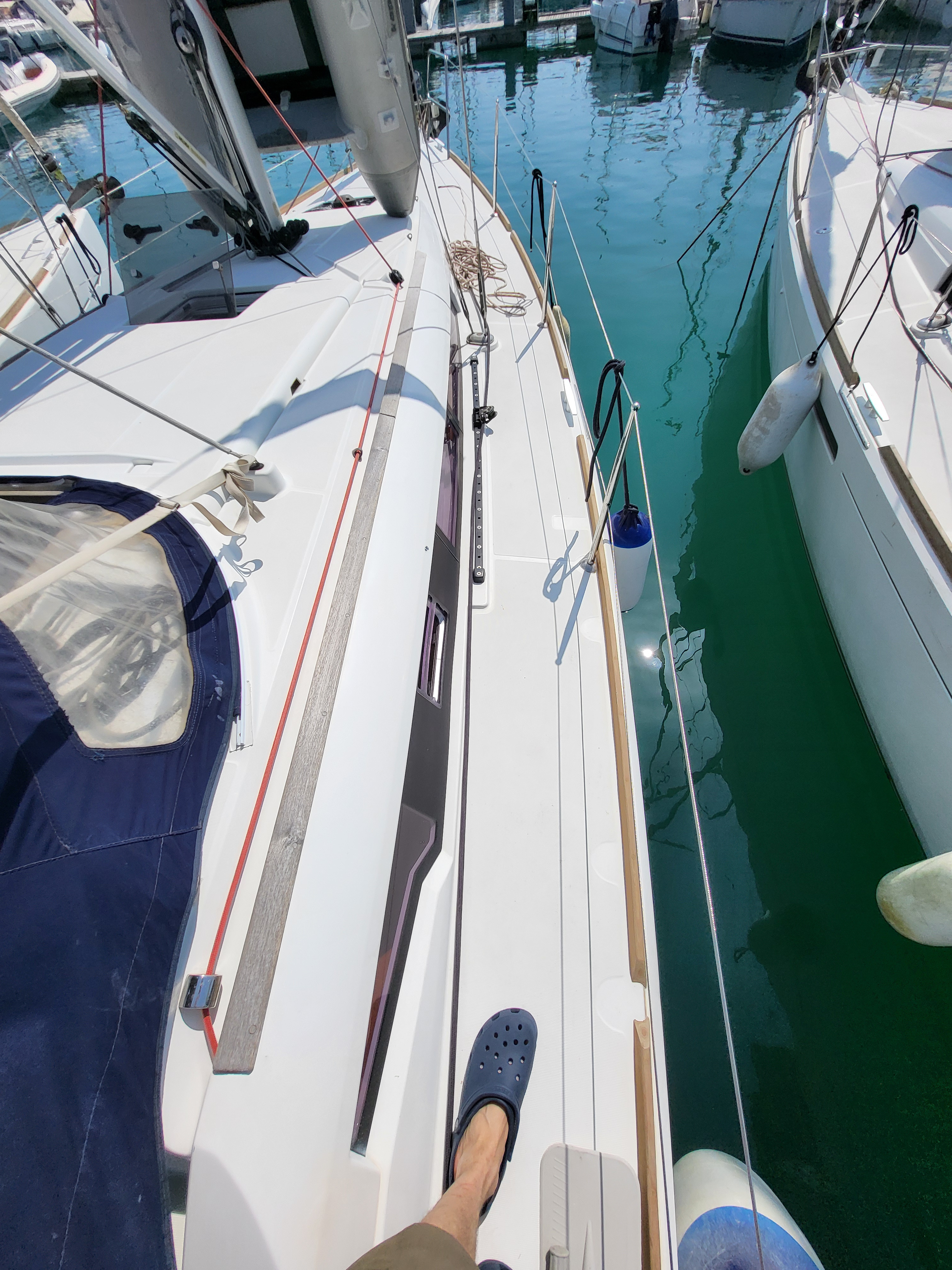 Die Yacht wurde mit schlecht funktionierender Ankerwinsch und lose Shekelam Schott am Baum an uns übergeben. Keine Unterstützung trotz Versprechen beim Anlegen am letzten Tag. Endabnahme am letzten Tag wurde nicht protokolliert und plötzlich abgebrochen und nicht zu Ende geführt. Das Boot war wirklich gut zum Segeln und leicht zu bedienen. Badeleiter viel zu kurz und keine Halterung beim aufsteigen. keine freie Fall - dadurch sehr schwierig das Beiboot ins Wasser abzusetzen bzw. aus dem Wasser zu holen. Kein Tau für z.B. Bullenständer. Fazit: Kinderkrankheiten eines neuen Boots (Baujahr Mai 2016). Das Personal von Omegasail nicht kompetent genug und unzuverlässig.