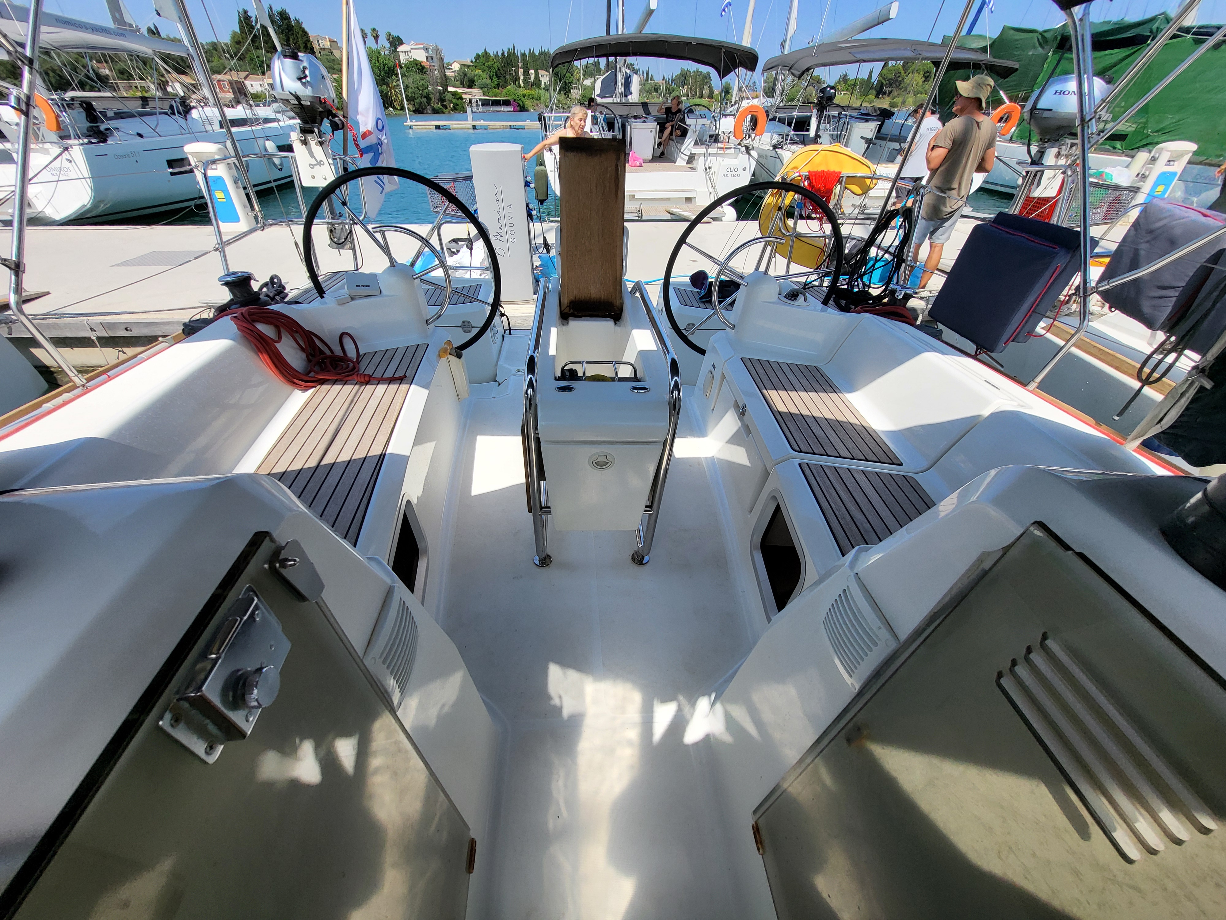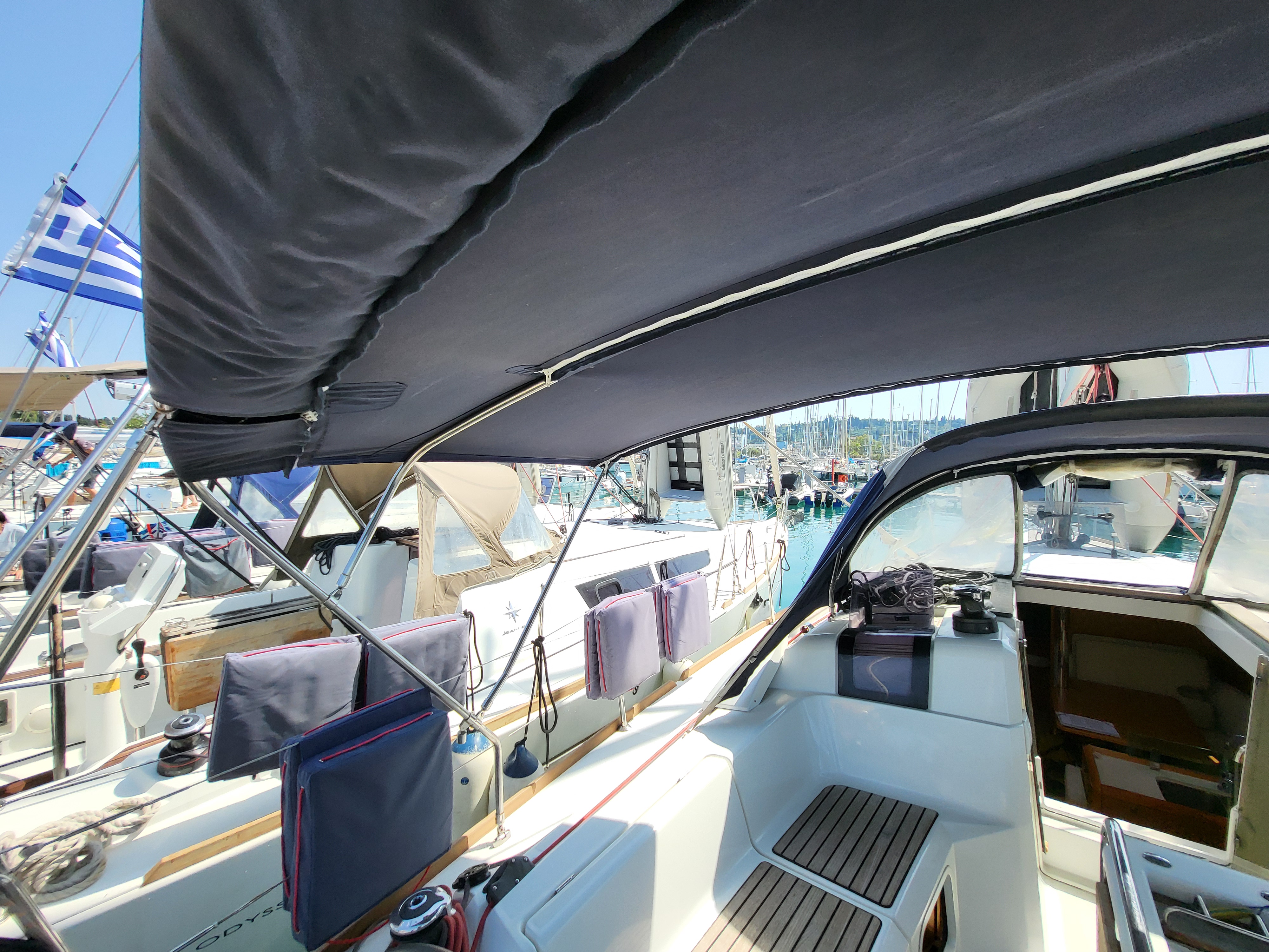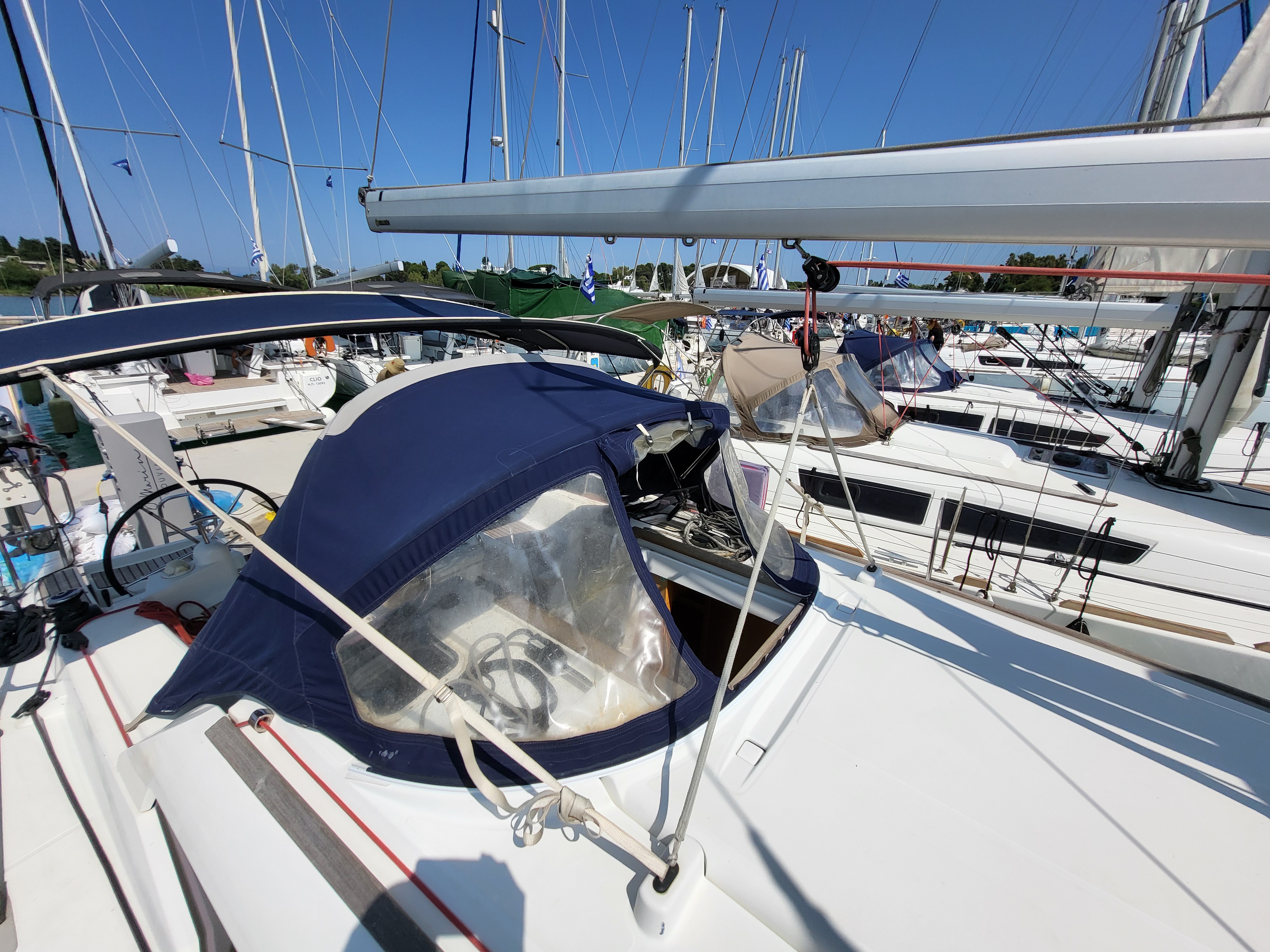 | Outside | Anchor with chain, Bathing ladder, Bimini top, Cockpit shower, Cockpit speakers, Cockpit table, Electr. anchor windlass, Gangway, Sprayhood, Windex |