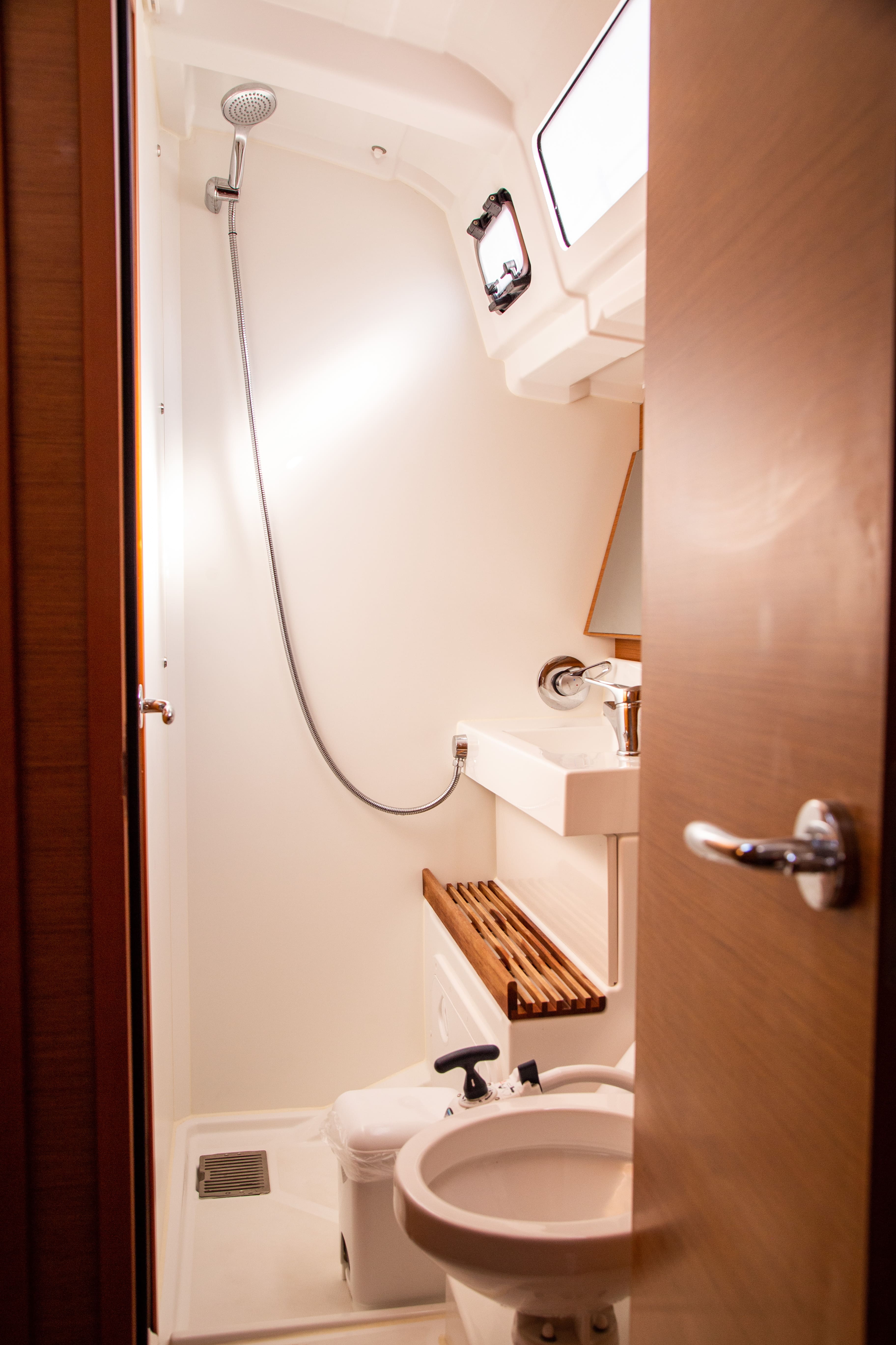 | Outside | 220V shore connection, Bathing ladder, Bimini top, Cockpit shower, Cockpit cushions, Cockpit table, Electr. anchor windlass, Snorkeling gear, Solar panels, Sprayhood, Teak in cockpit |