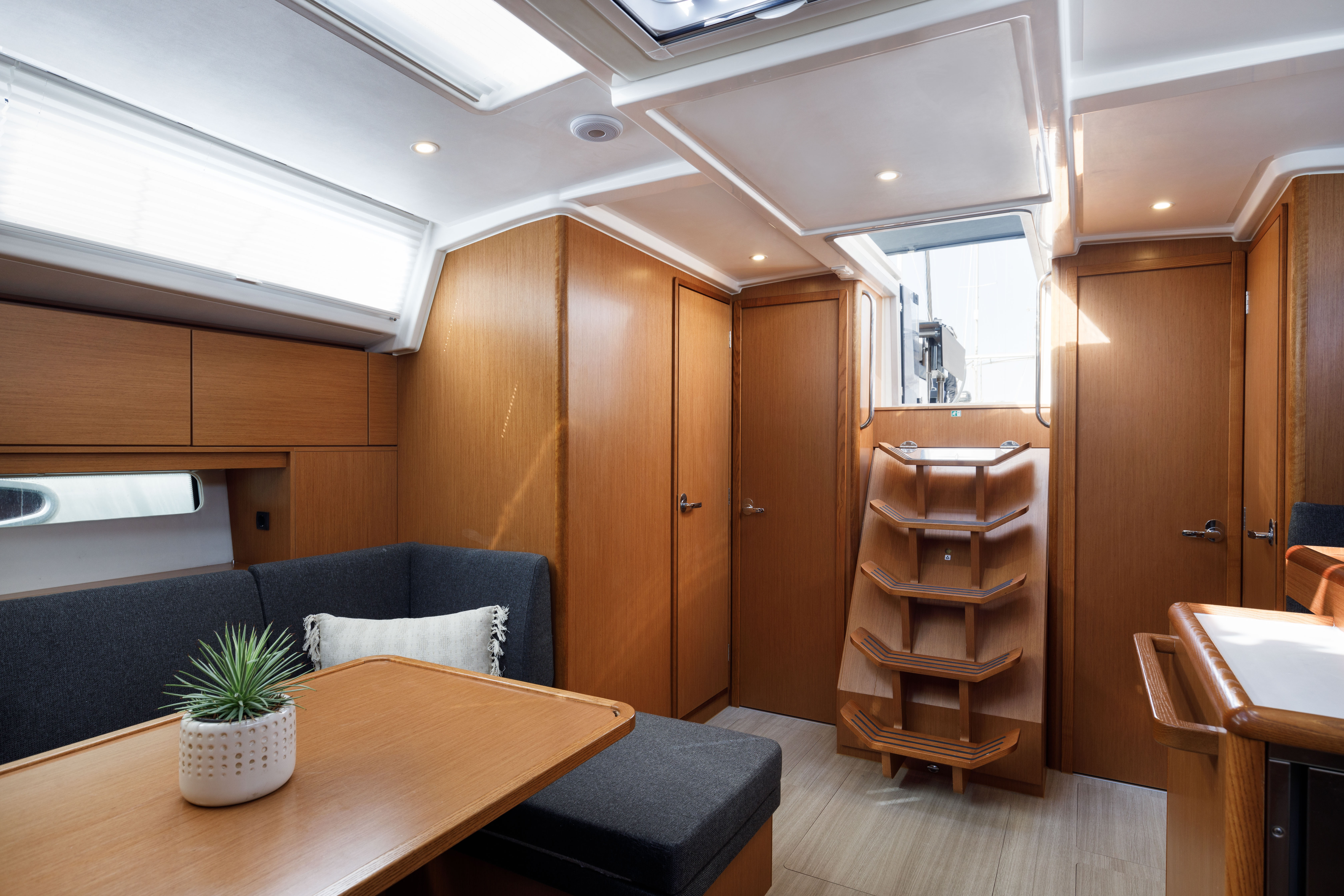 | Safety | Autopilot, First aid kit, Bowthruster, Epirb, Solid life vests, Light buoy, Navigational lights, Distress signals, Life raft, VHF Radio, Second anchor |
