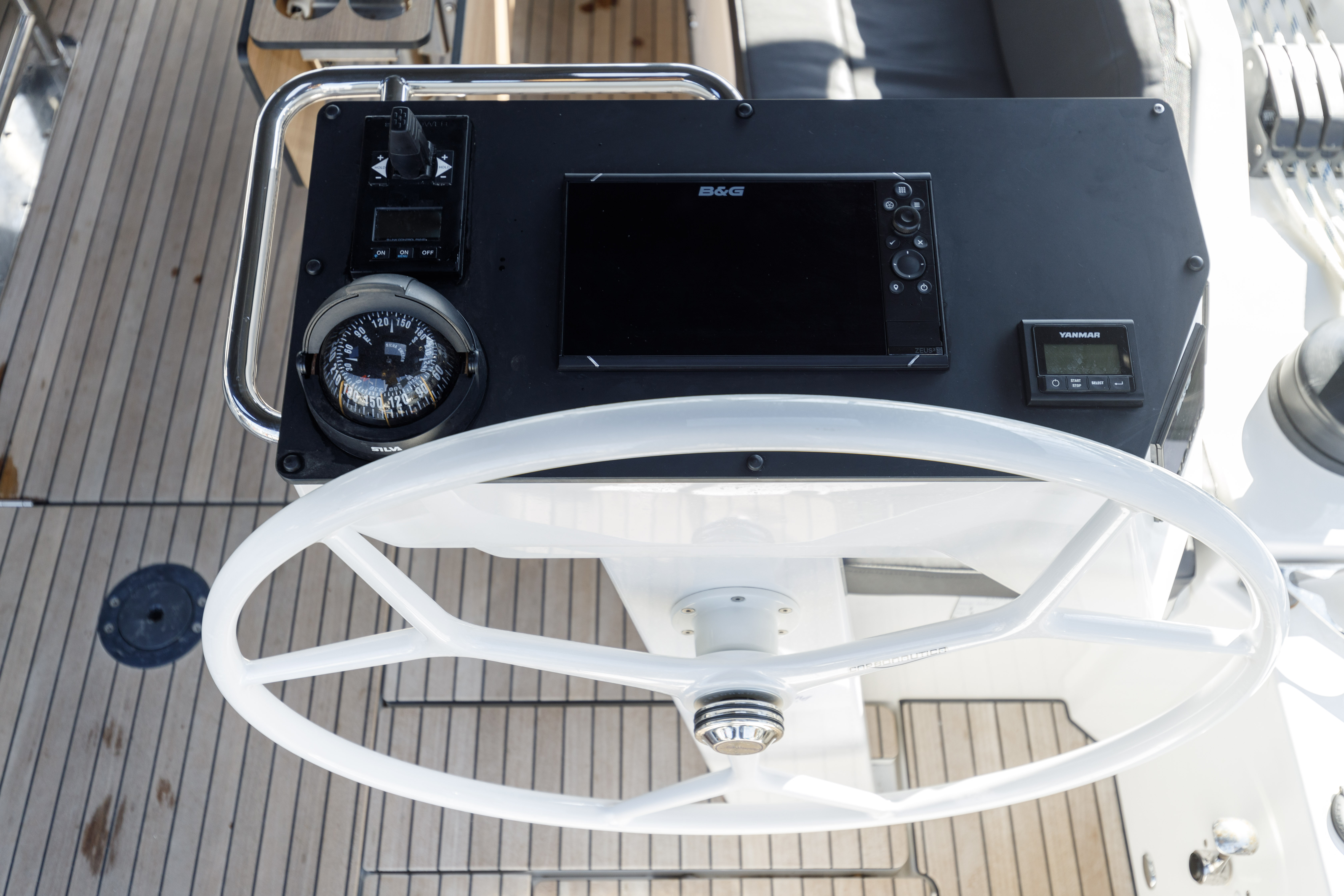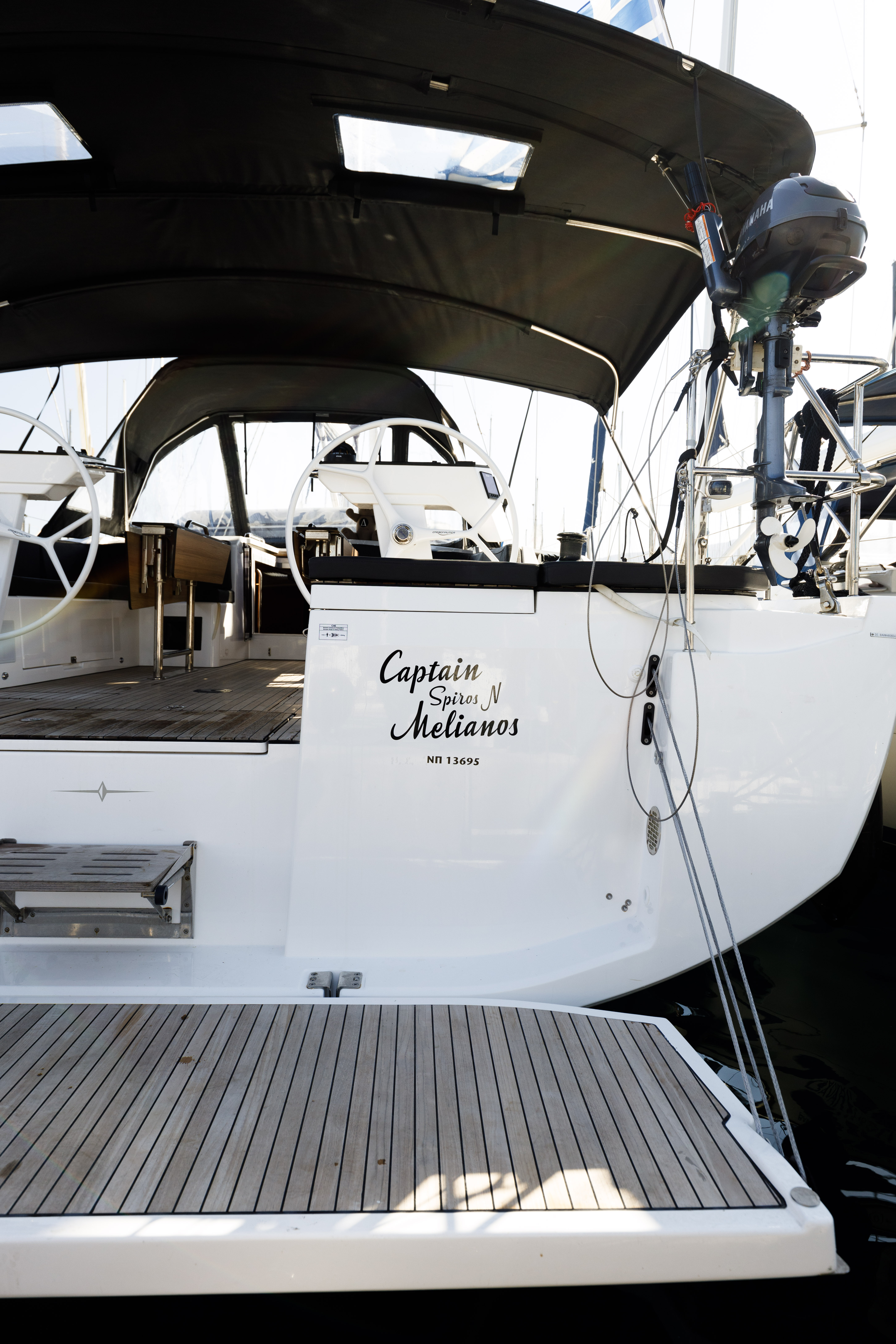 | Outside | Bimini top, Cockpit shower, Cockpit speakers, Cockpit cushions, Cockpit table, Electr. anchor windlass, electr. winch, Fender, Sprayhood |