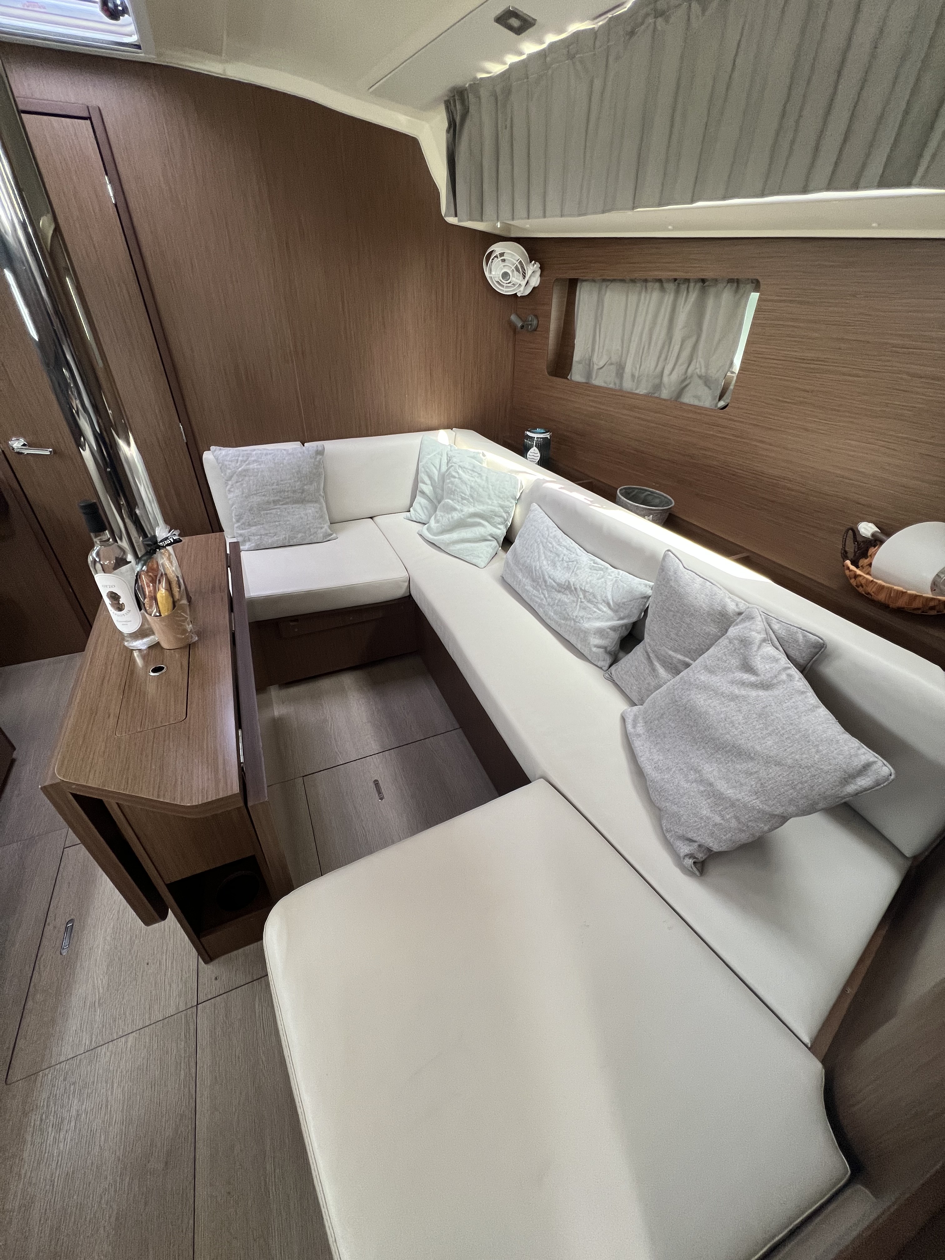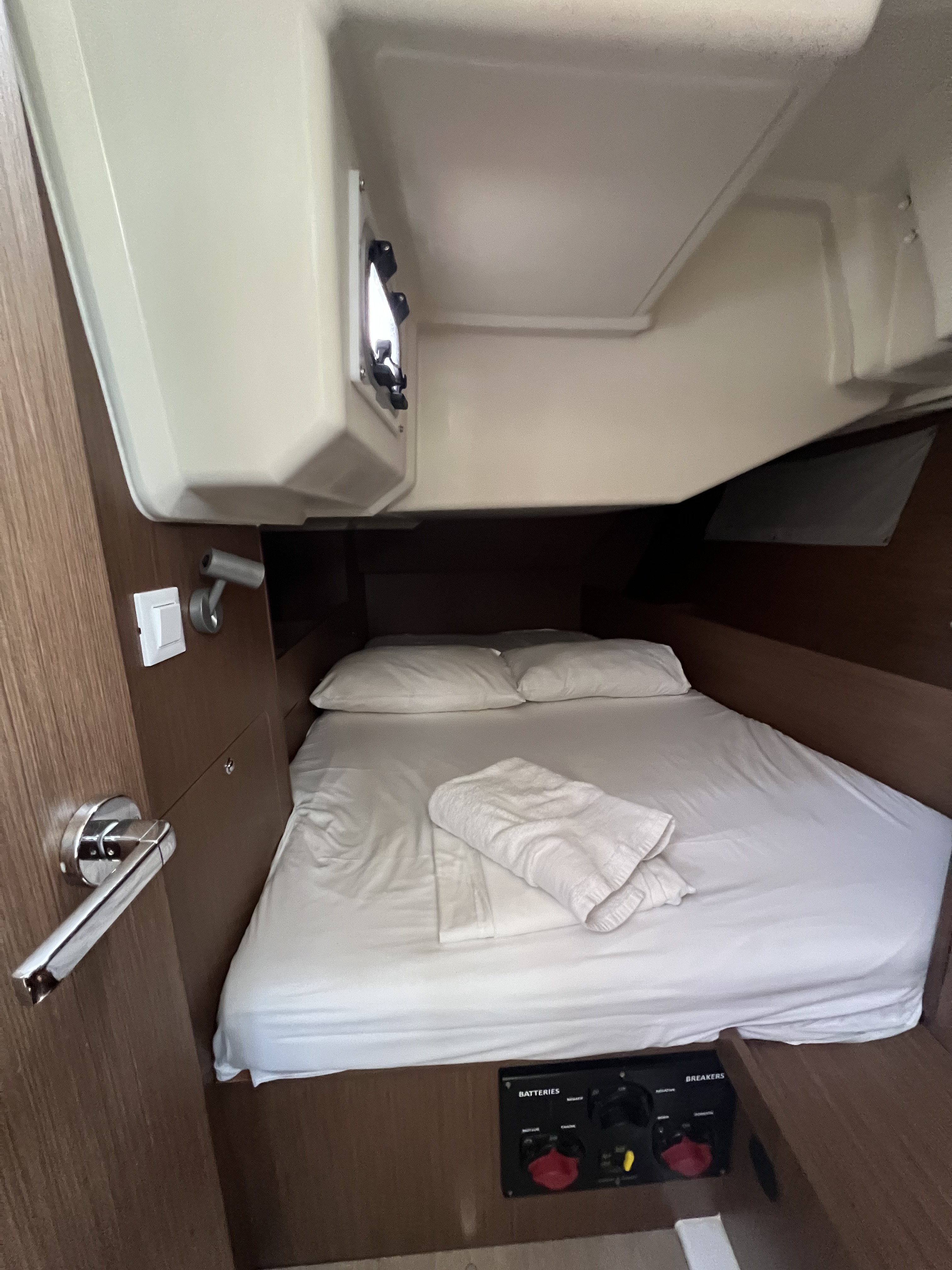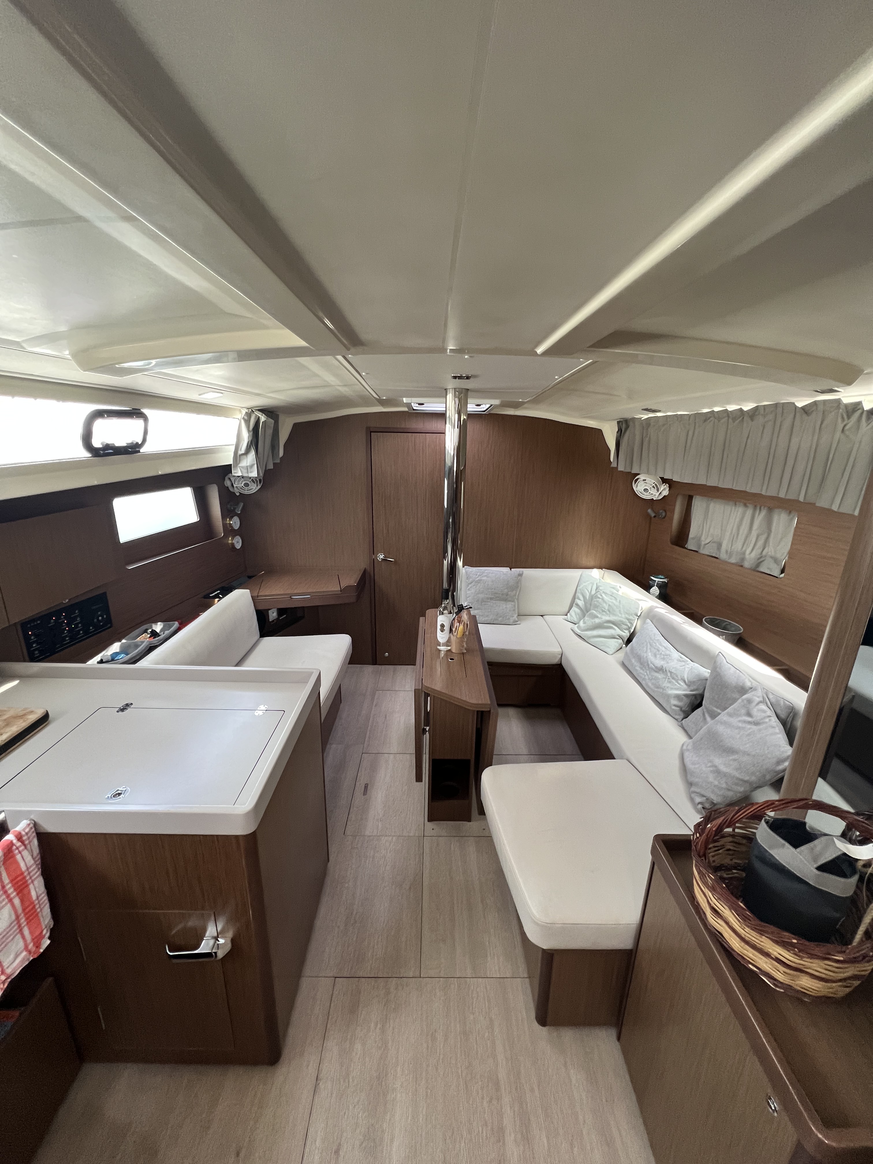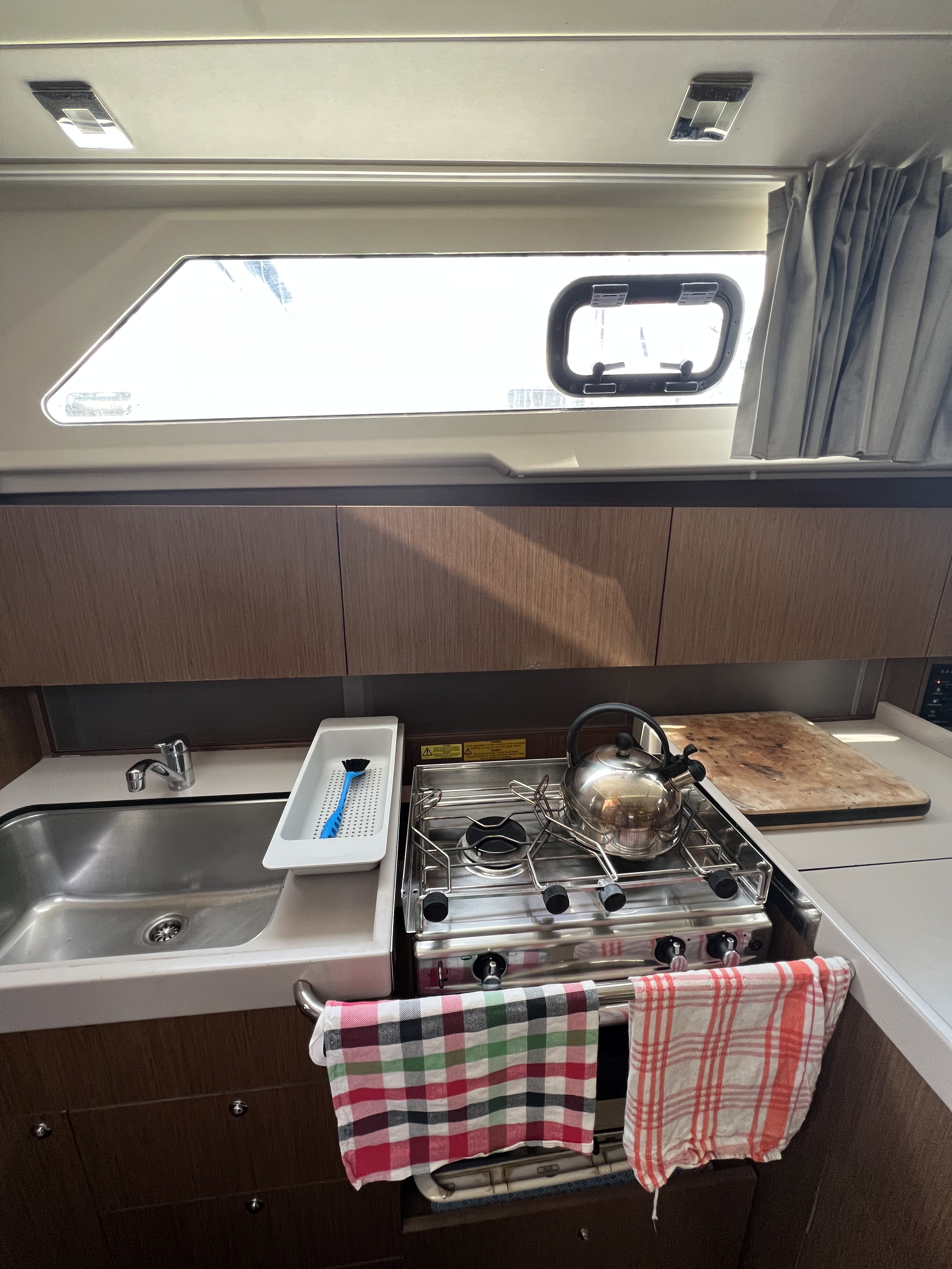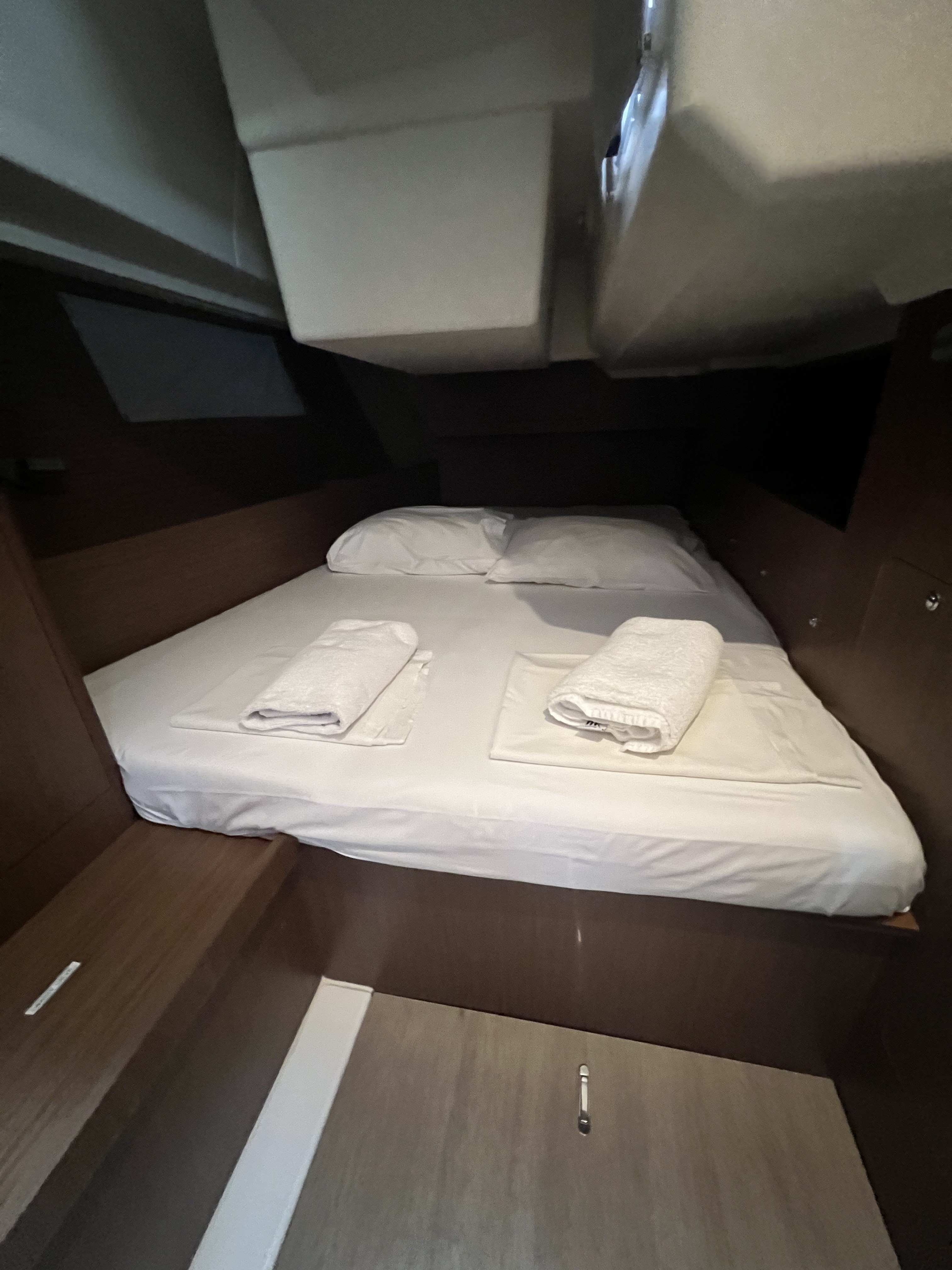 | Safety | Autopilot, First aid kit, Bowthruster, Epirb, Solid life vests, Fire extinguisher, Light buoy, Navigational lights, Distress signals, Life raft, VHF Radio, Second anchor |