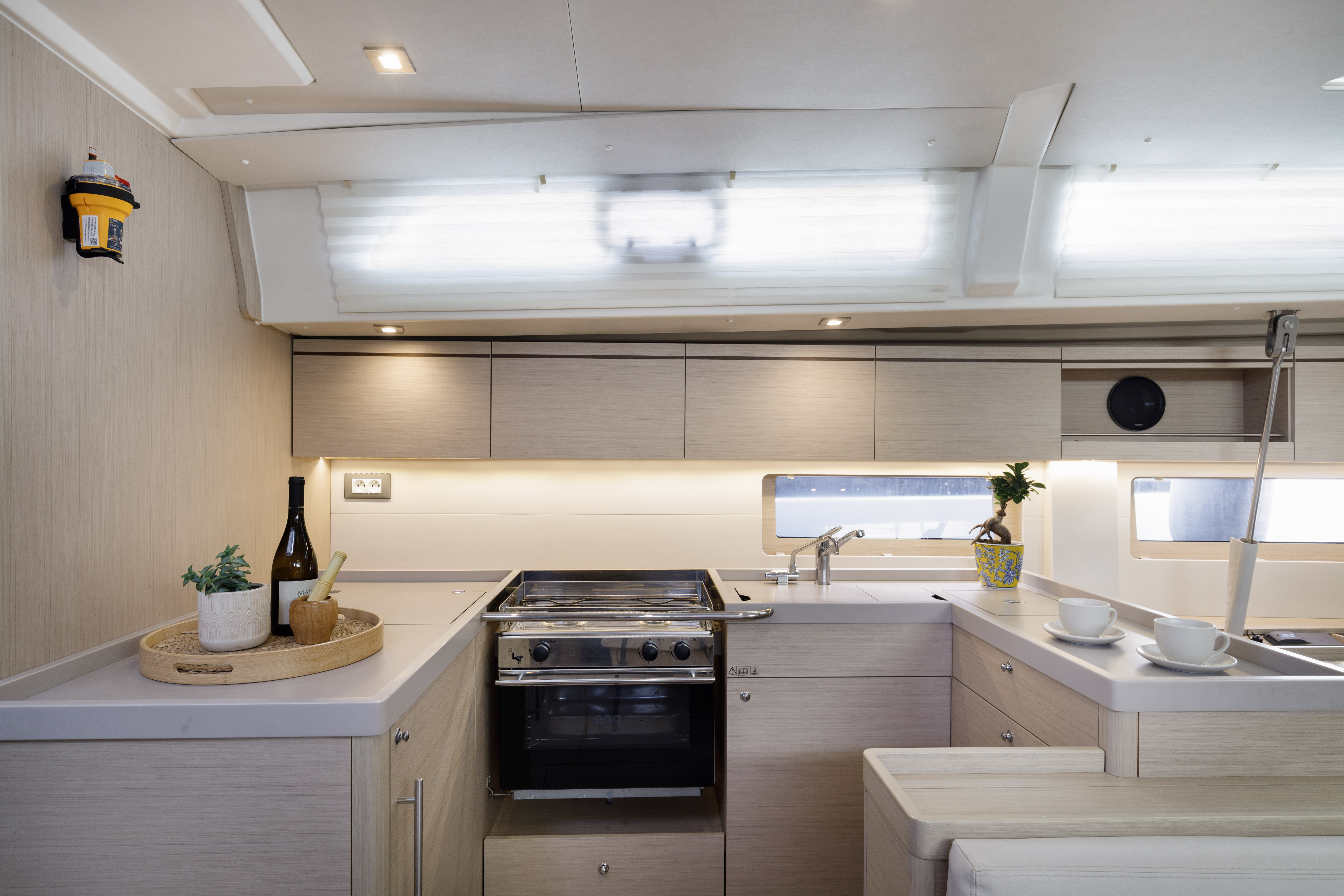 | Safety | Autopilot, First aid kit, Bowthruster, Epirb, Solid life vests, Fire extinguisher, Light buoy, Navigational lights, Distress signals, Life raft, VHF Radio, Second anchor |