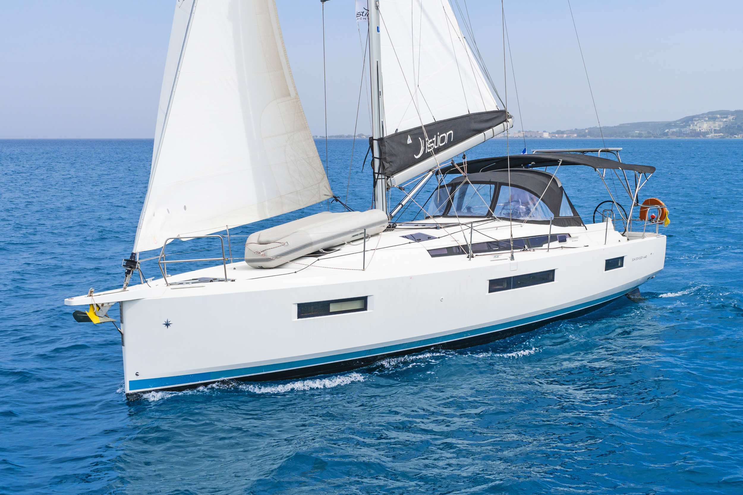 | Safety | Autopilot, First aid kit, Bowthruster, Epirb, Solid life vests, Fire extinguisher, Light buoy, Fog horn, Emergency tiller, Distress signals, Life raft, Safety equipment, Torchlight, VHF Radio, Second anchor |