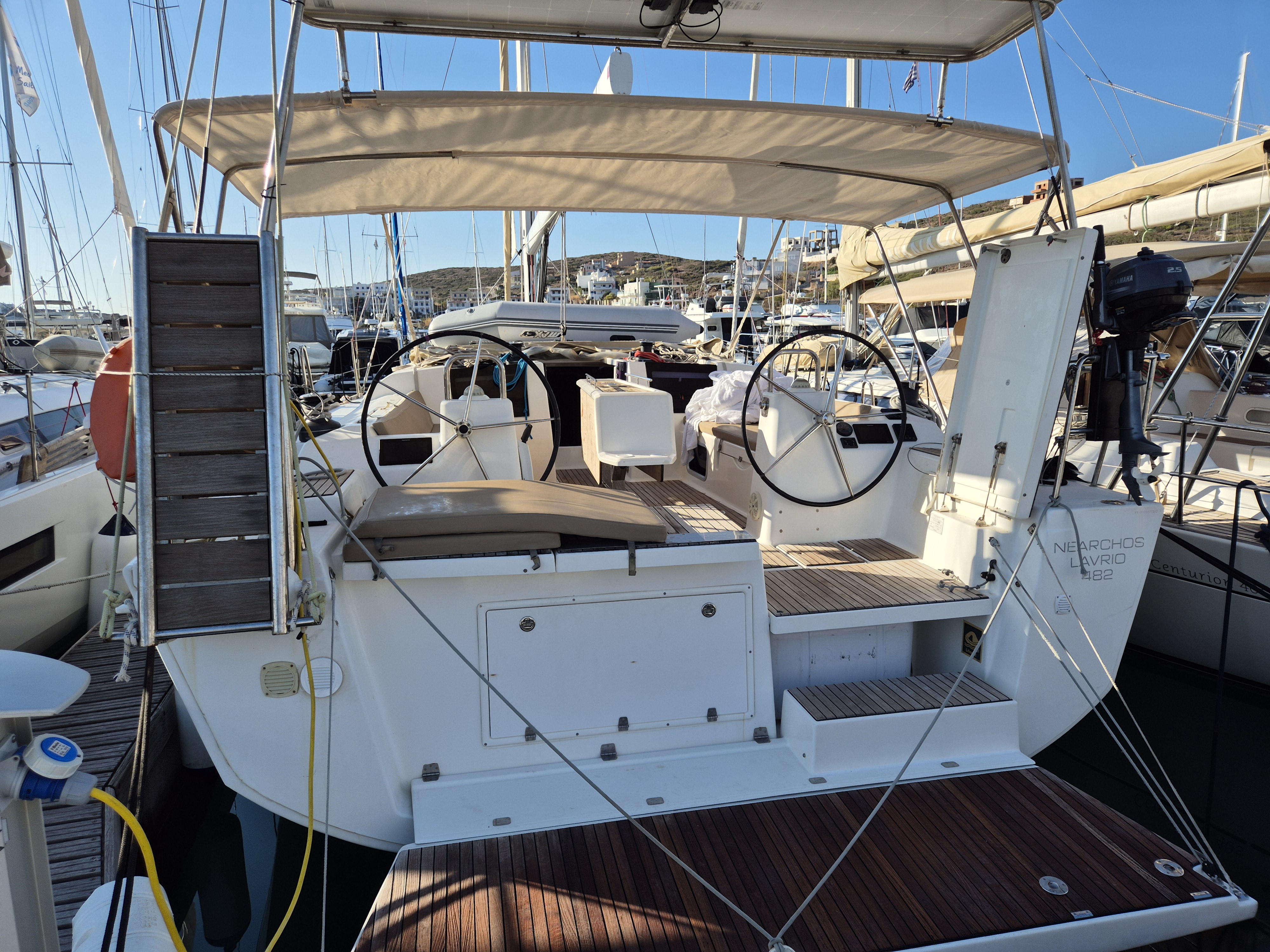 | Outside | Bimini top, Cockpit shower, Solar panels, Sprayhood, Teak in cockpit |