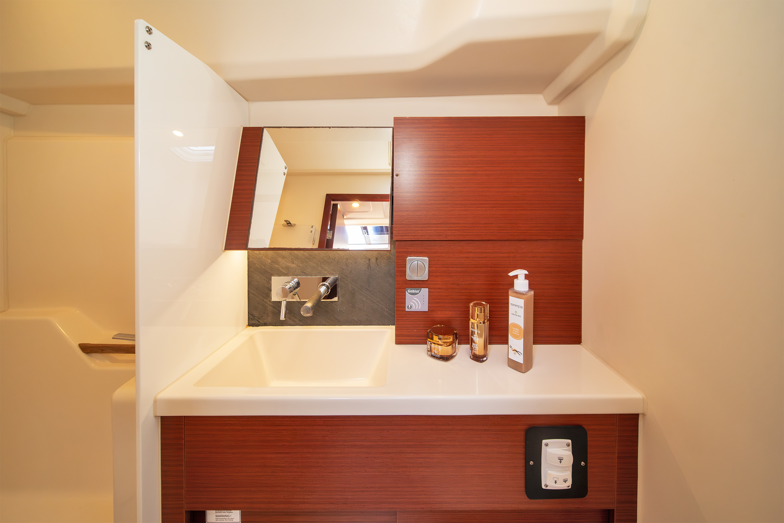 | Outside | Bathing platform, Bimini top, Cockpit cushions, Electr. anchor windlass, Solar panels, Sprayhood |