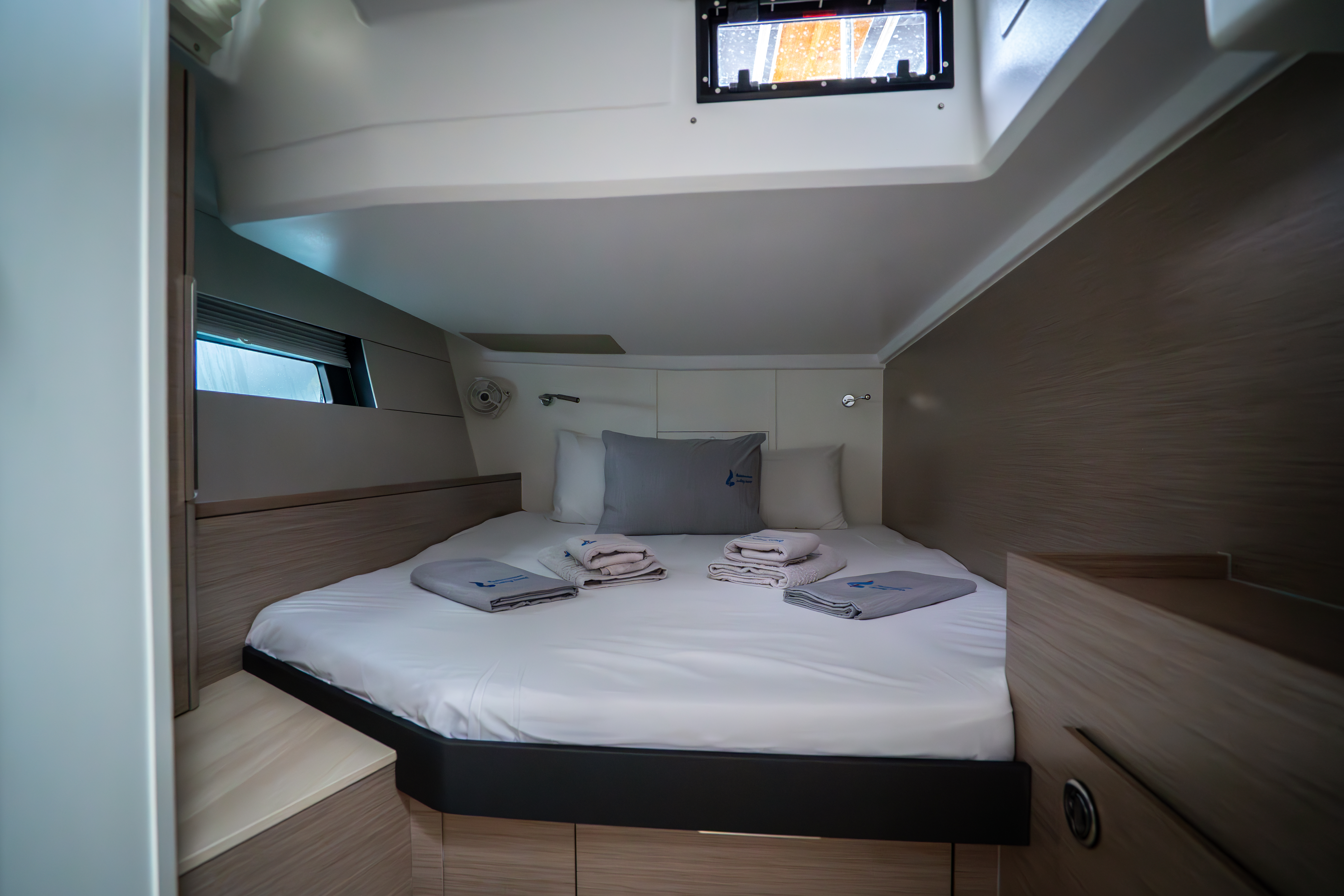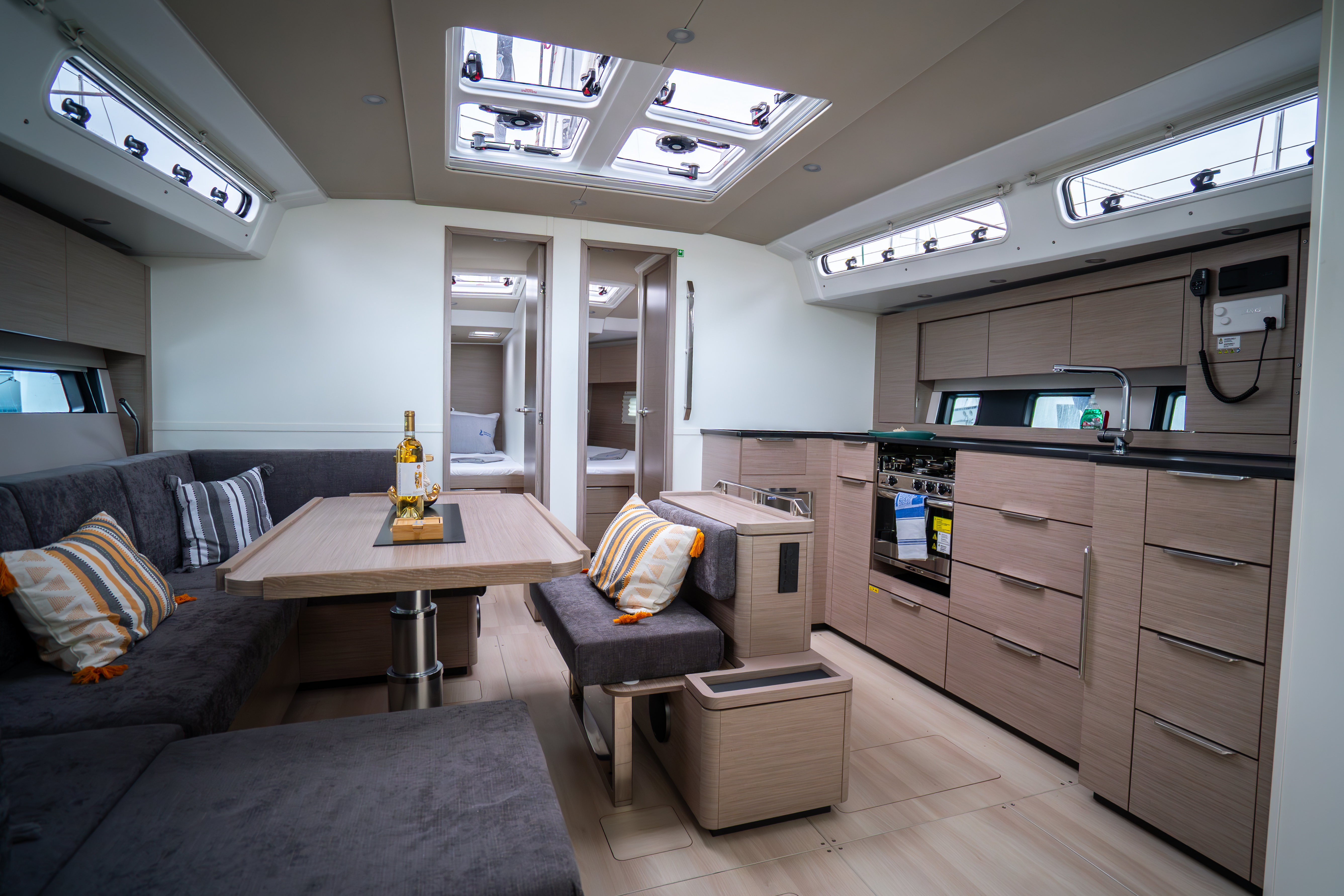 Die Yacht war gerefft und ungerefft gut ausbalanciert. Aufteilung und Ausstattung waren sehr gut. Die Mannschaft des Vercharterers vor Ort war freundlich und professionell.