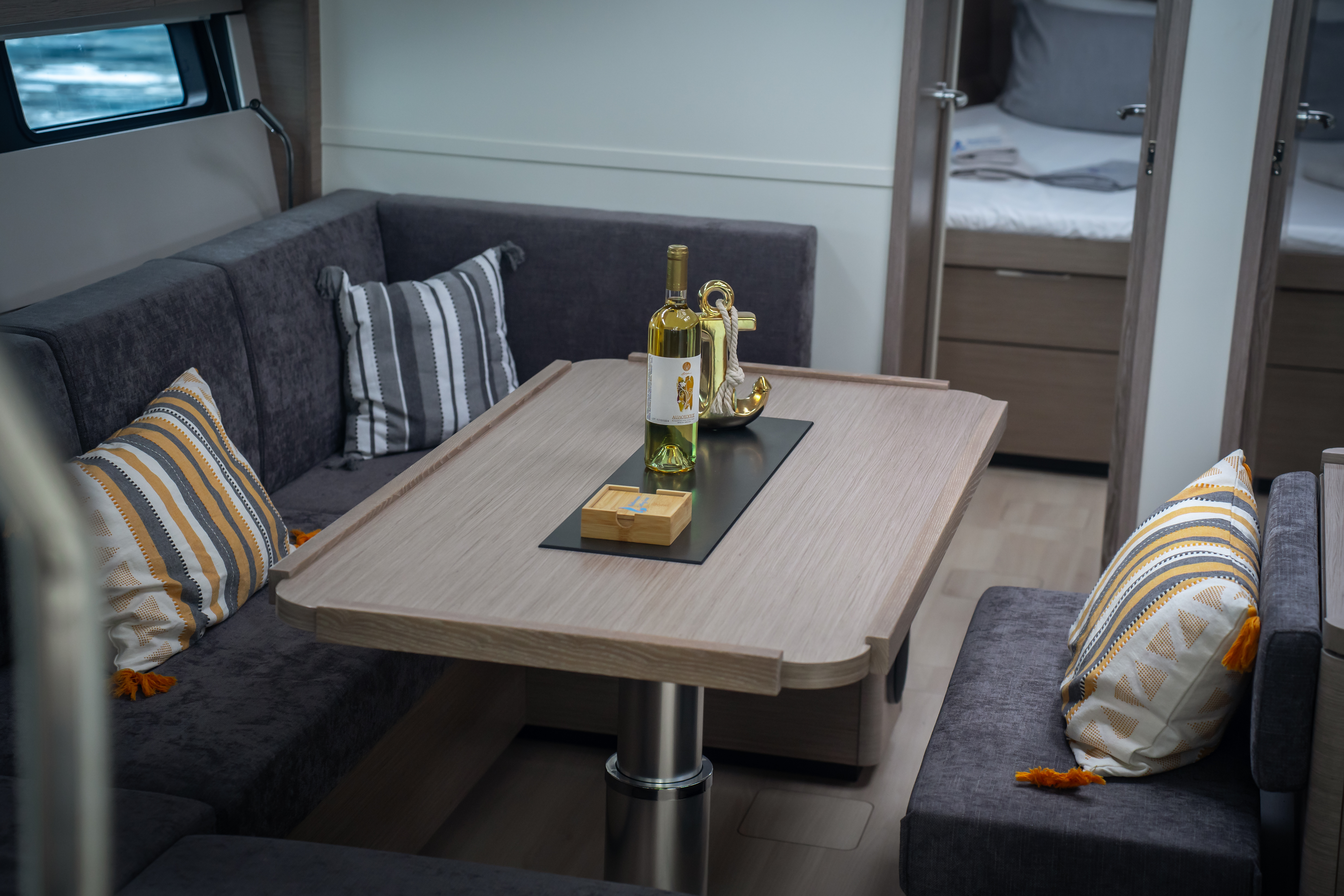 | Inside | 220V sockets, Gas stove with oven, Pantry equipment, Radio with CD and MP3, Convertible salon table, fans in cabins, Warm water, WC (electr.) |