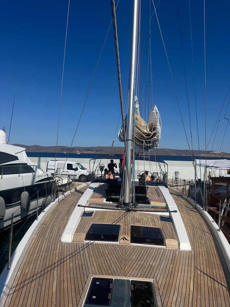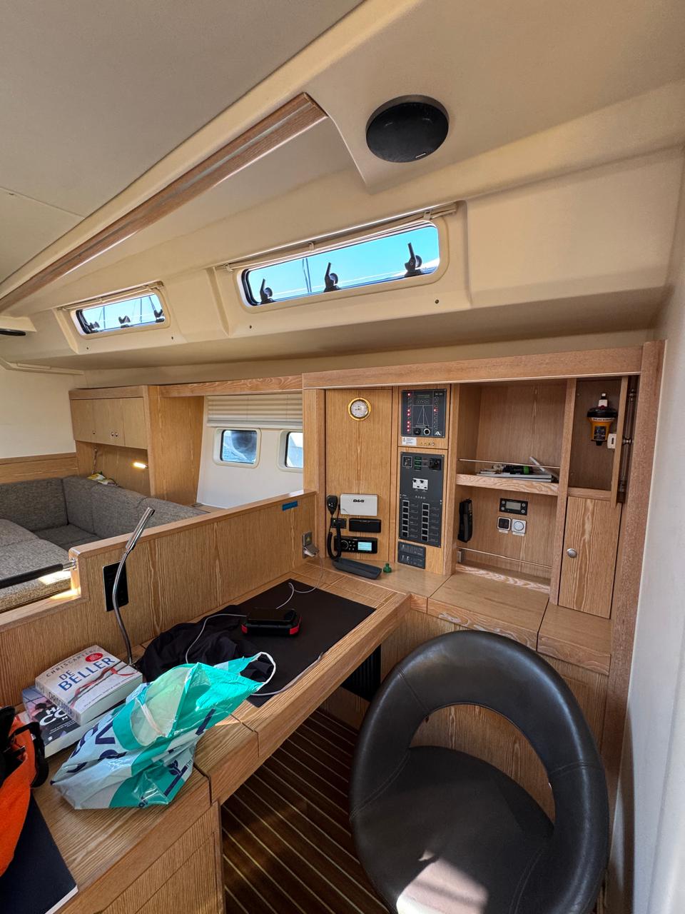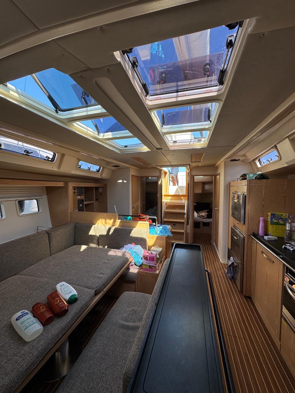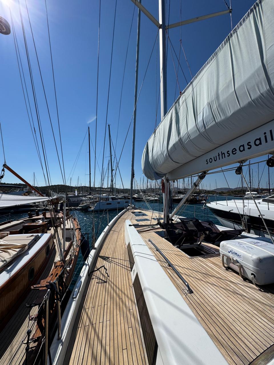 | Outside | Anchor with chain, Bathing platform, Bimini top, Cockpit speakers, Cockpit table, Electr. anchor windlass, electr. winch, Sprayhood, Teak in cockpit, Winches |