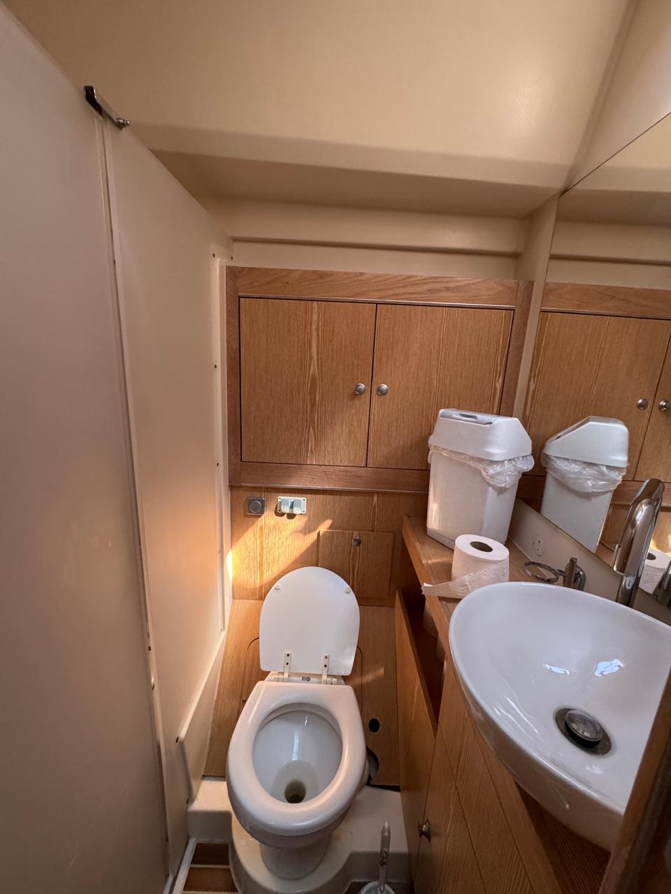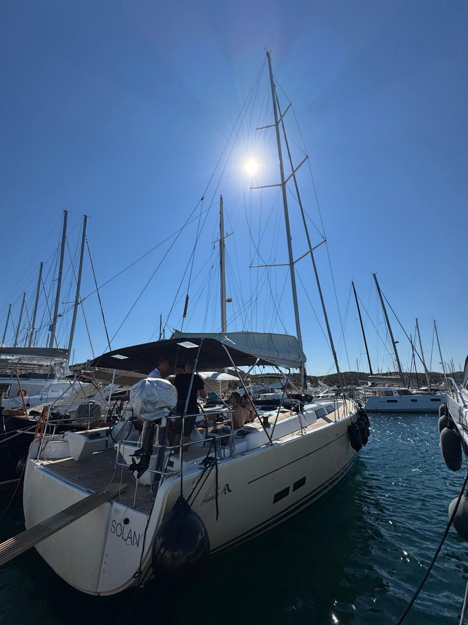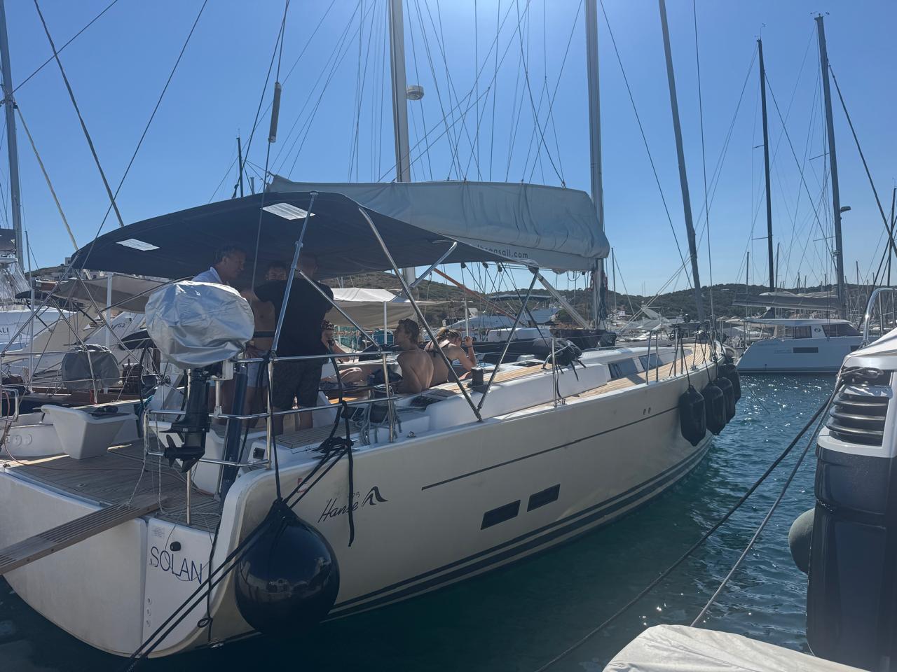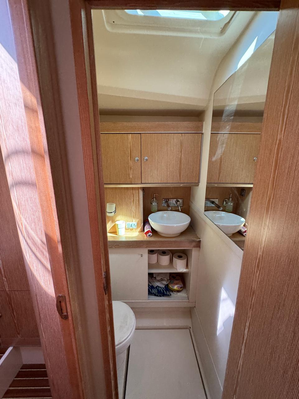 | Outside | Anchor with chain, Bathing platform, Bimini top, Cockpit speakers, Cockpit table, Electr. anchor windlass, electr. winch, Sprayhood, Teak in cockpit, Winches |