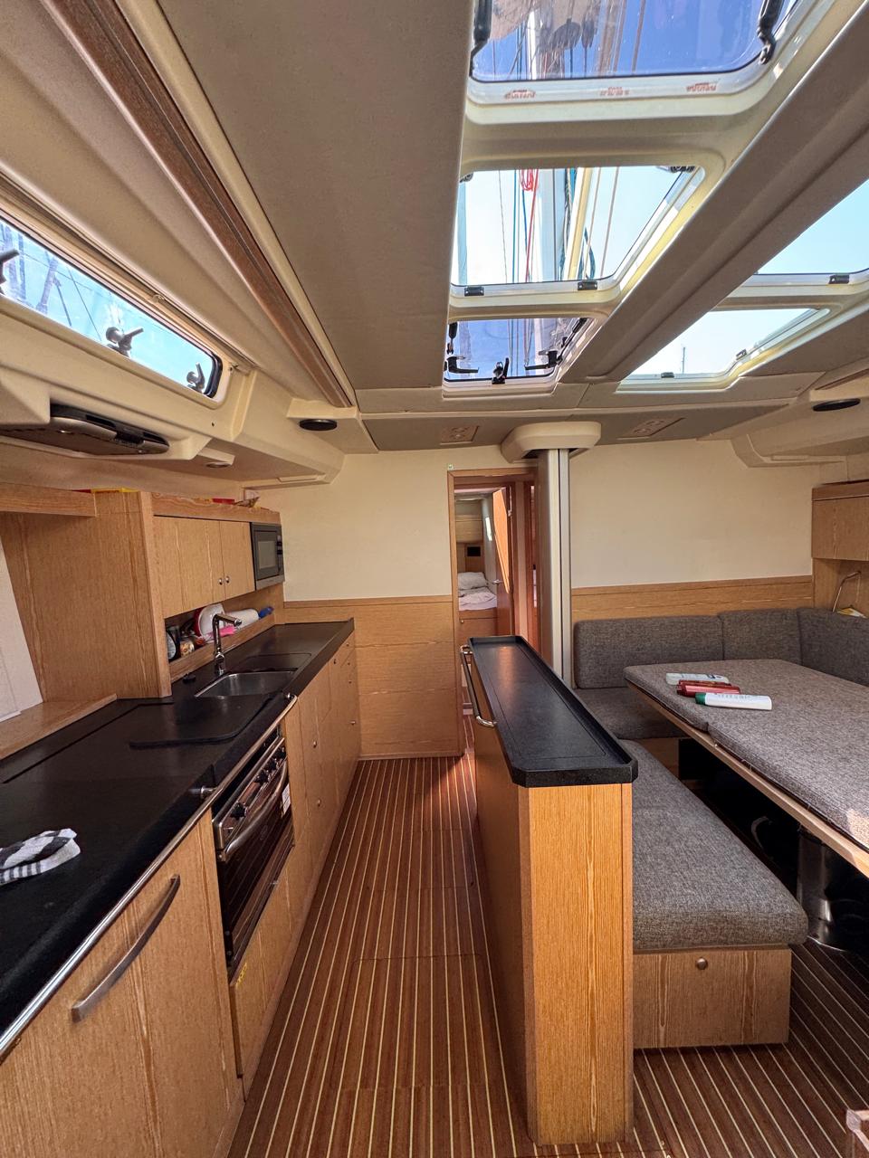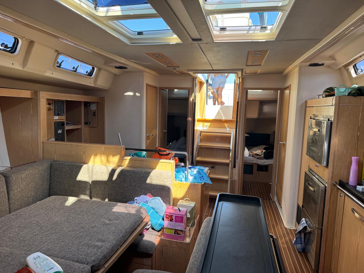 | Inside | Oven, Black water tank, Generator, Airconditioning (independent from shore power), Battery charger, Convertible salon table, Kettle |