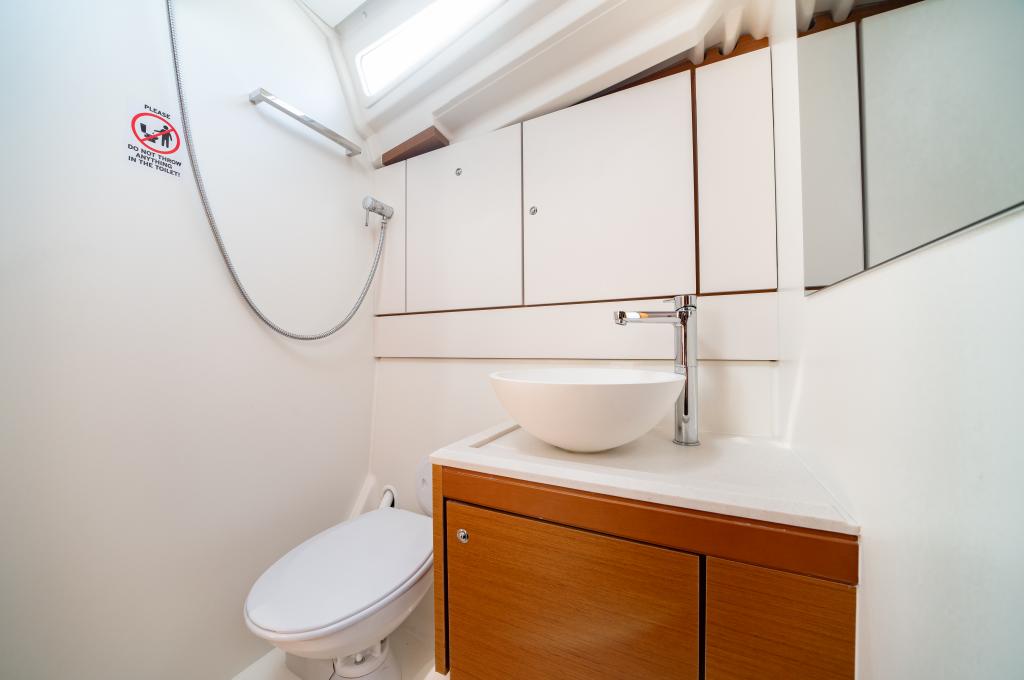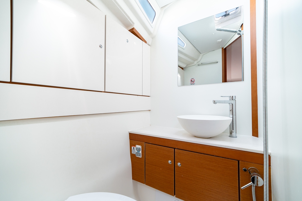 | Inside | Gas stove with oven, Freezer, Generator, Inverter 12V/220V, Airconditioning (independent from shore power), Refrigerator, Battery charger, Shore power cable, Speakers in saloon, Microwave oven, Radio with CD and MP3, Convertible salon table, Cabin & dining area fan , Warm water, WC (electr.) |