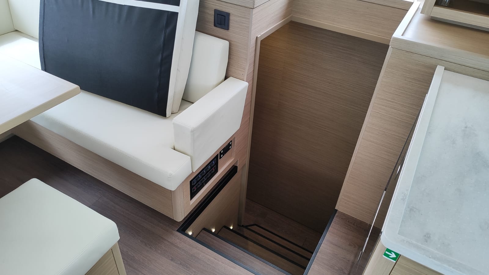 | Inside | Generator, Coffee machine, Airconditioning (independent from shore power), Refrigerator, Battery charger, Pantry equipment, Warm water, Watermaker, WC (electr.) |
