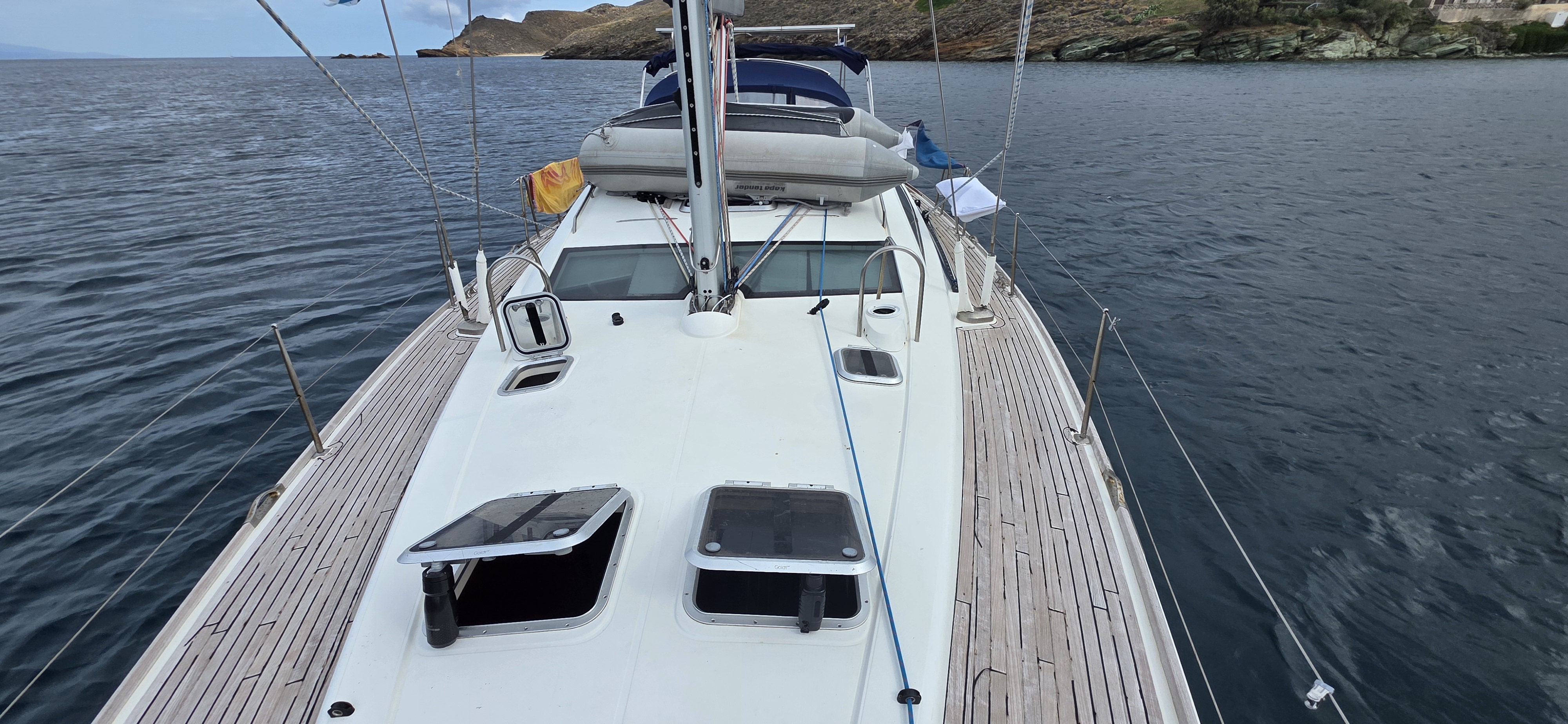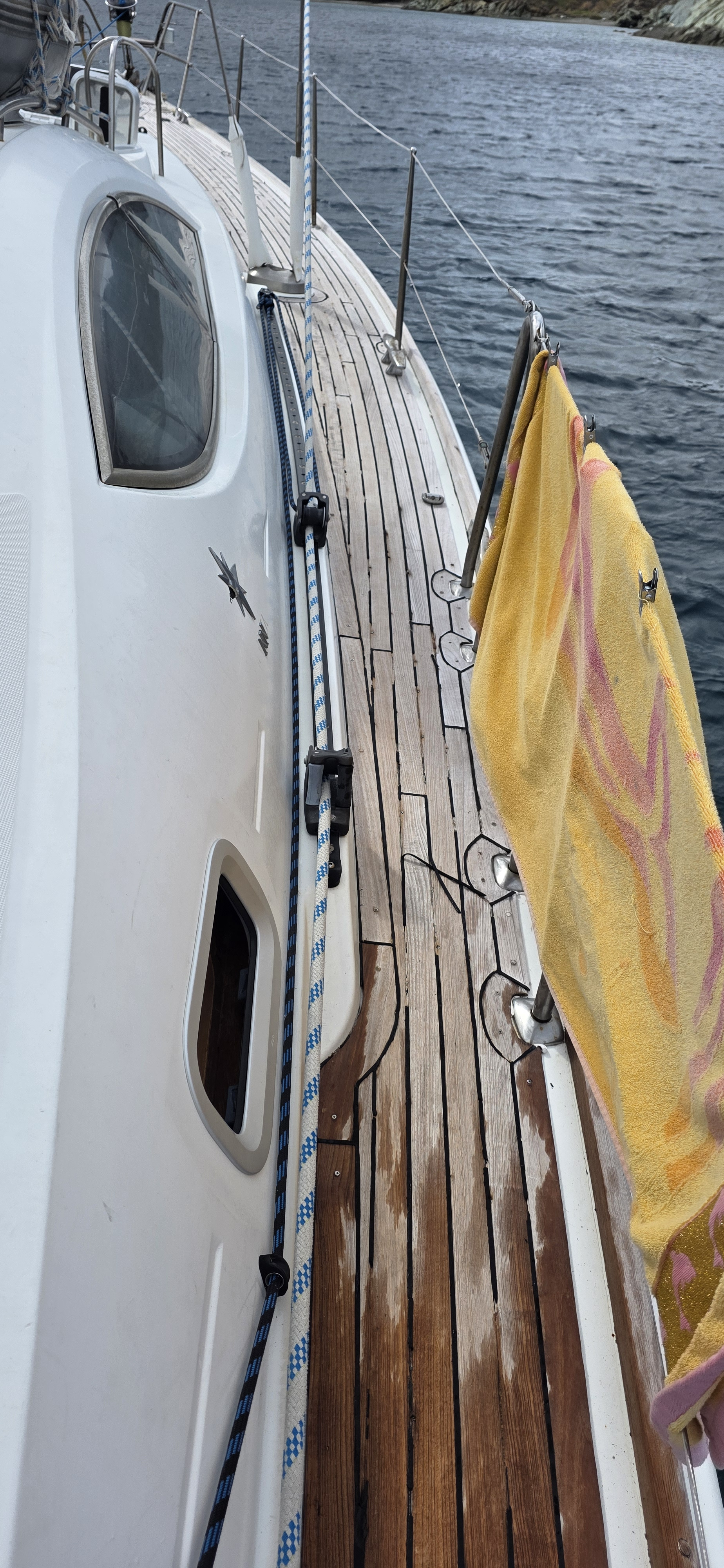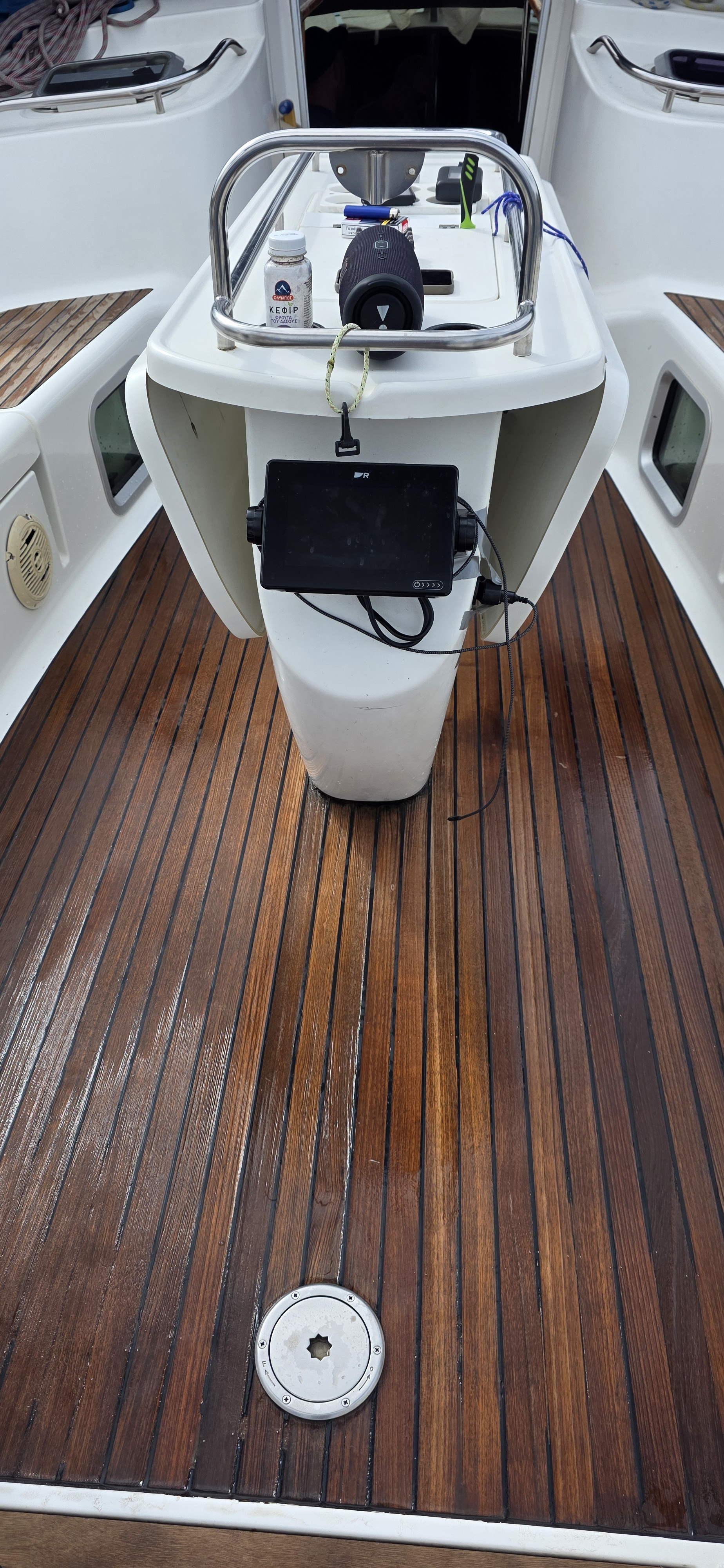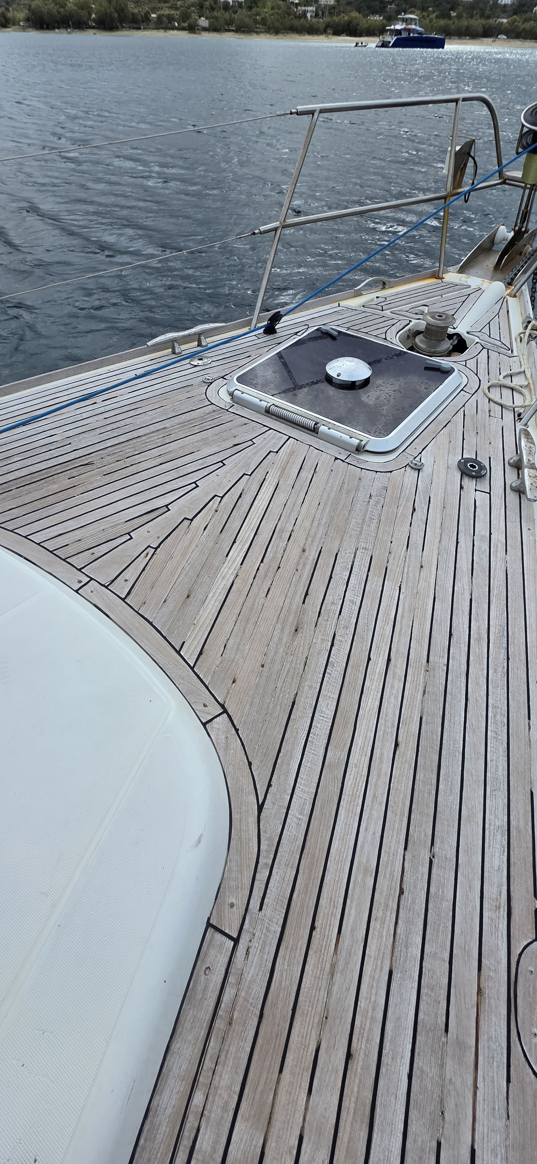 | Outside | Bimini top, Electr. anchor windlass, Solar panels, Sprayhood, Teak deck |