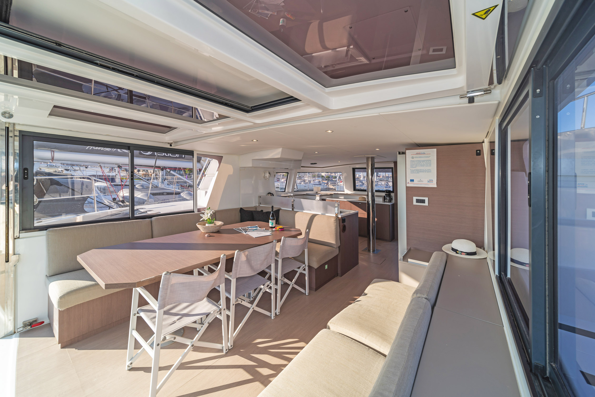 | Inside | 220V sockets, Ice cube machine, Freezer, Generator, Inverter 12V/220V, Airconditioning (independent from shore power), Refrigerator, Battery charger, Radio with USB, USB Socket, USB charger for mobile devices, fans in cabins, Warm water, Watermaker, WC (electr.) |
