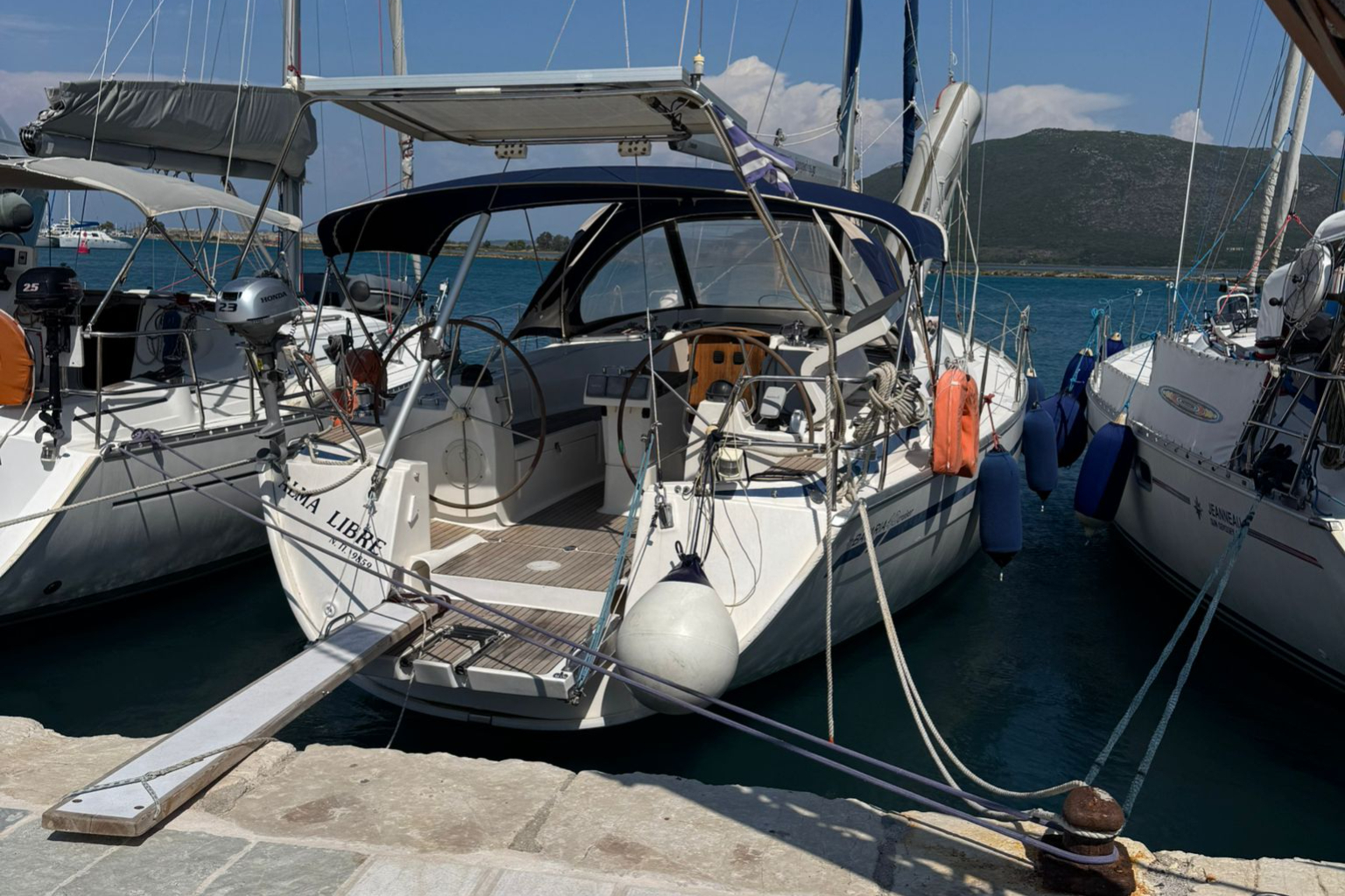 | Navigation | Barometer, Echo sounder, Binoculars, GPS with chart plotter in cockpit, Harbour books, Compass, Log |