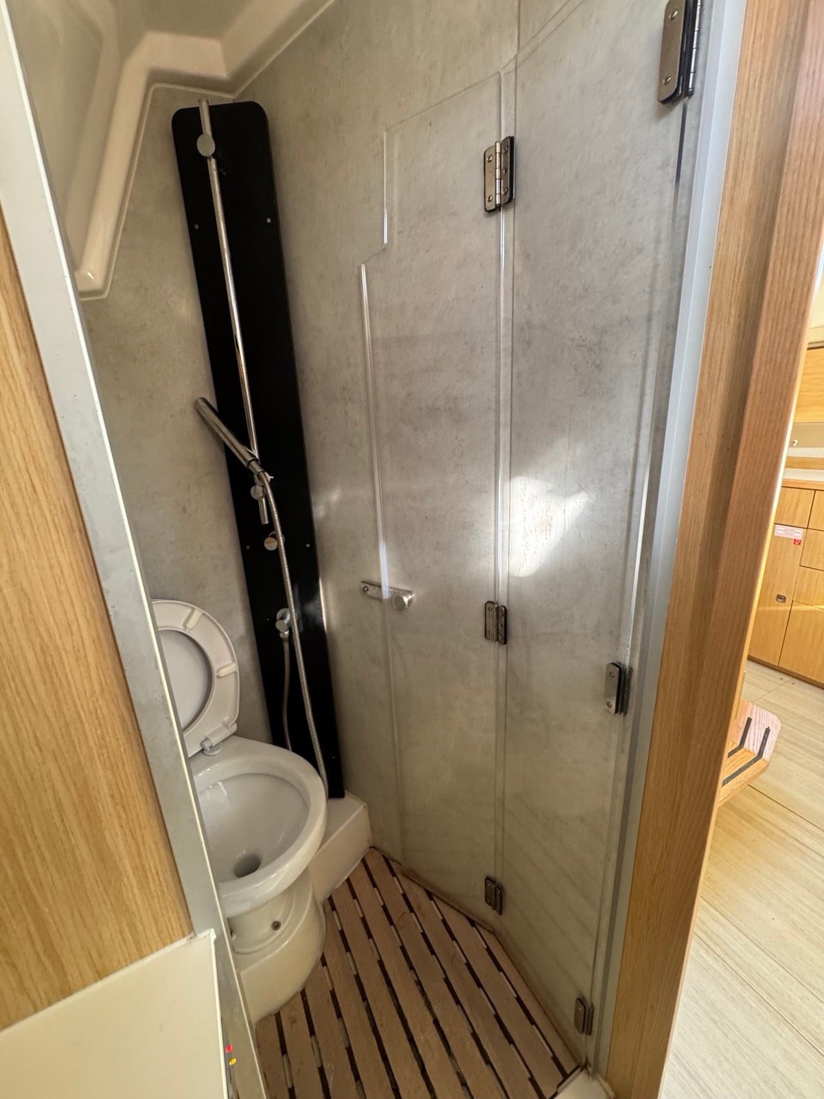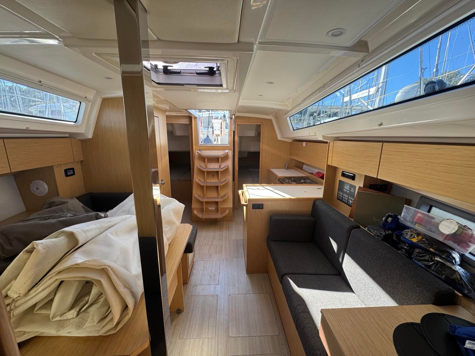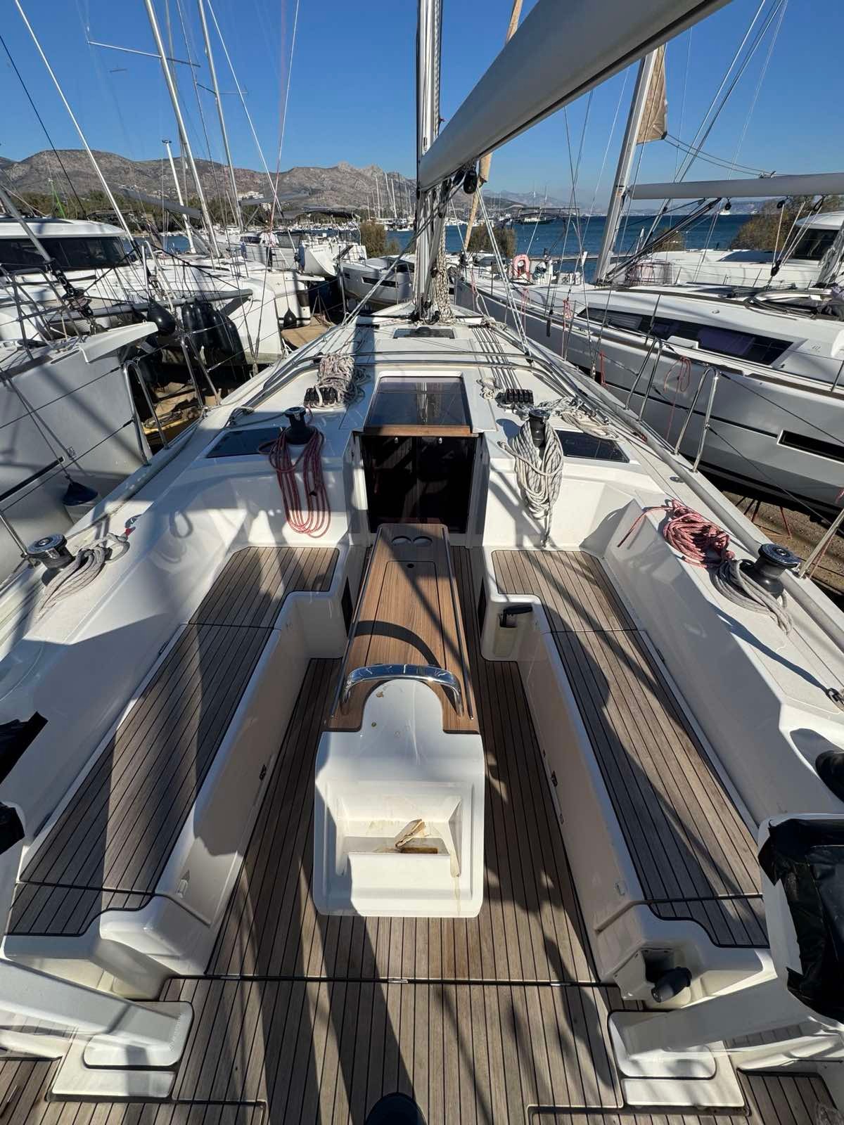 | Outside | Outside shower, Bathing ladder, Bimini top, Cockpit speakers, Cockpit cushions, Cockpit table, Sails repair kit, Solar panels, Sprayhood, Teak in cockpit, Drift anchor , Windex |