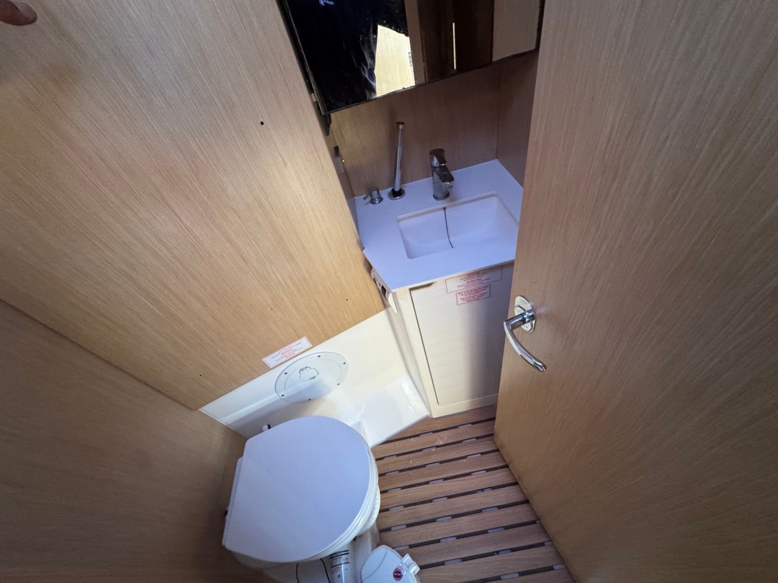 | Inside | 220V sockets, Clock, Black water tank, Gas oven, Dock A/C 220V (cool&heat), Refrigerator, Speakers in saloon, Pantry equipment, Radio with CD player, Convertible salon table, USB sockets in the cabins, fans in cabins, Warm water, WC (electr.) |