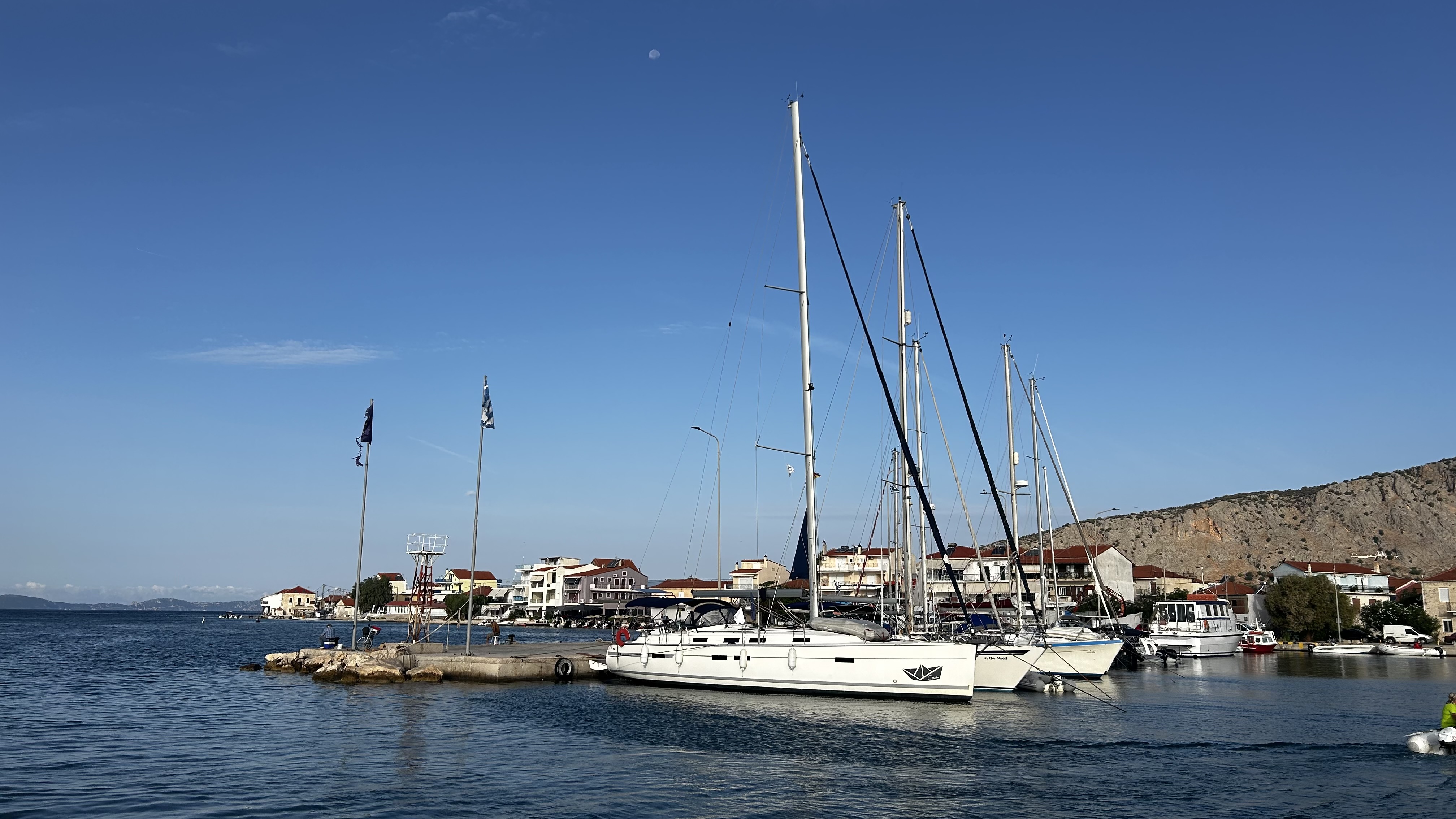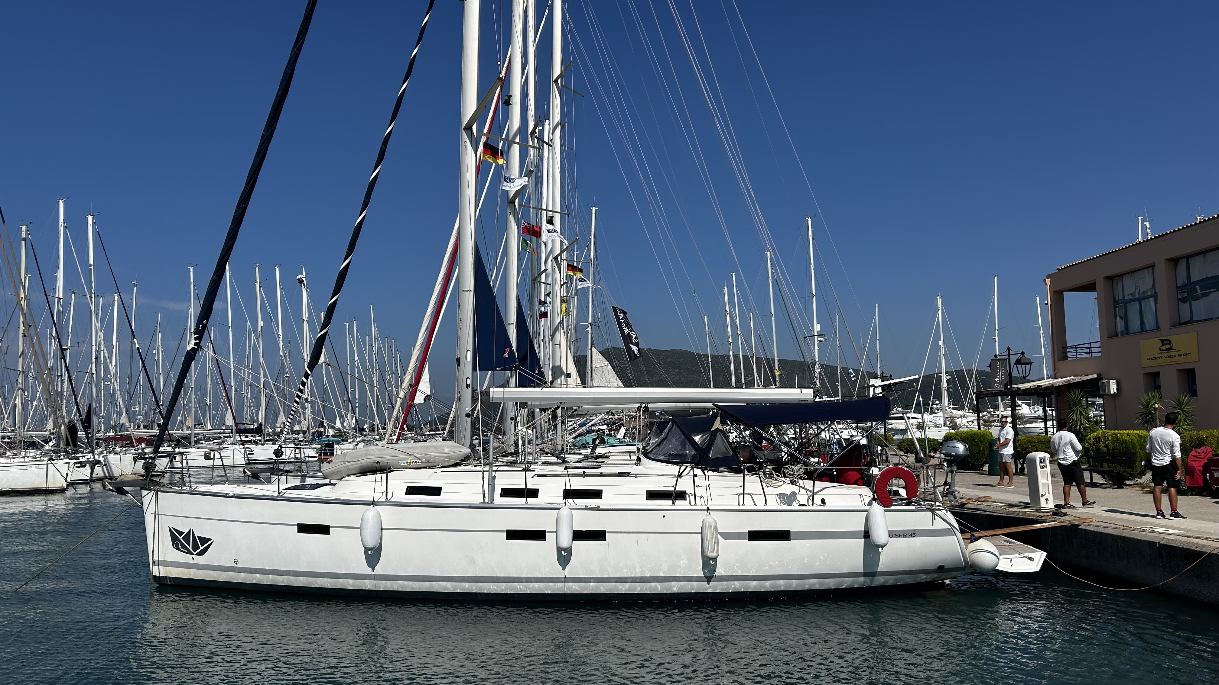 Vercharterer hat 6 Yachten vor Ort und kümmert sich sehr persönlich um die Schiffe und Gäste. Die Yacht war ja (wie vereinbart) nicht die Jüngste, aber gut in Schuss. Die (überraschend) guten Windverhältnisse mit verlässlichen 4-6 bft ab mittag / nachmittag quittierte die Yacht halbwind mit stabiler Lage (Doppelruder ohne Druck) und 5 - 9 knoten (hart am Wind bis ca 6 kn).