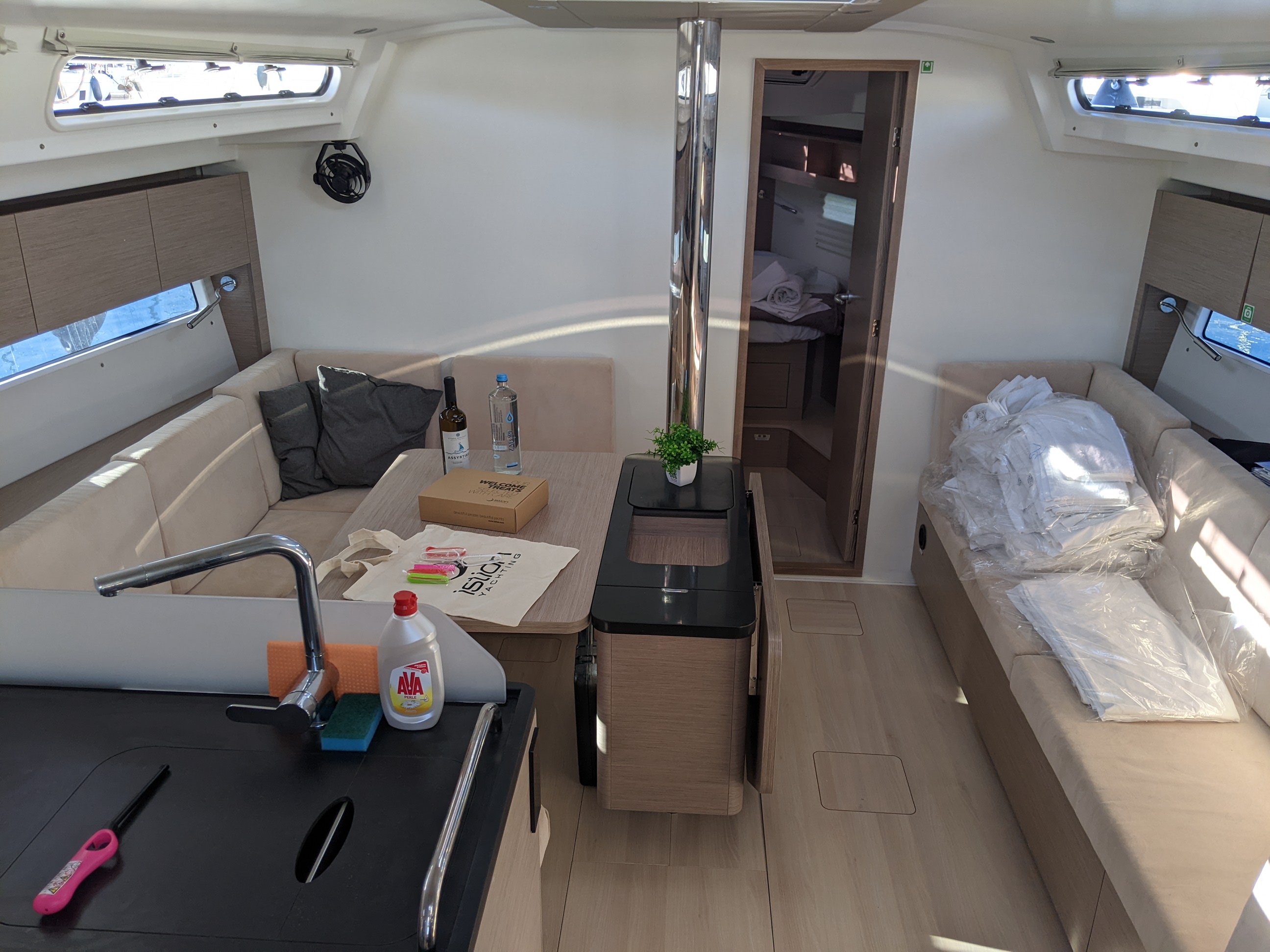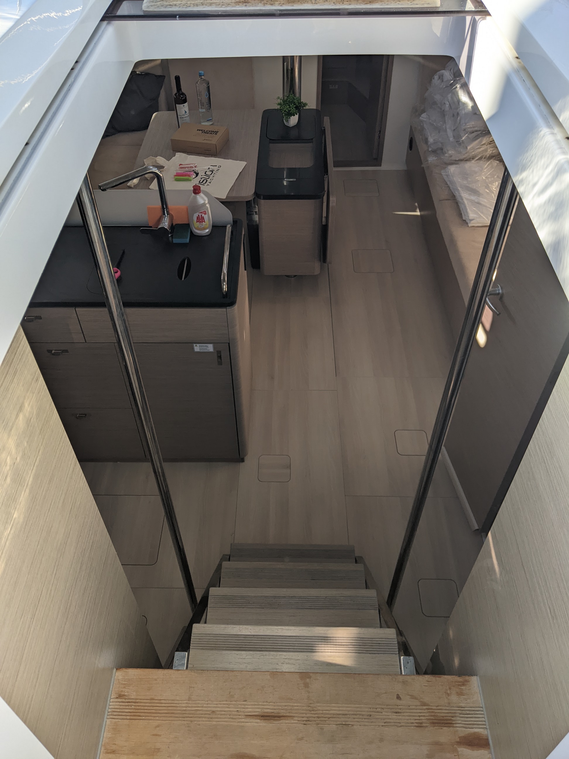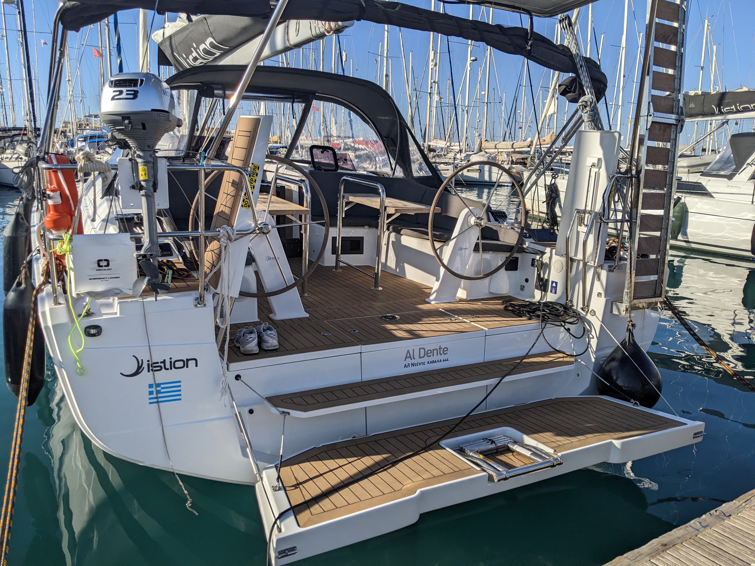 | Outside | Bathing platform, Bimini top, Electr. anchor windlass, Folding propeller, Solar panels, Sprayhood |