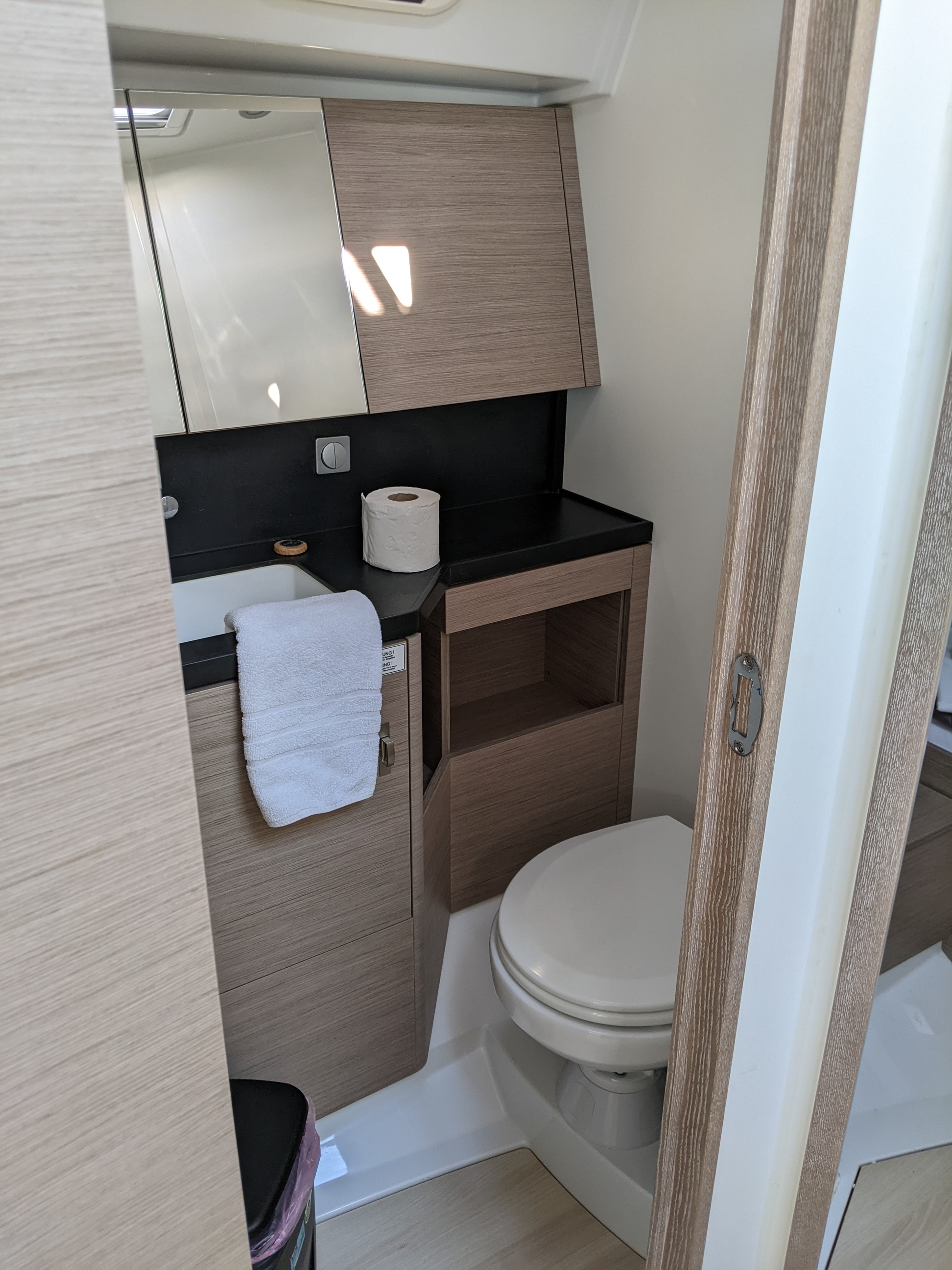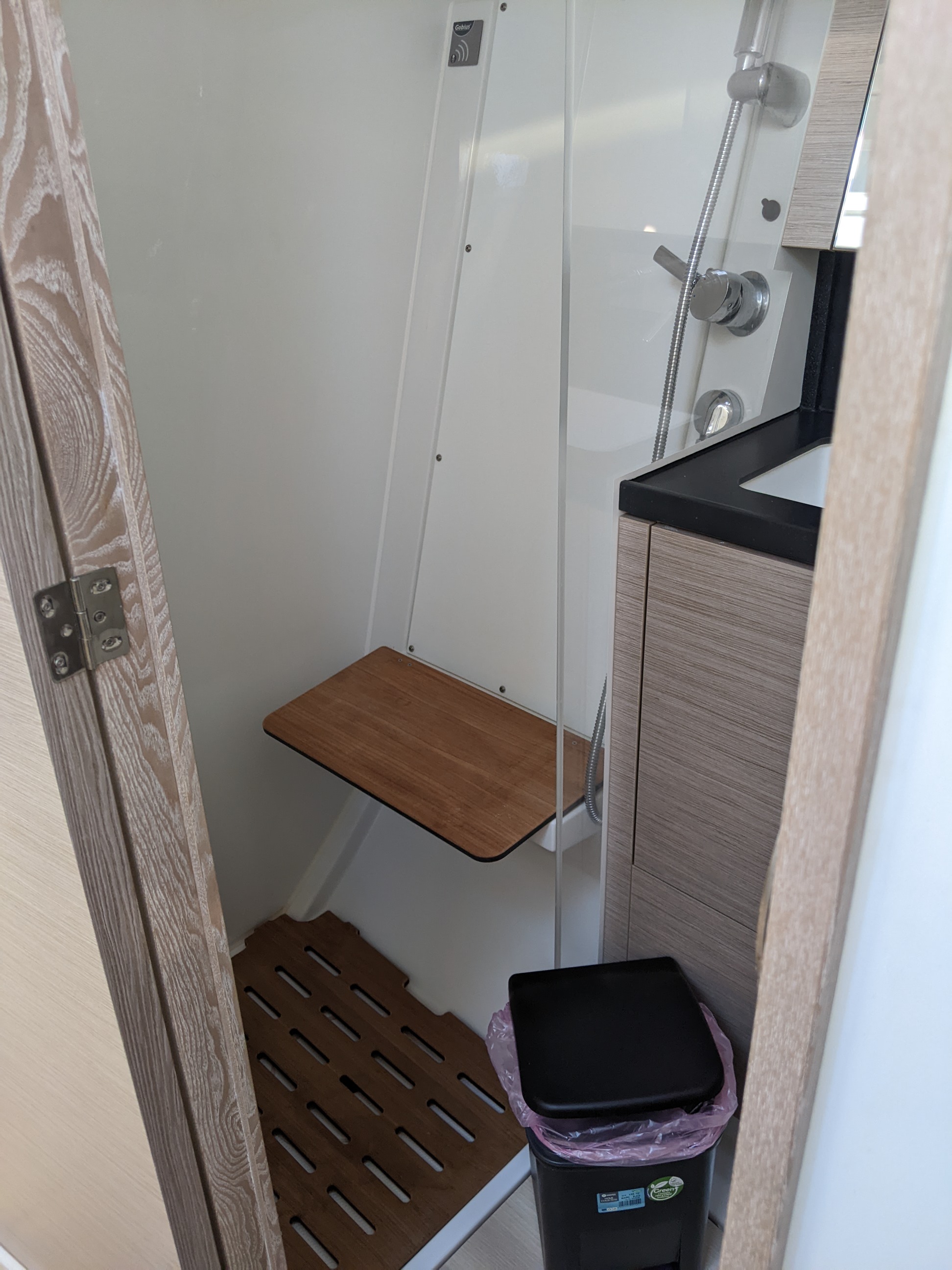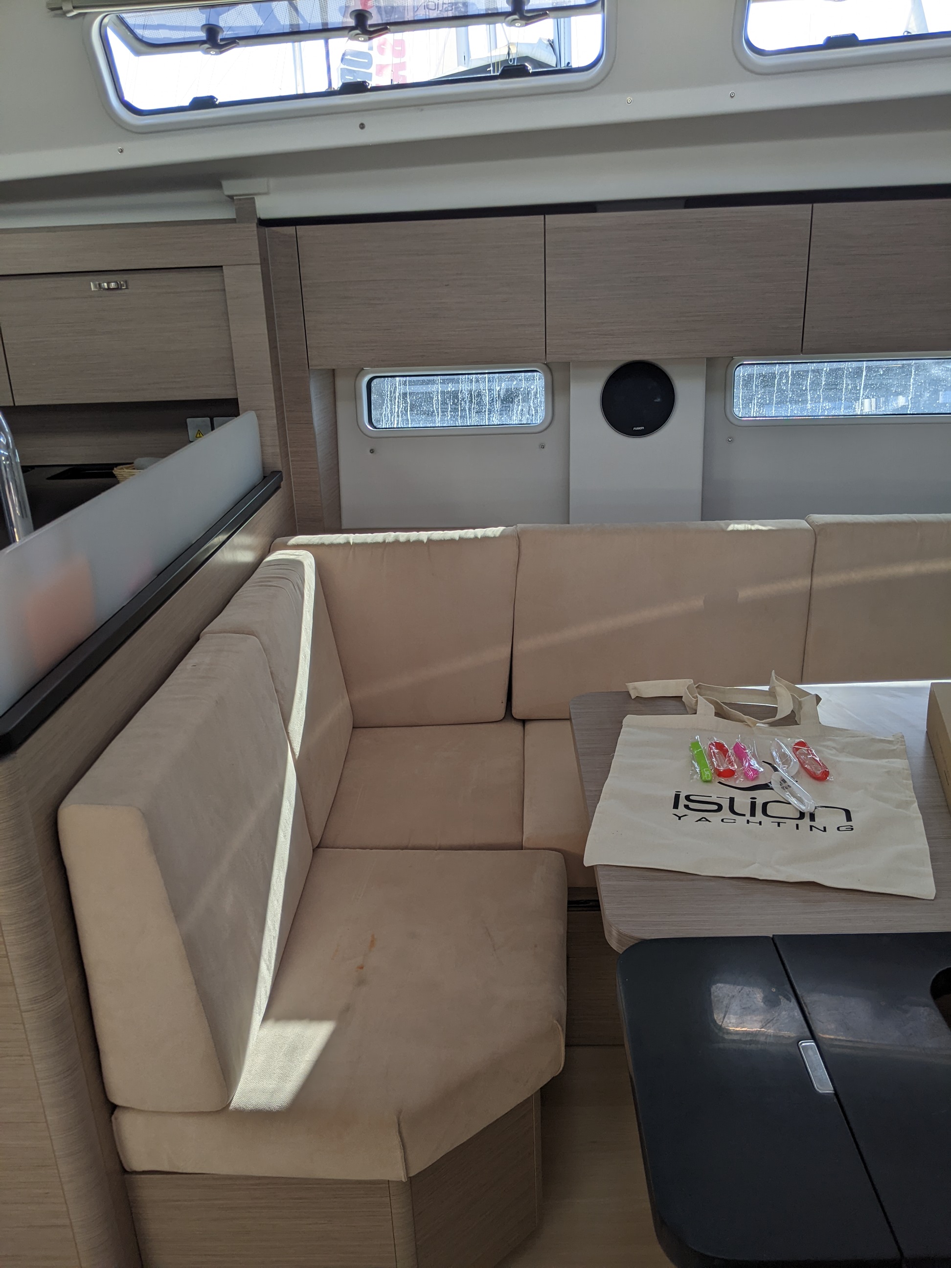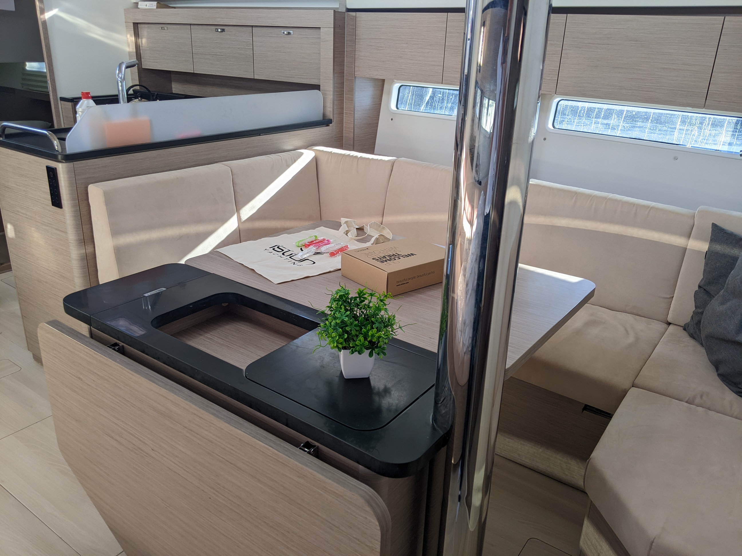 | Outside | Bathing platform, Bimini top, Electr. anchor windlass, Folding propeller, Solar panels, Sprayhood |