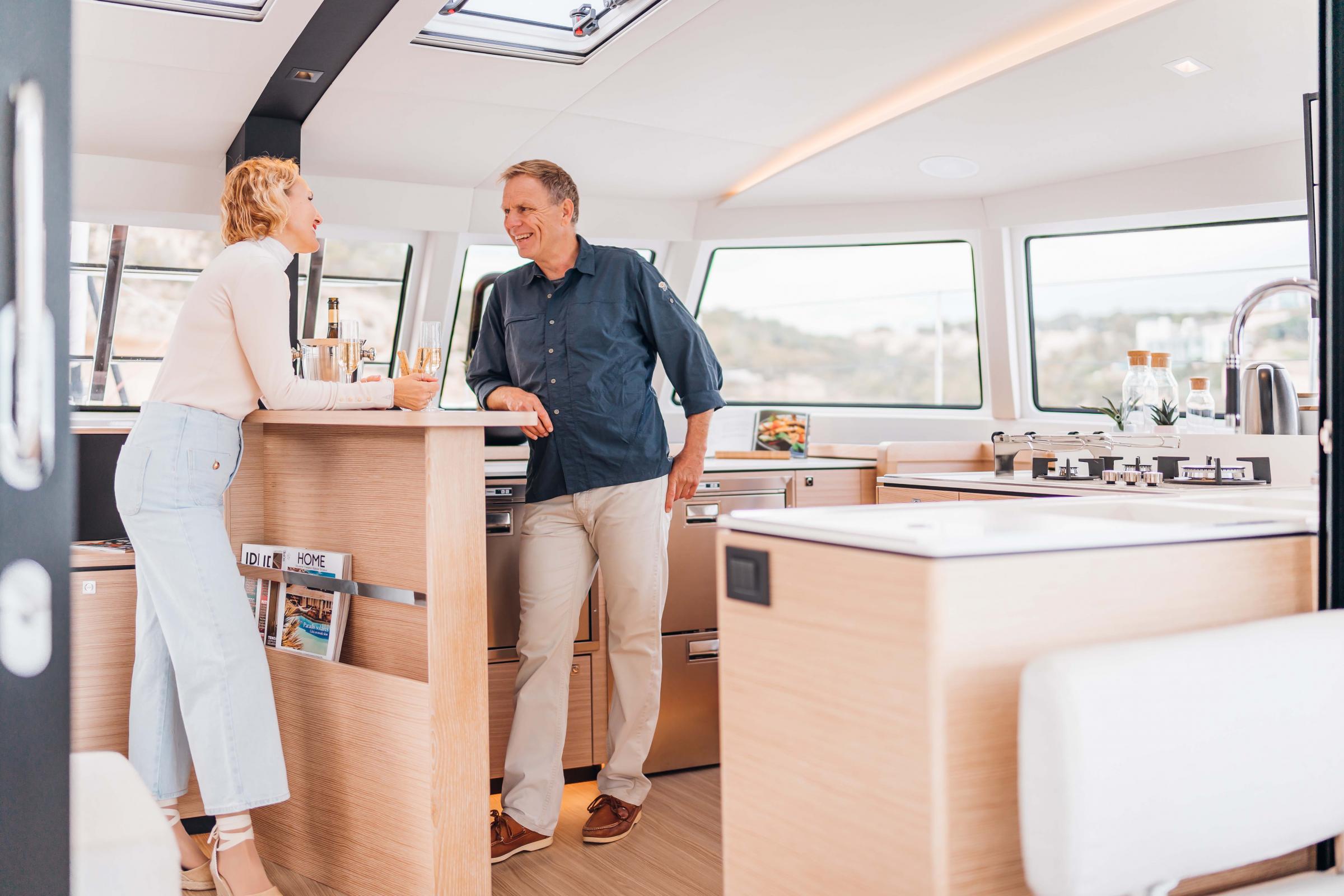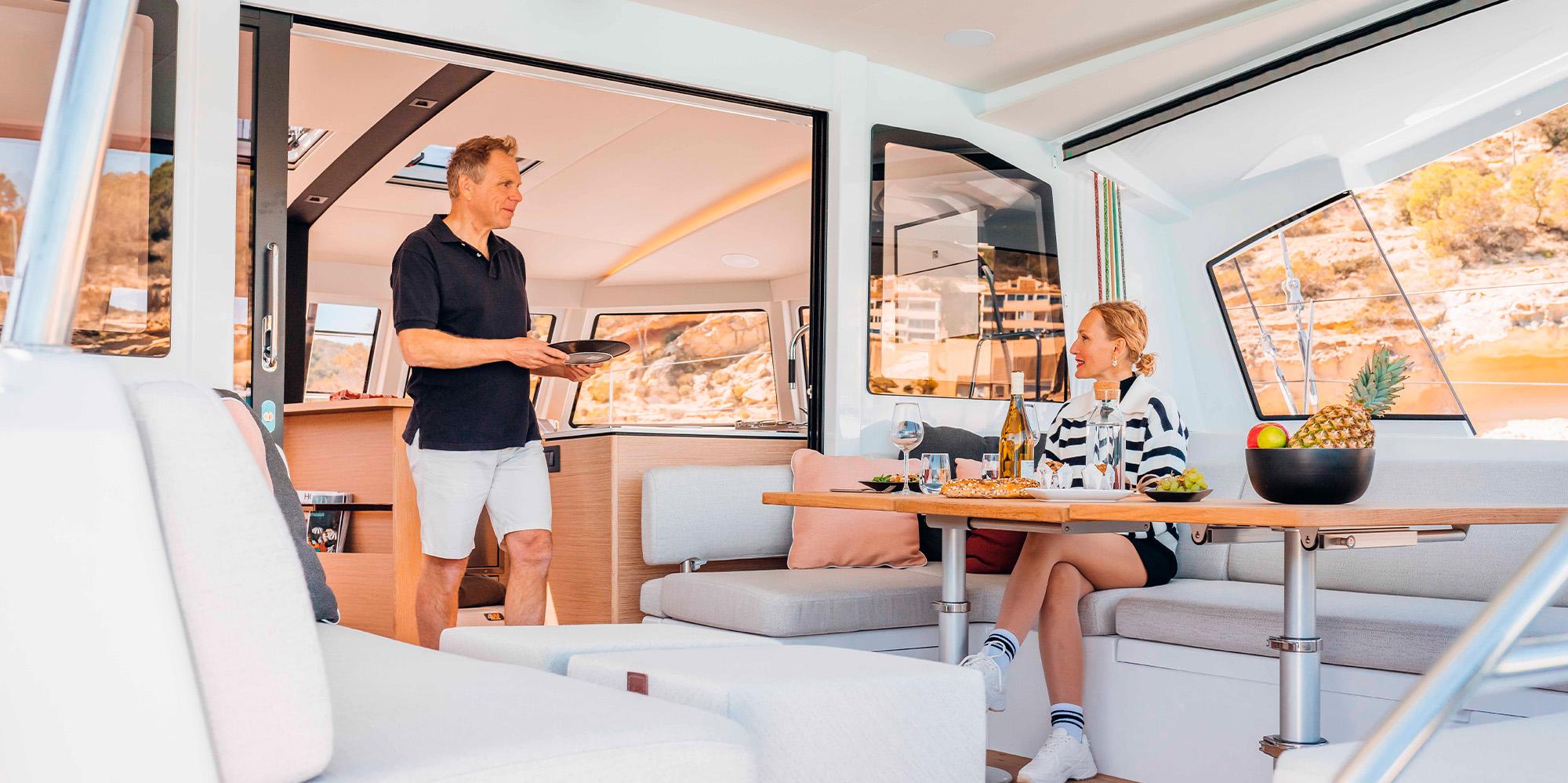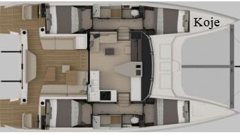 | Inside | 220V sockets, Oven, Gas oven, Freezer, Generator, Airconditioning (independent from shore power), Refrigerator, Battery charger, Pantry equipment, Radio with USB and Bluetooth, Convertible salon table, USB sockets in the cabins, Fan, Warm water, Watermaker, WC (electr.) |