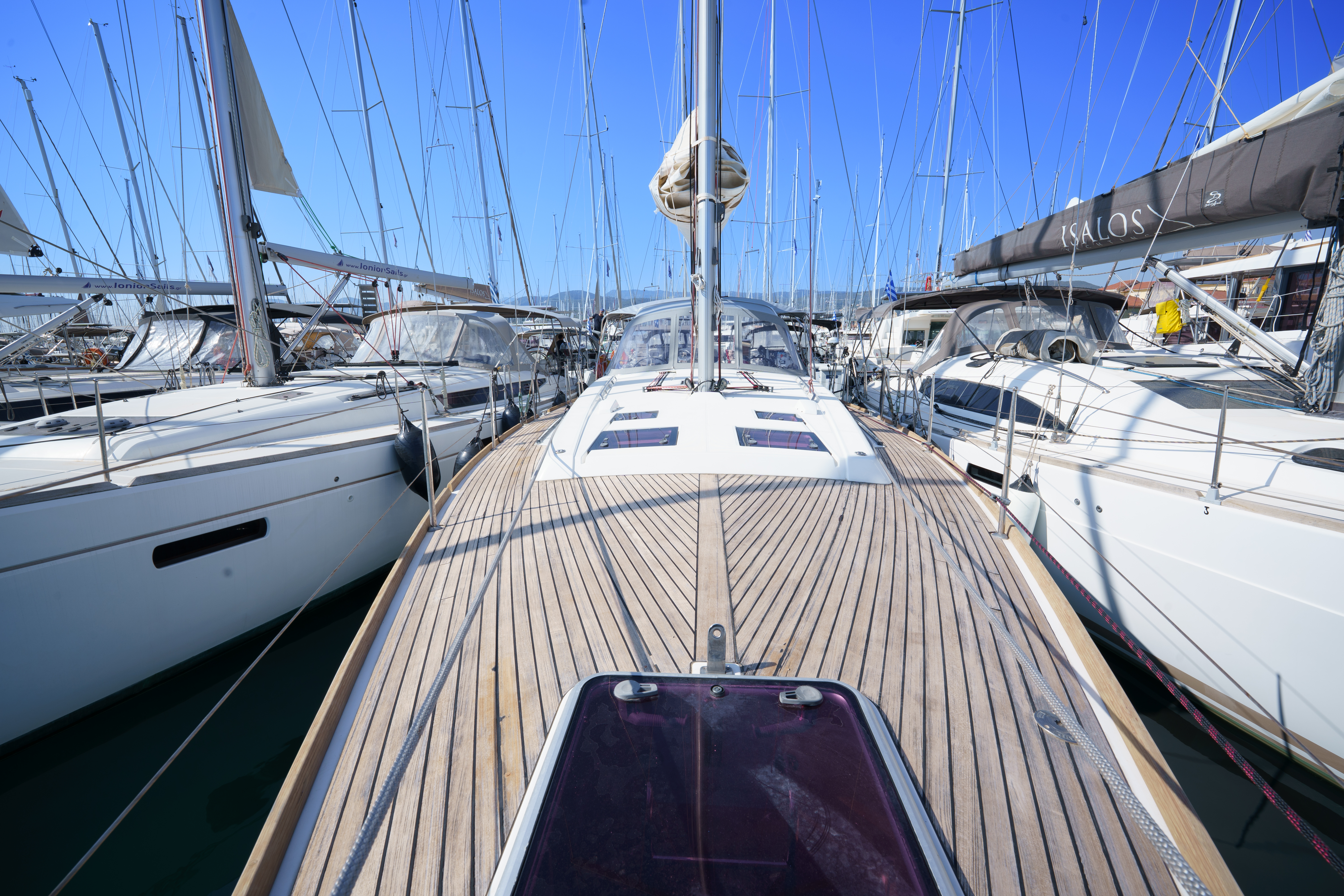 | Outside | Outside shower, Bathing ladder, Bimini top, Cockpit speakers, Cockpit cushions, Cockpit table, Electr. anchor windlass, electr. winch, Solar panels, Sprayhood, Teak in cockpit, Teak deck, Drift anchor |