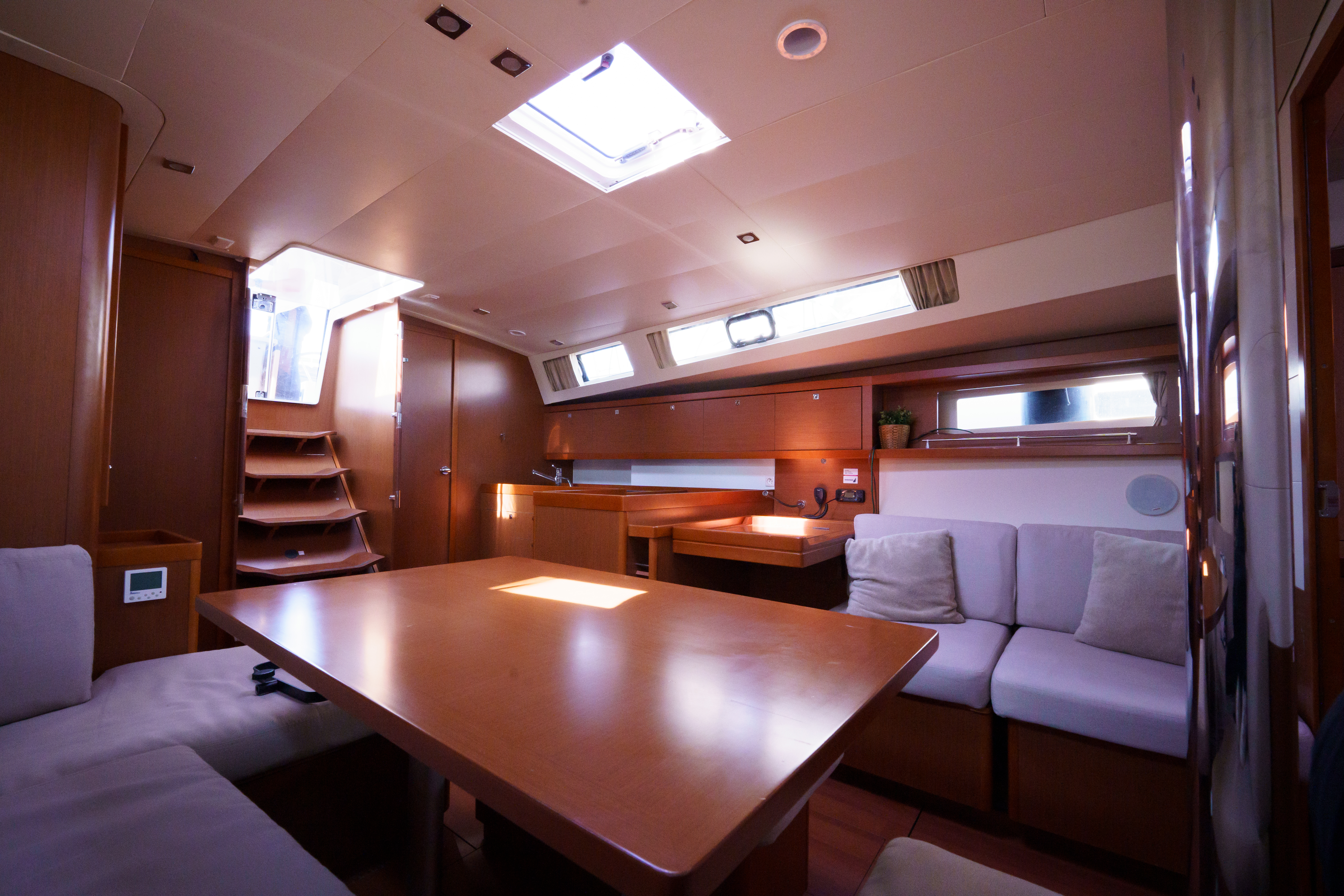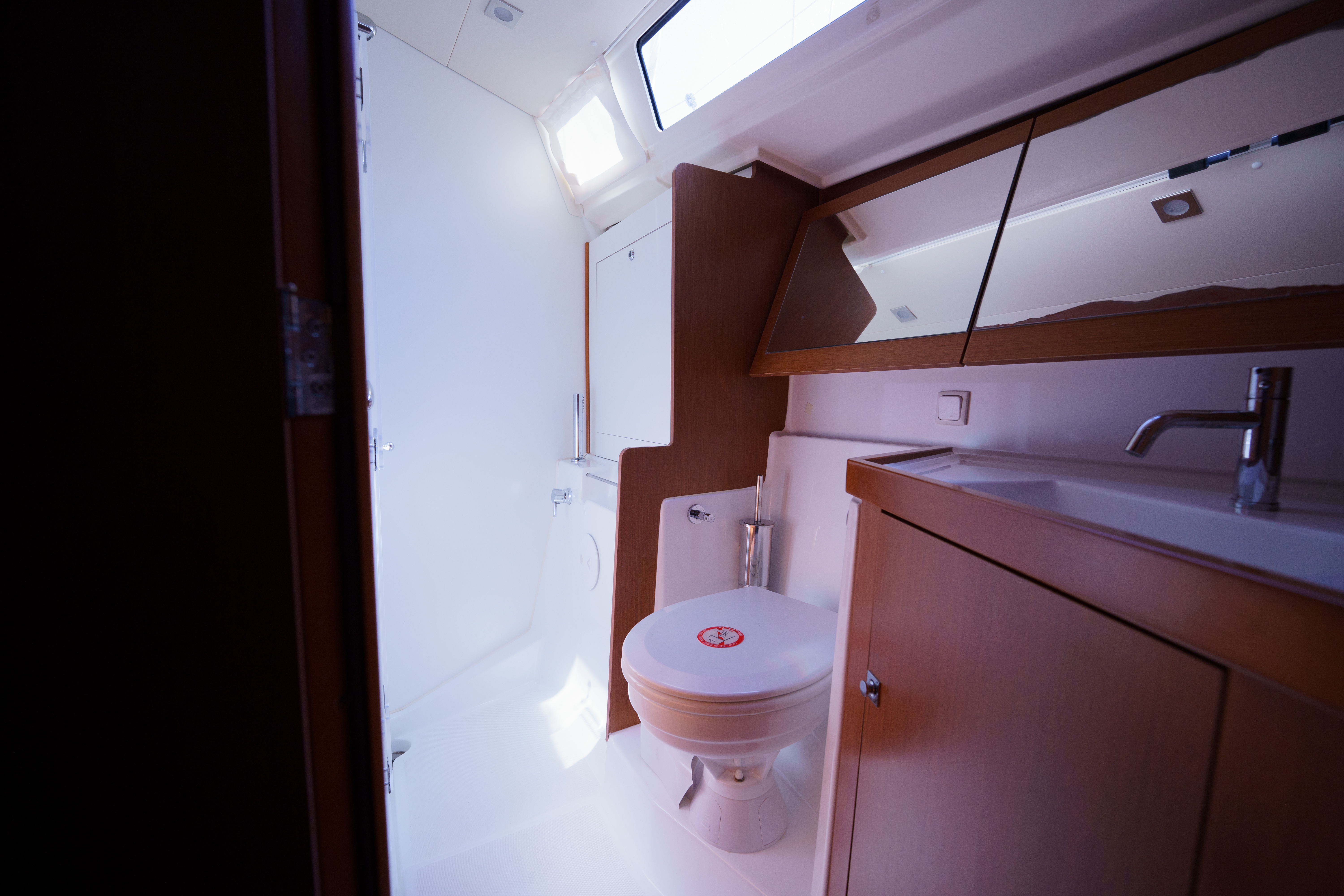 | Inside | 220V sockets, Gas oven, Generator, Airconditioning (independent from shore power), Speakers in saloon, Pantry equipment, Radio with CD player, Convertible salon table, USB sockets in the cabins, fans in cabins, Warm water, WC (electr.) |