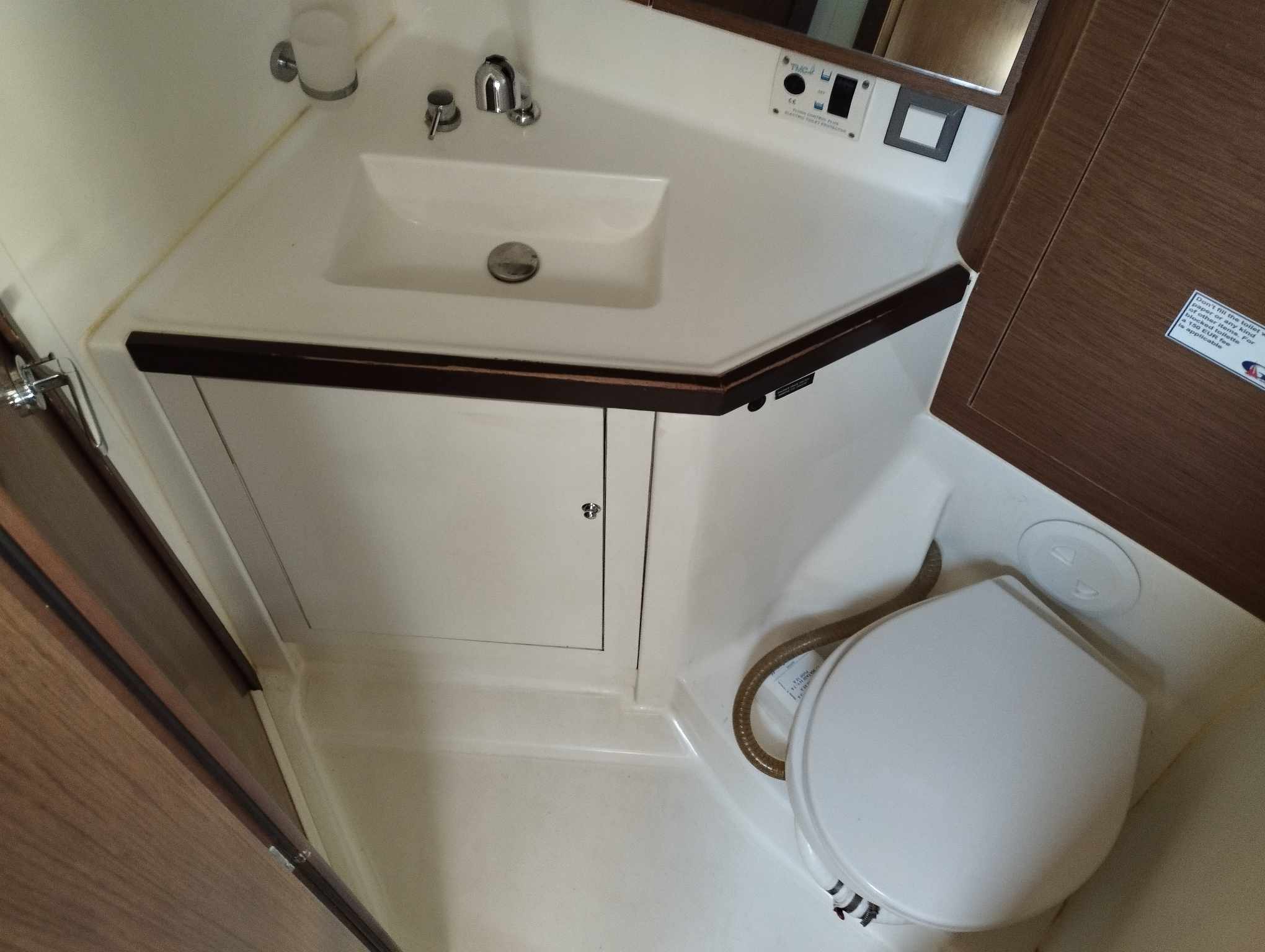 | Inside | Gas oven, Generator, Airconditioning (independent from shore power), Refrigerator, Radio with USB and Bluetooth, TV, USB sockets in the cabins, fans in cabins, WC (electr.) |