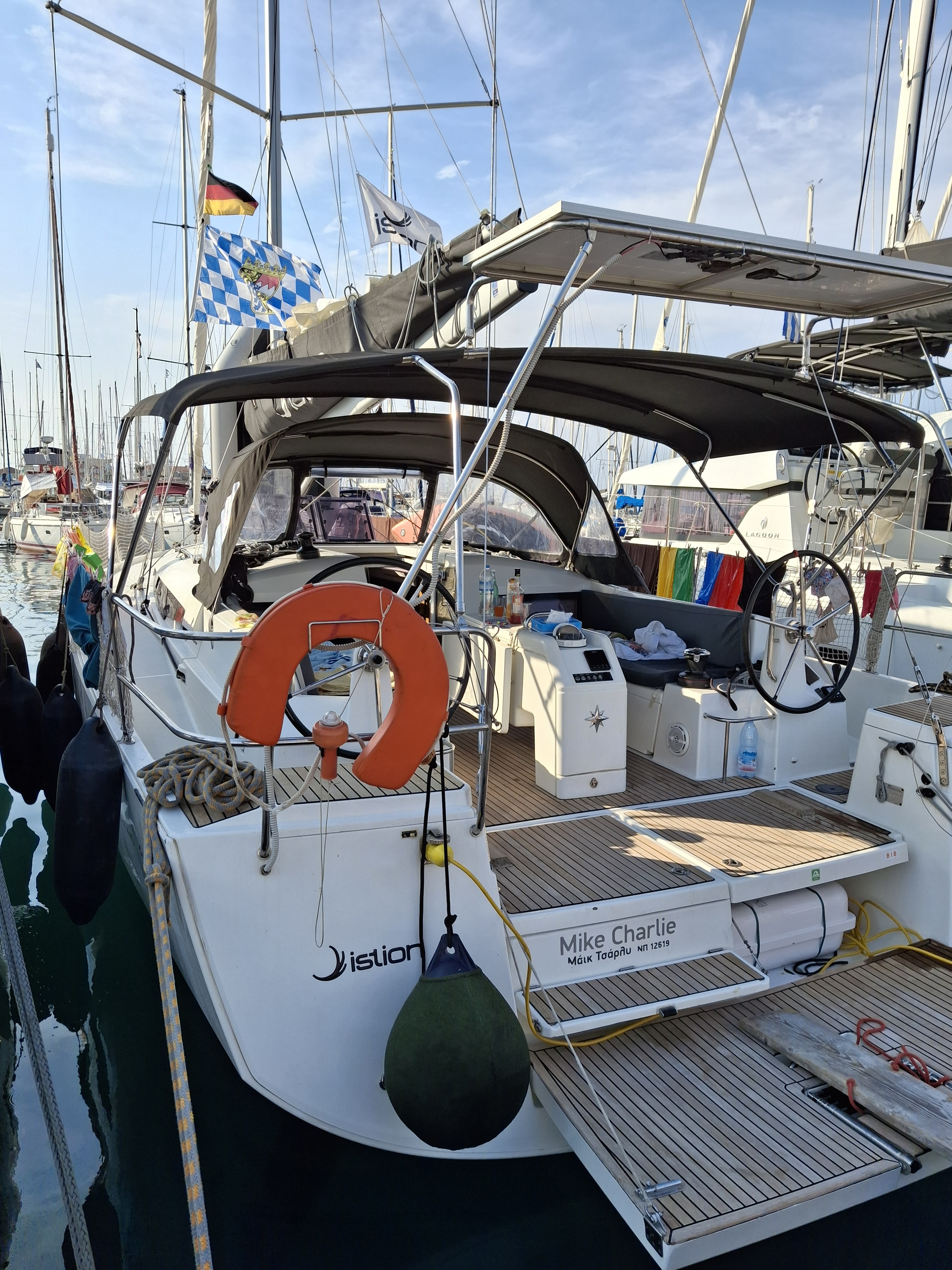 | Outside | Bathing platform, Bimini top, Cockpit cushions, Gangway, Solar panels, Sprayhood |