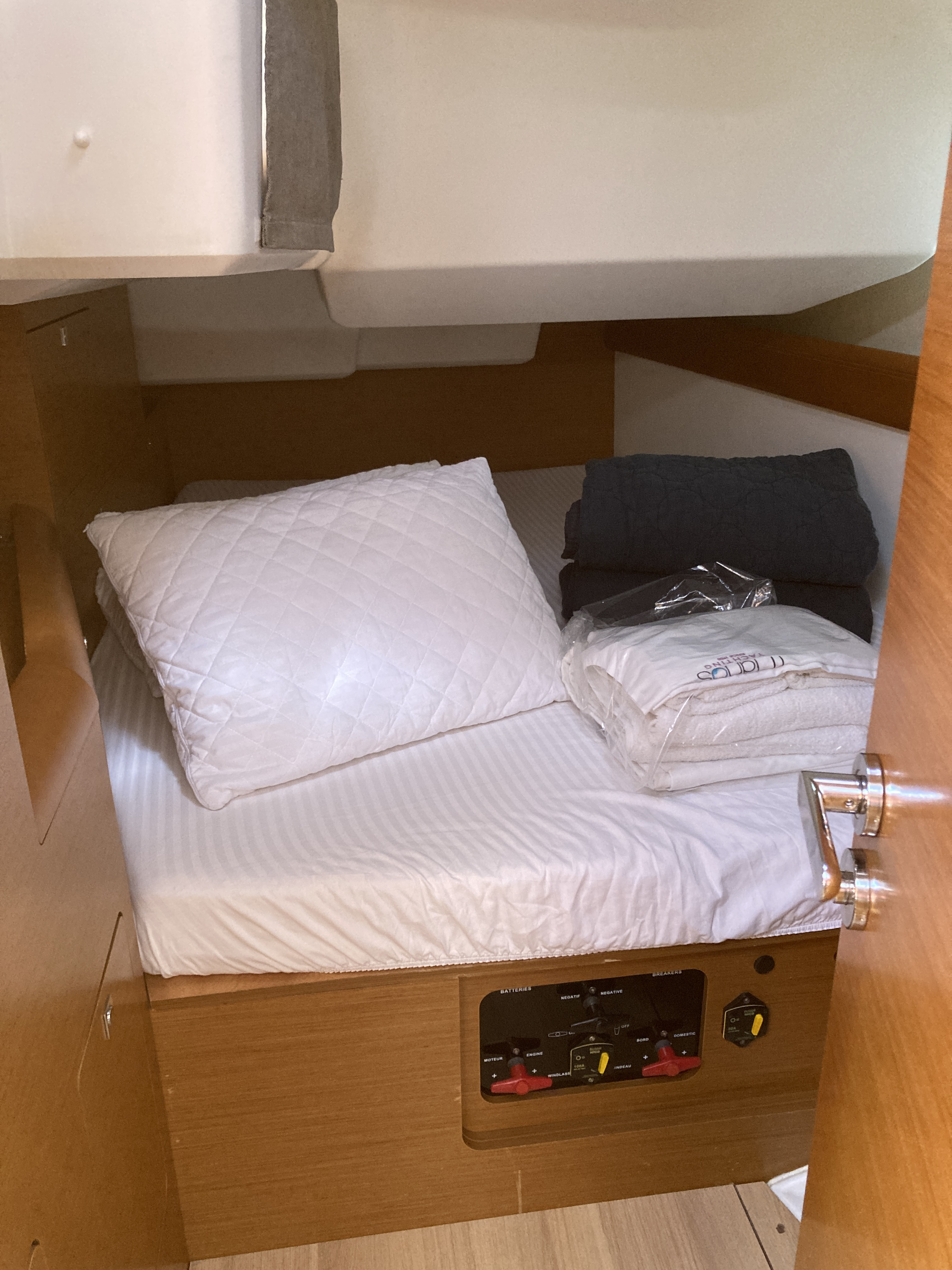 | Navigation | GPS with chart plotter in cockpit, Nautical charts, Tridata (Log, Echosounder, Windm.) |