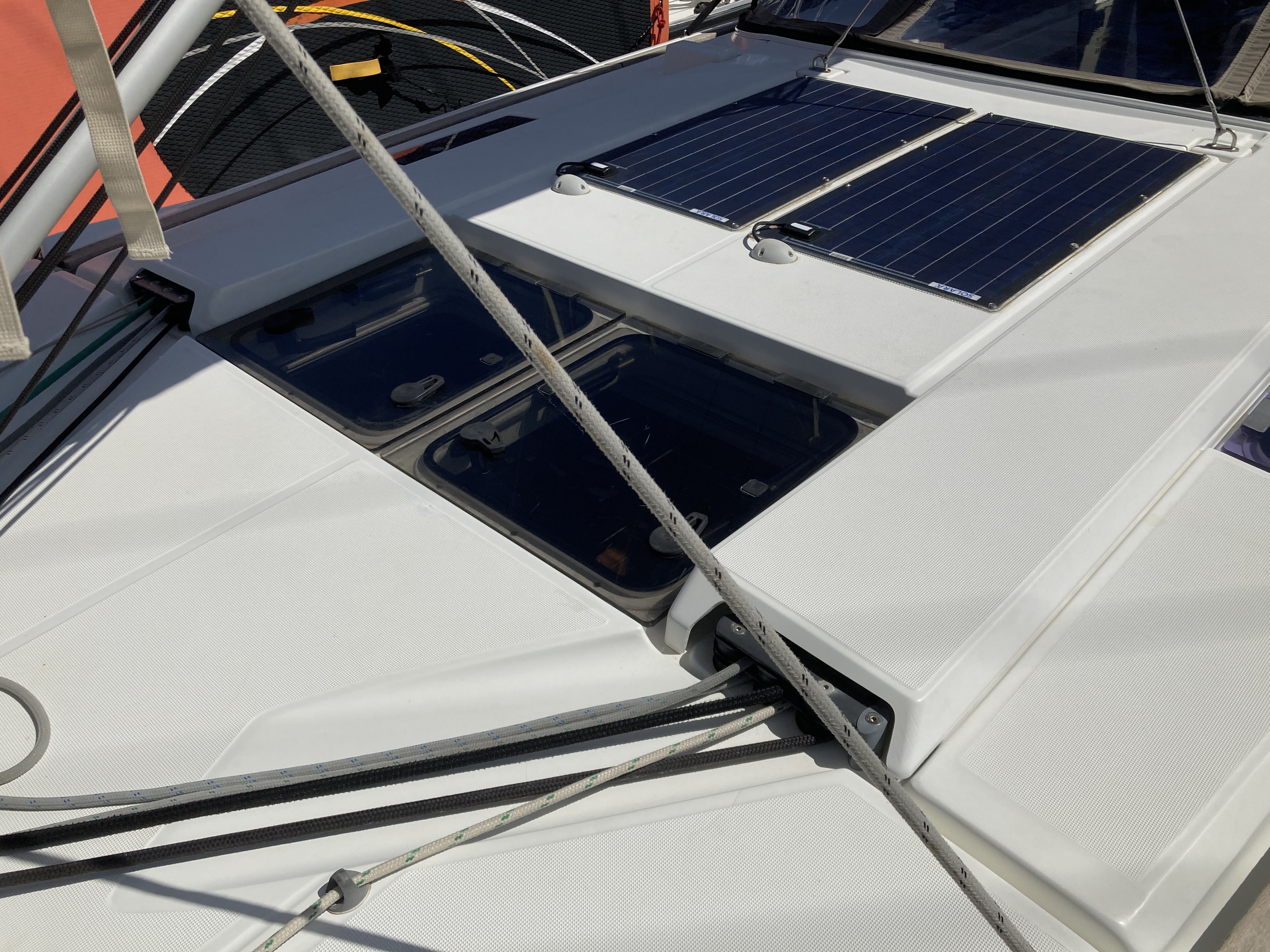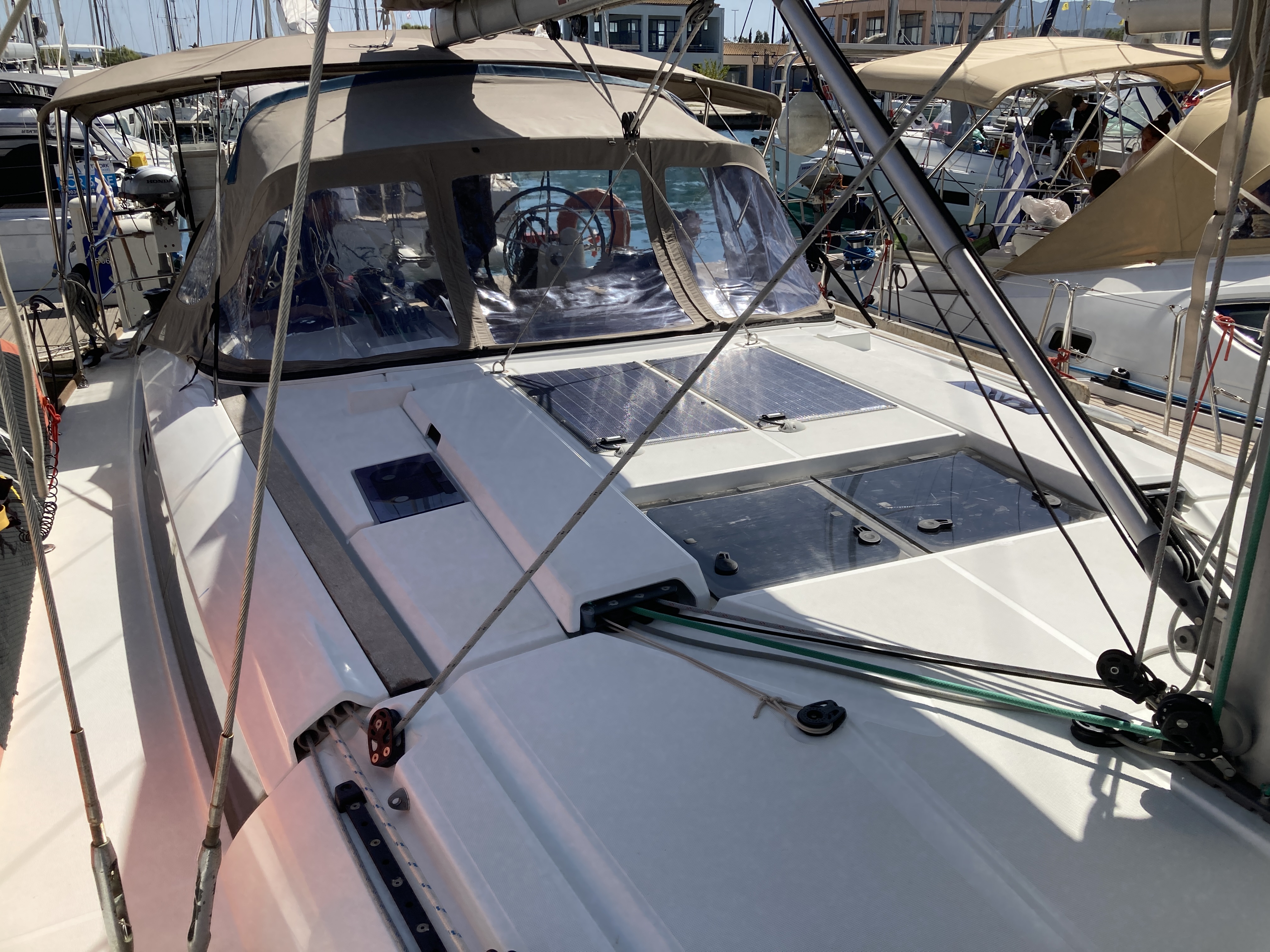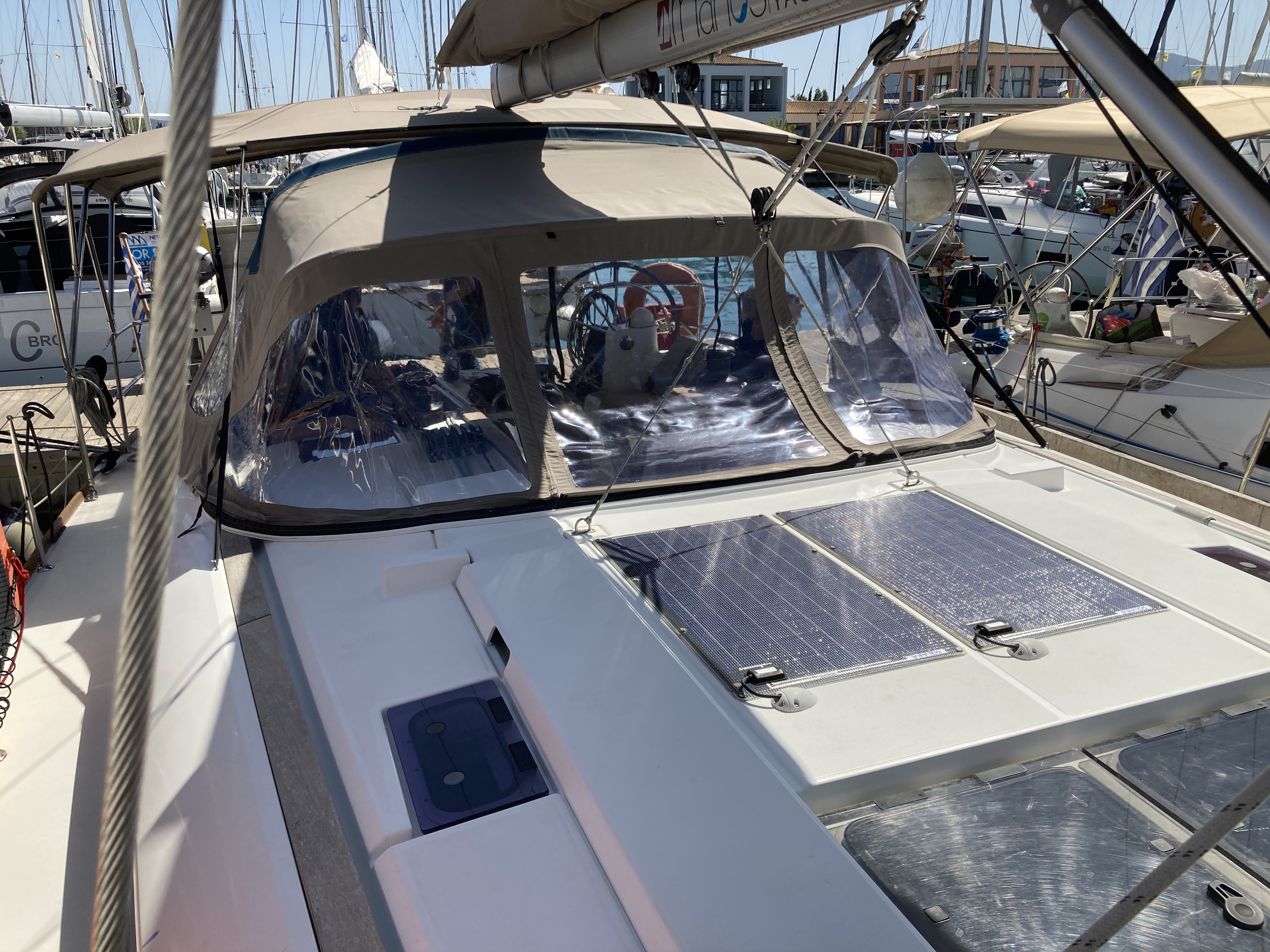 | Outside | 220V shore connection, Anchor with chain, Bathing ladder, Bathing platform, Bimini top, Cockpit shower, Cockpit speakers, Cockpit cushions, Cockpit table, Delta anchor, Electr. anchor windlass, Gangway, Solar panels, Sprayhood, Teak in cockpit |