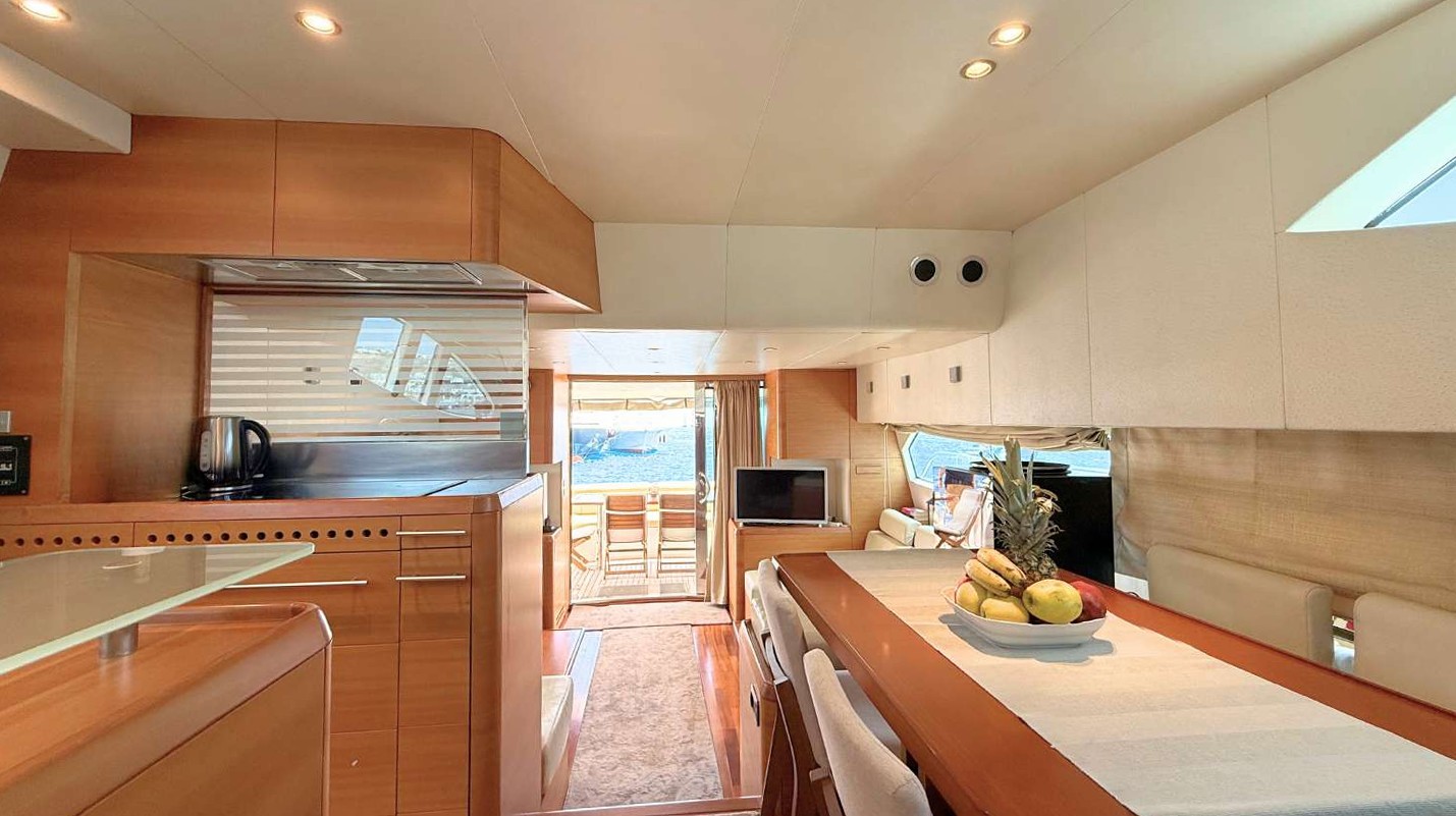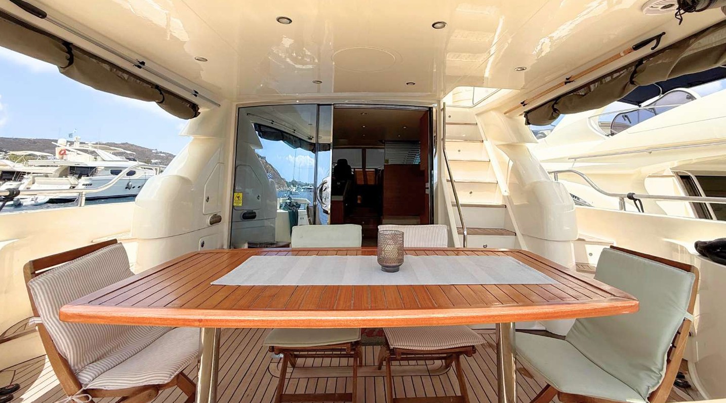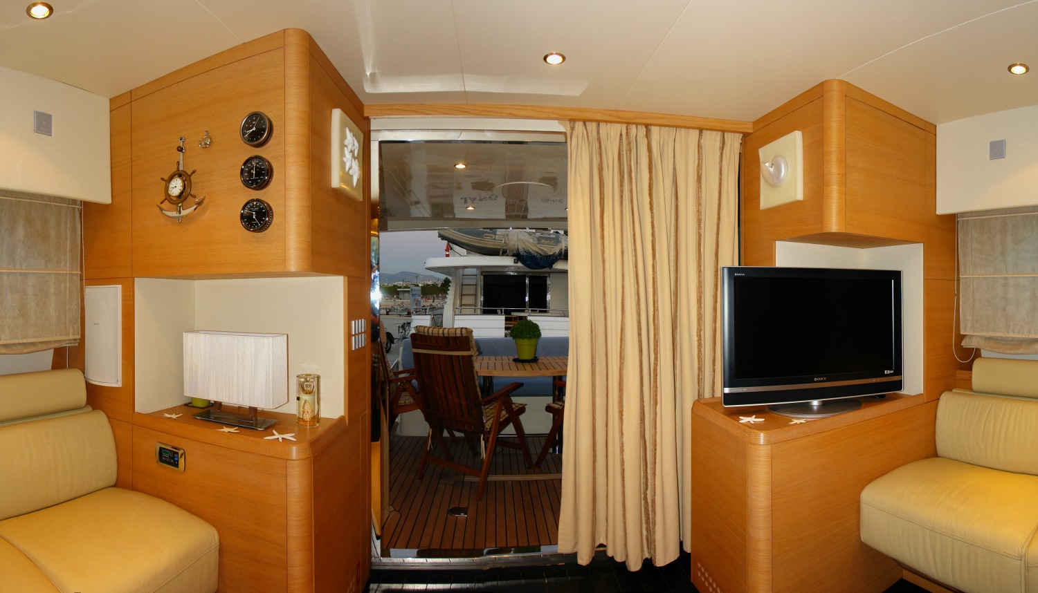 | Outside | Bathing platform, BBQ and fridge on flybridge, Sun deck |