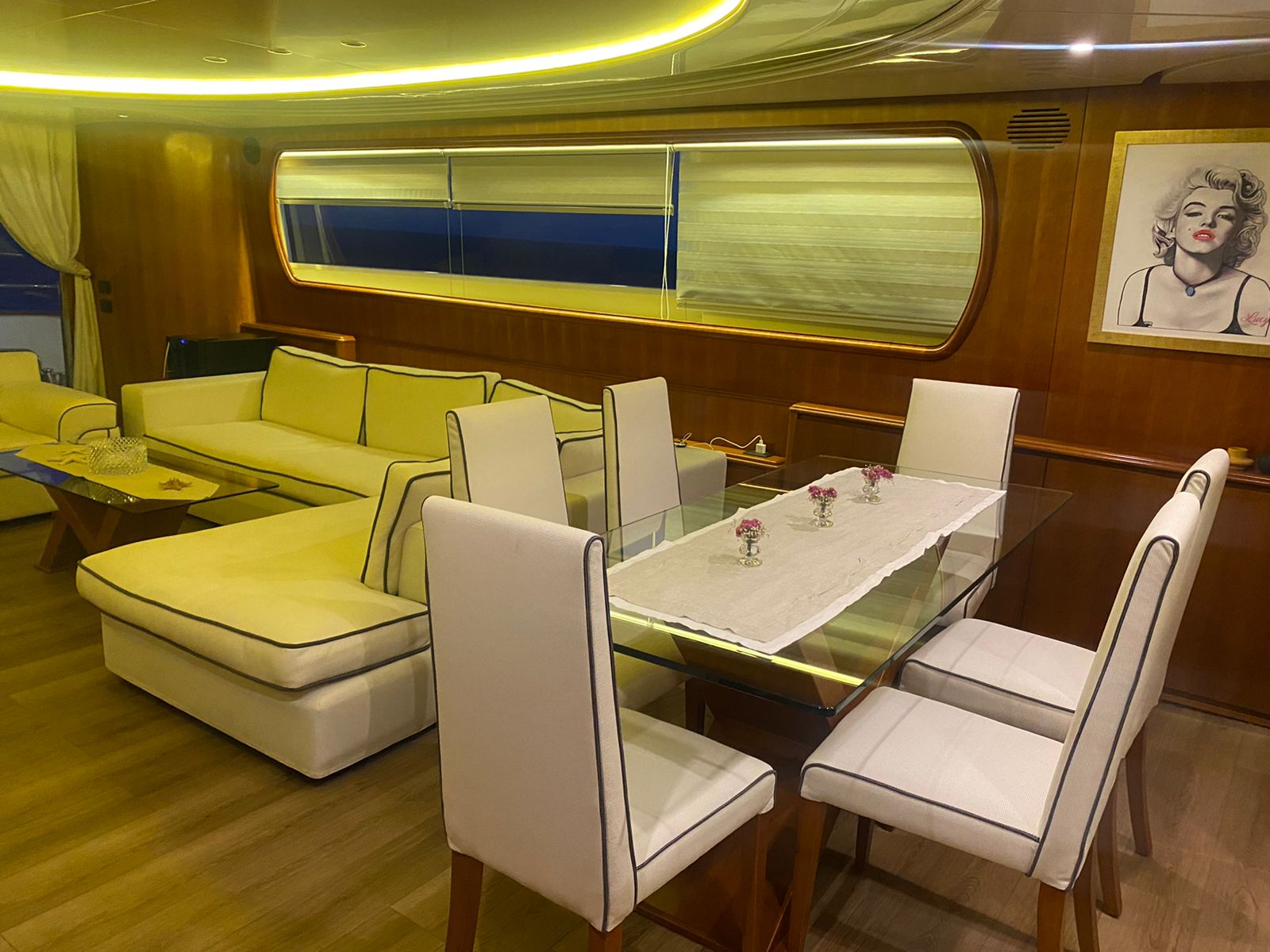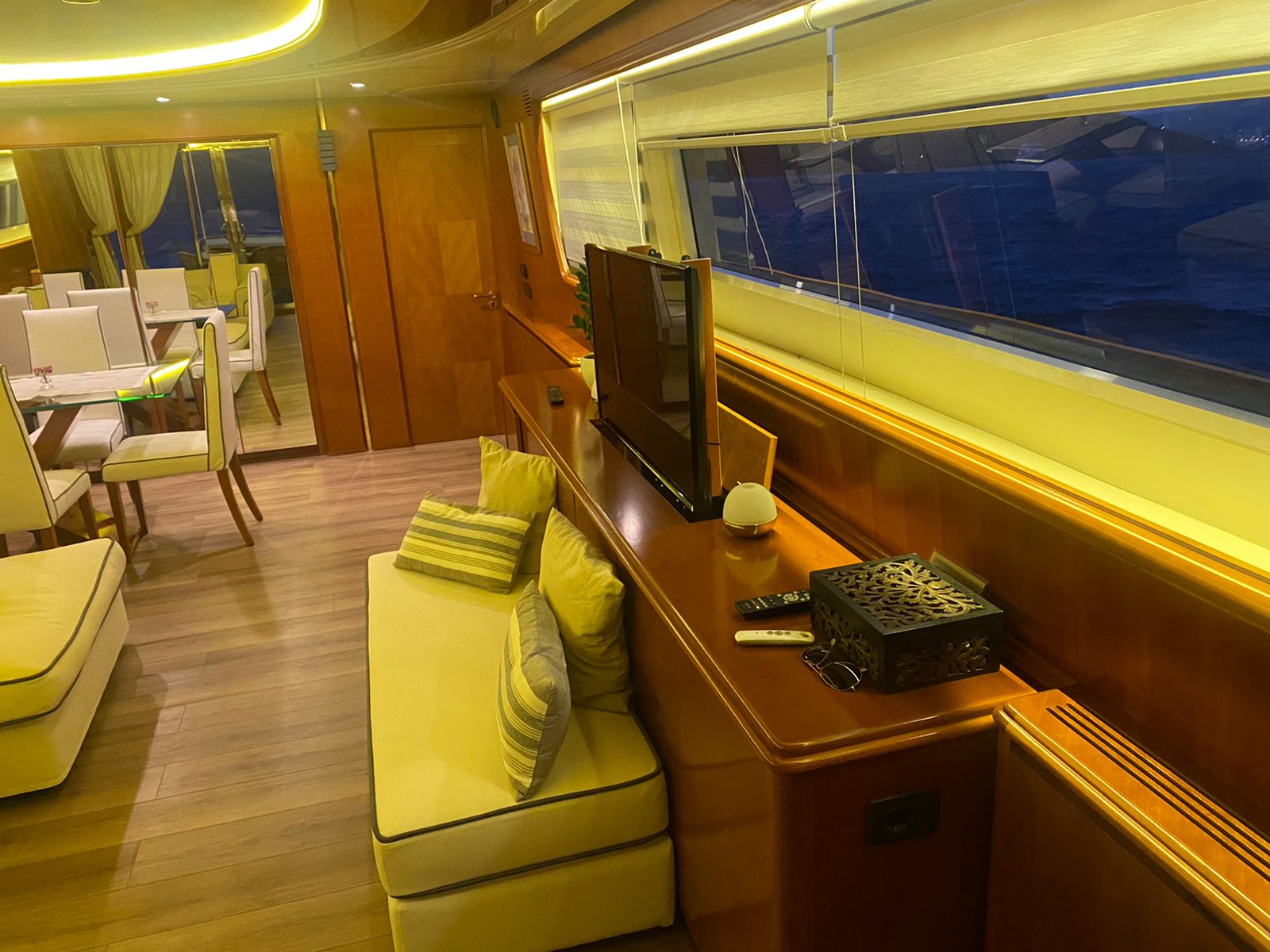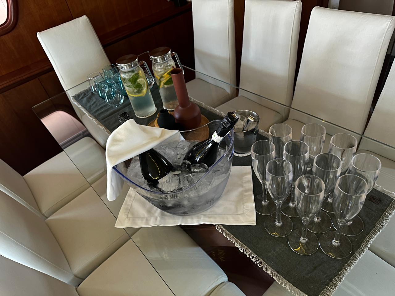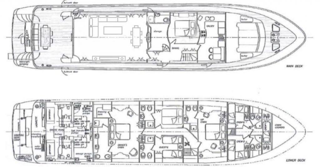 | Inside | Generator, Airconditioning (independent from shore power), Pantry equipment, Sound system, TV |