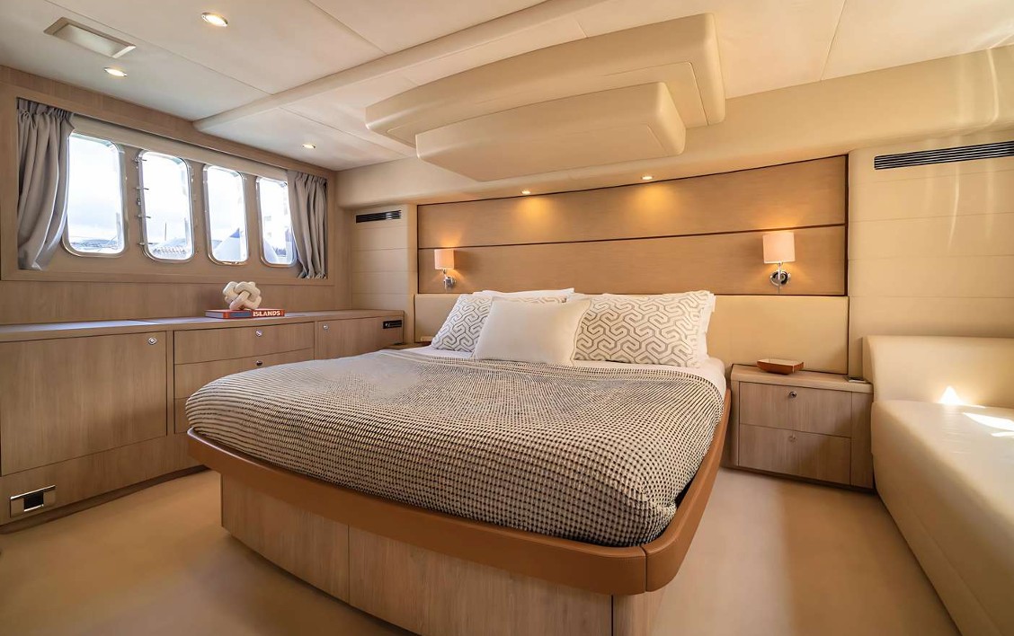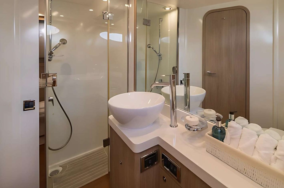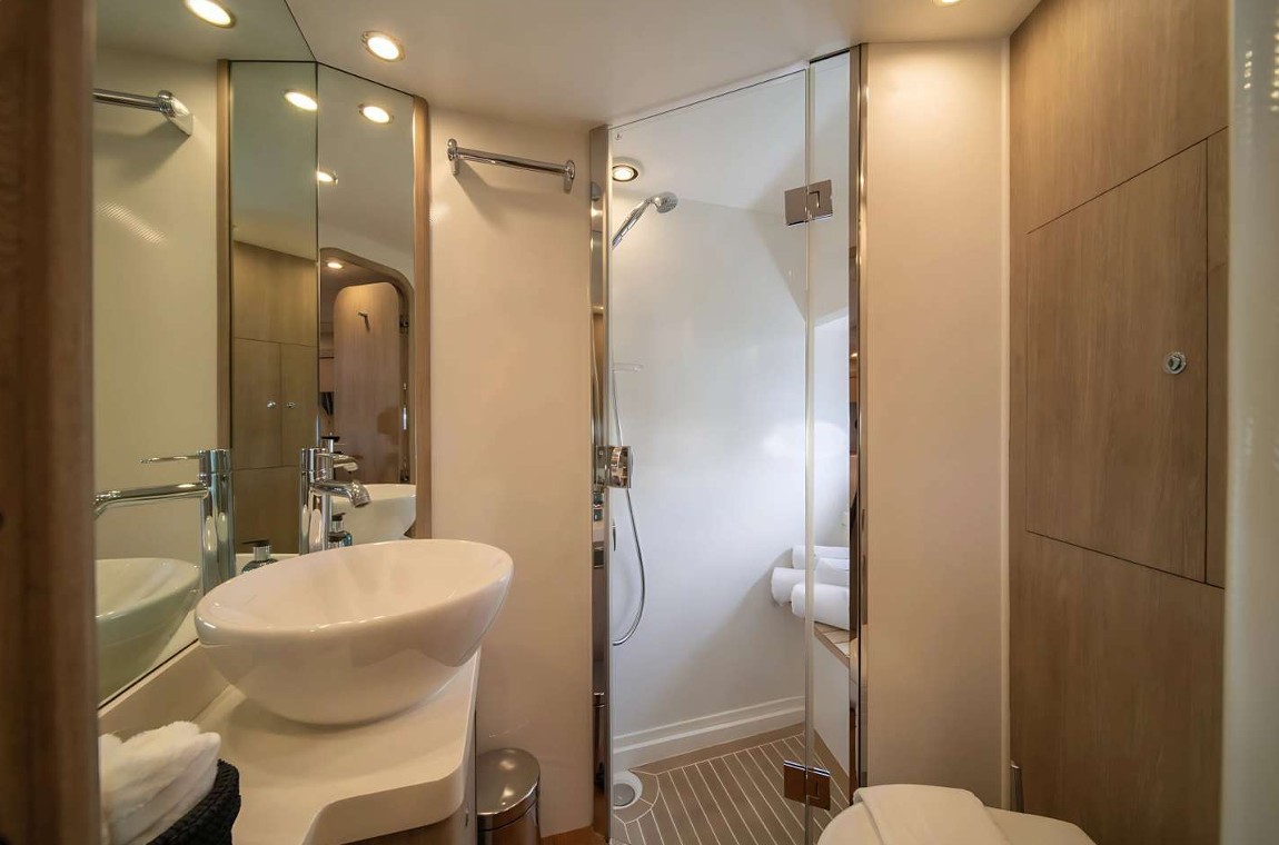 | Inside | 2nd refrigerator, Oven, Ice cube machine, Freezer, Generator, Heating, Coffee machine, Airconditioning (independent from shore power), Refrigerator, Microwave oven, Pantry equipment, Sink, TV, Washing machine, Watermaker |