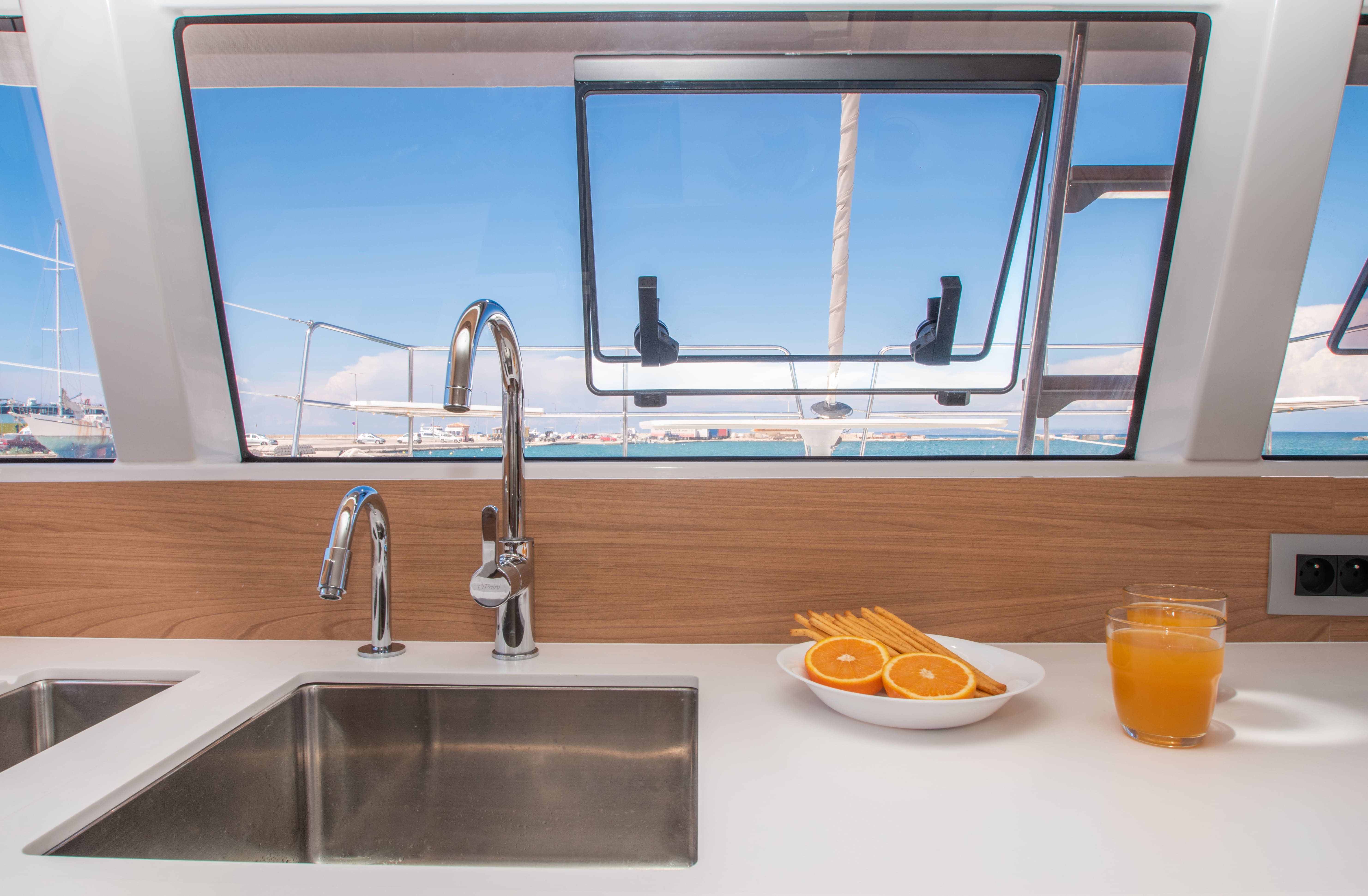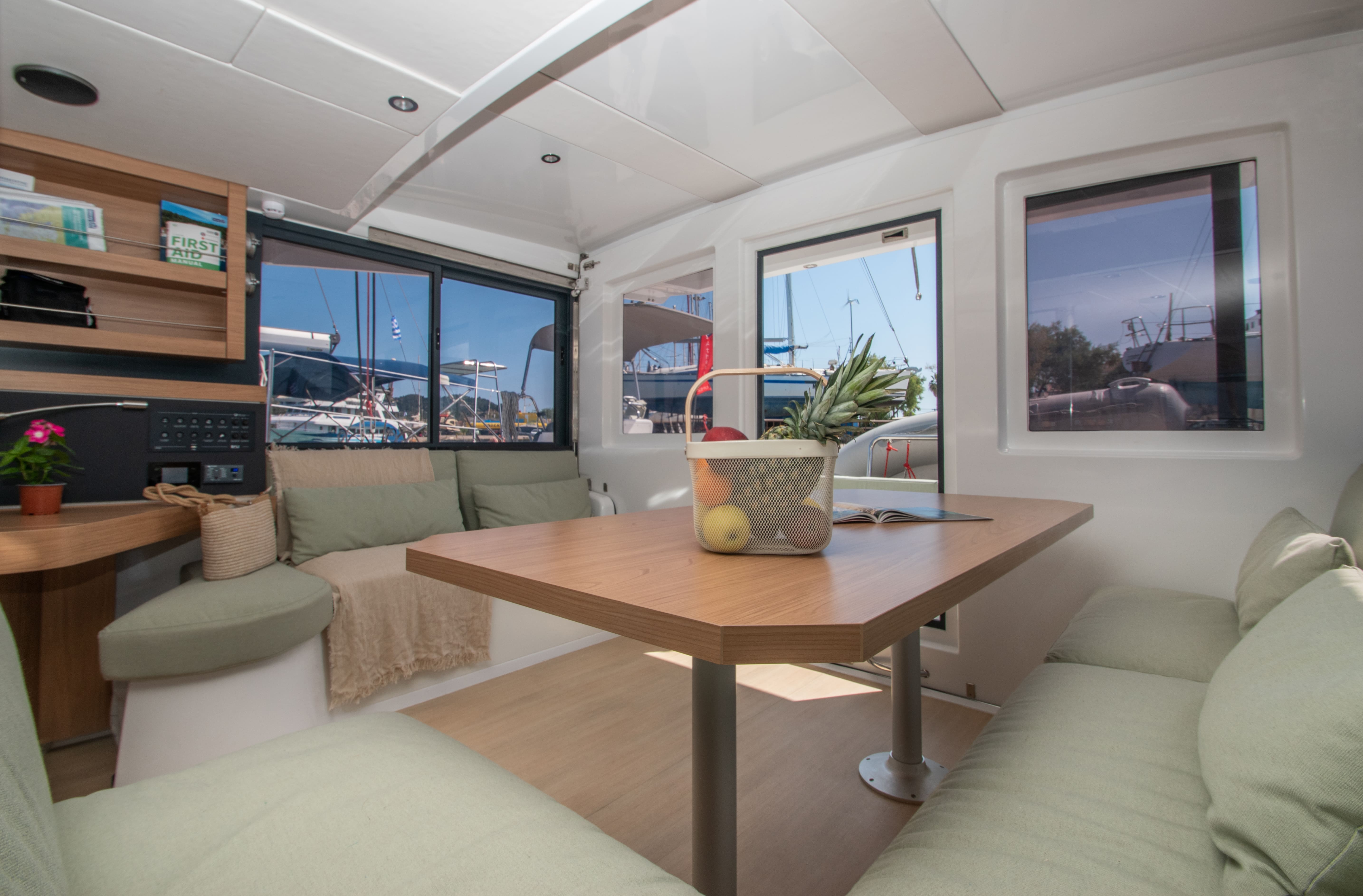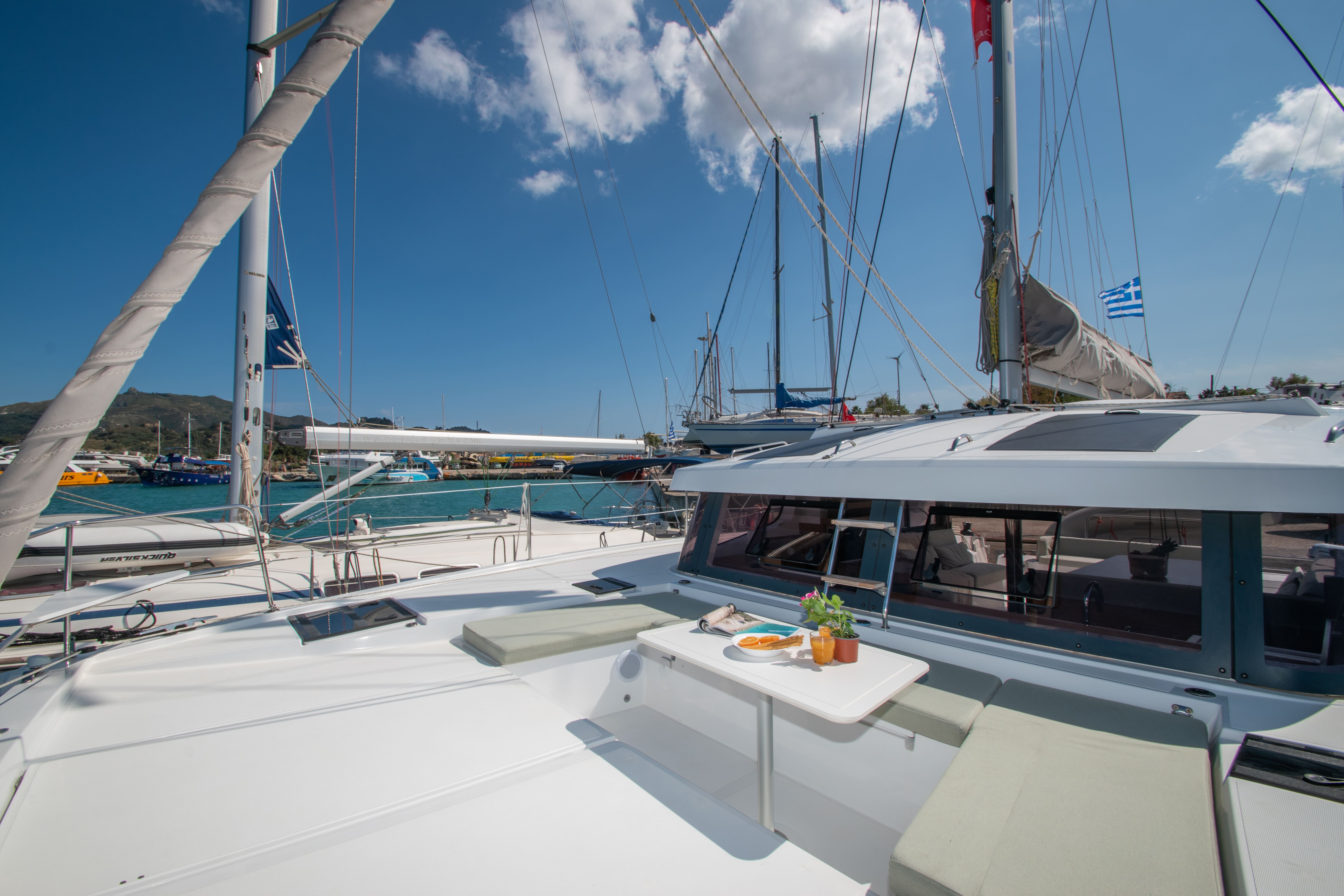 | Outside | 220V shore connection, Bathing ladder, Bimini top, Cockpit shower, Cockpit speakers, Cockpit cushions, Cockpit table, Davits, Electr. anchor windlass, Snorkeling gear, Solar panels |