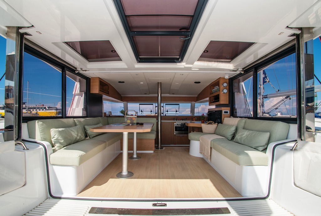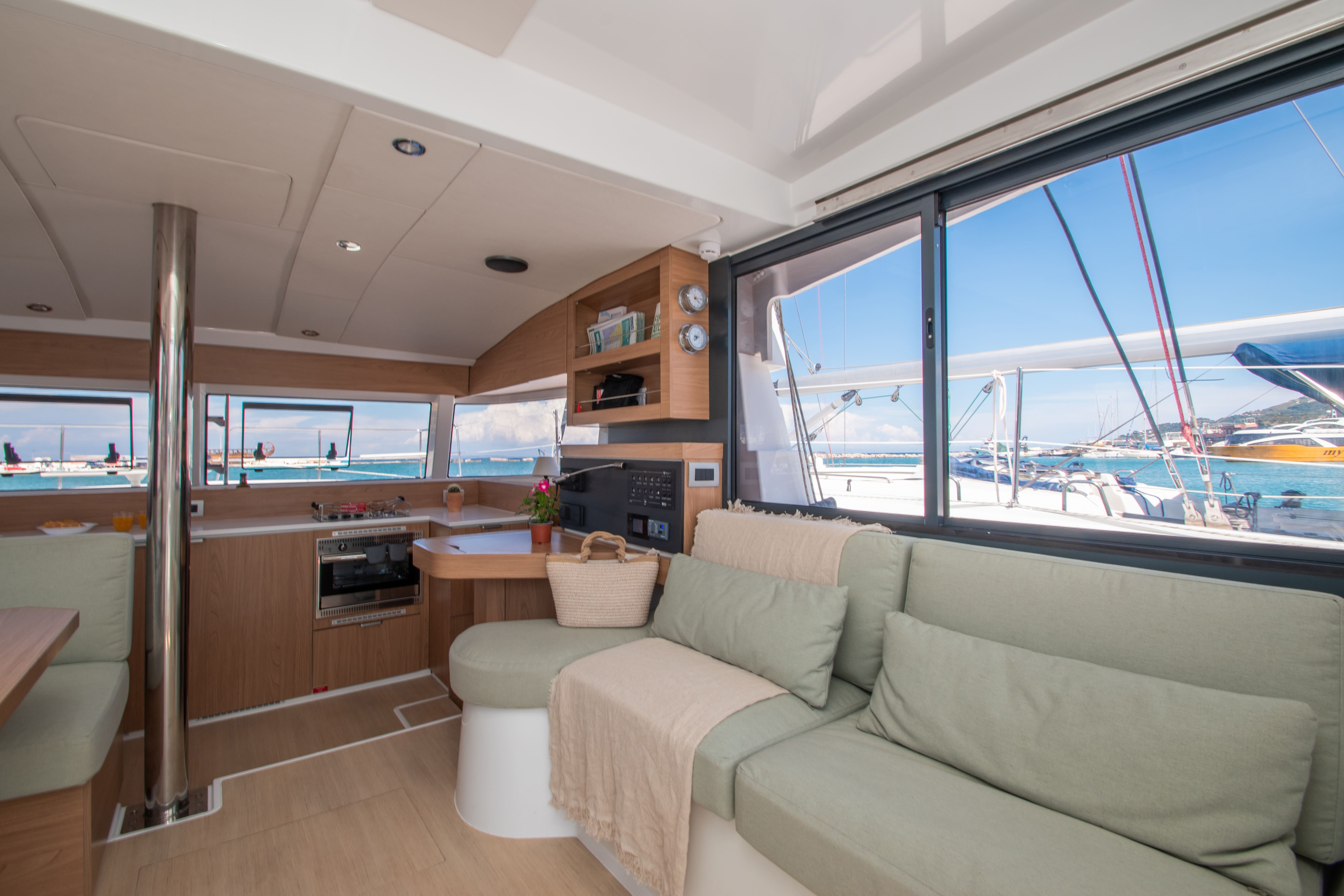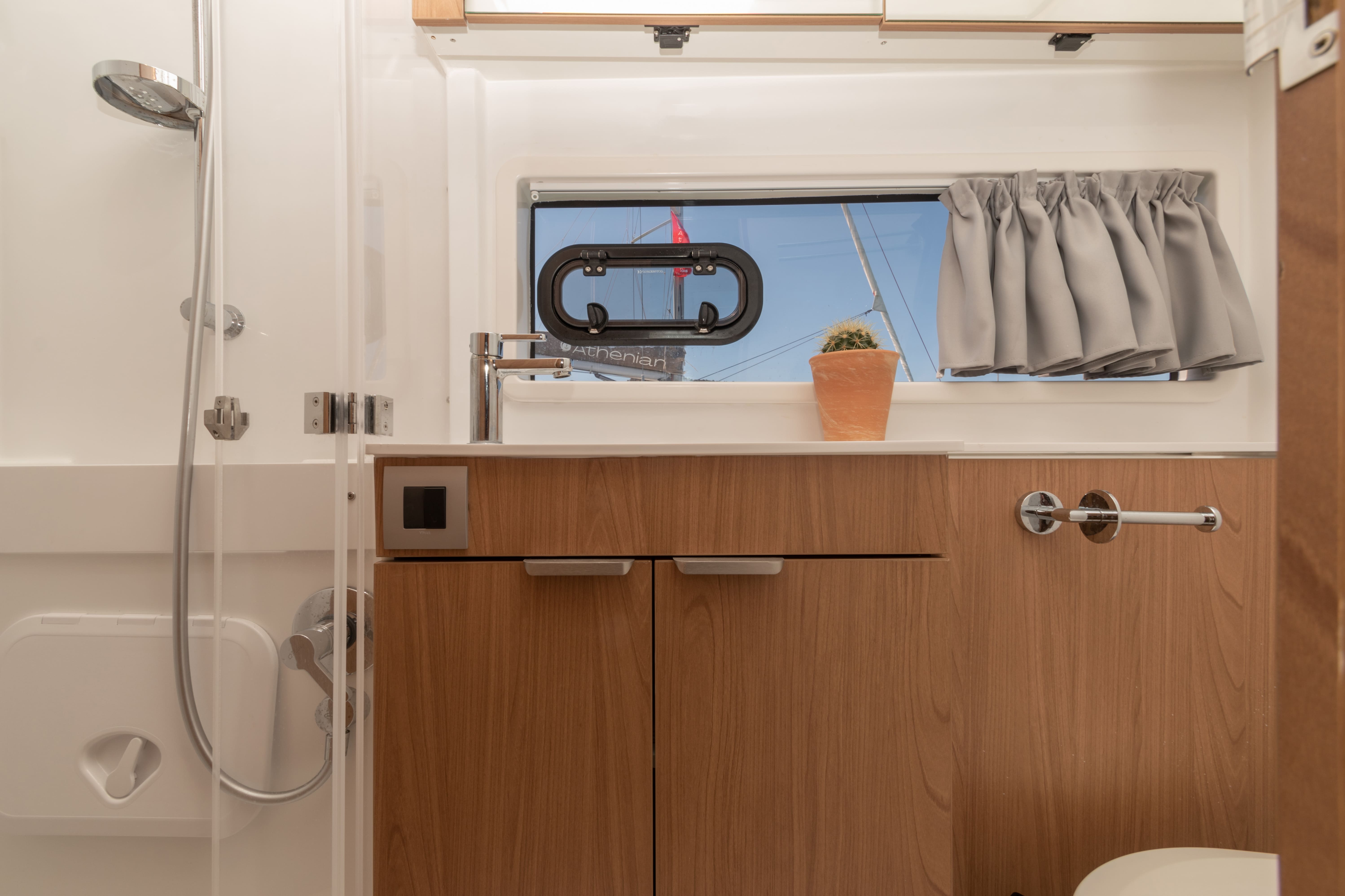 | Outside | 220V shore connection, Bathing ladder, Bimini top, Cockpit shower, Cockpit speakers, Cockpit cushions, Cockpit table, Davits, Electr. anchor windlass, Snorkeling gear, Solar panels |
