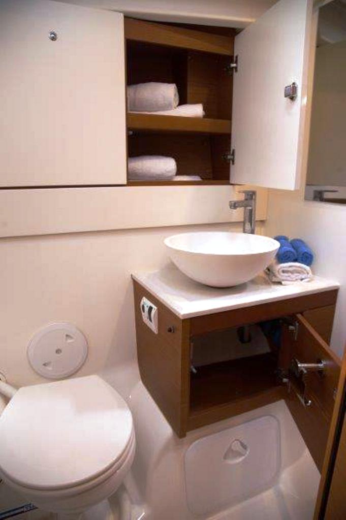| Inside | Oven, Black water tank, Gas oven, Freezer, Generator, Inverter 12V/220V, Airconditioning (independent from shore power), Refrigerator, Battery charger, Shore power cable, Microwave oven, Radio with CD and MP3, TV and DVD player, Cabin & dining area fan , Watermaker, WC (electr.) |