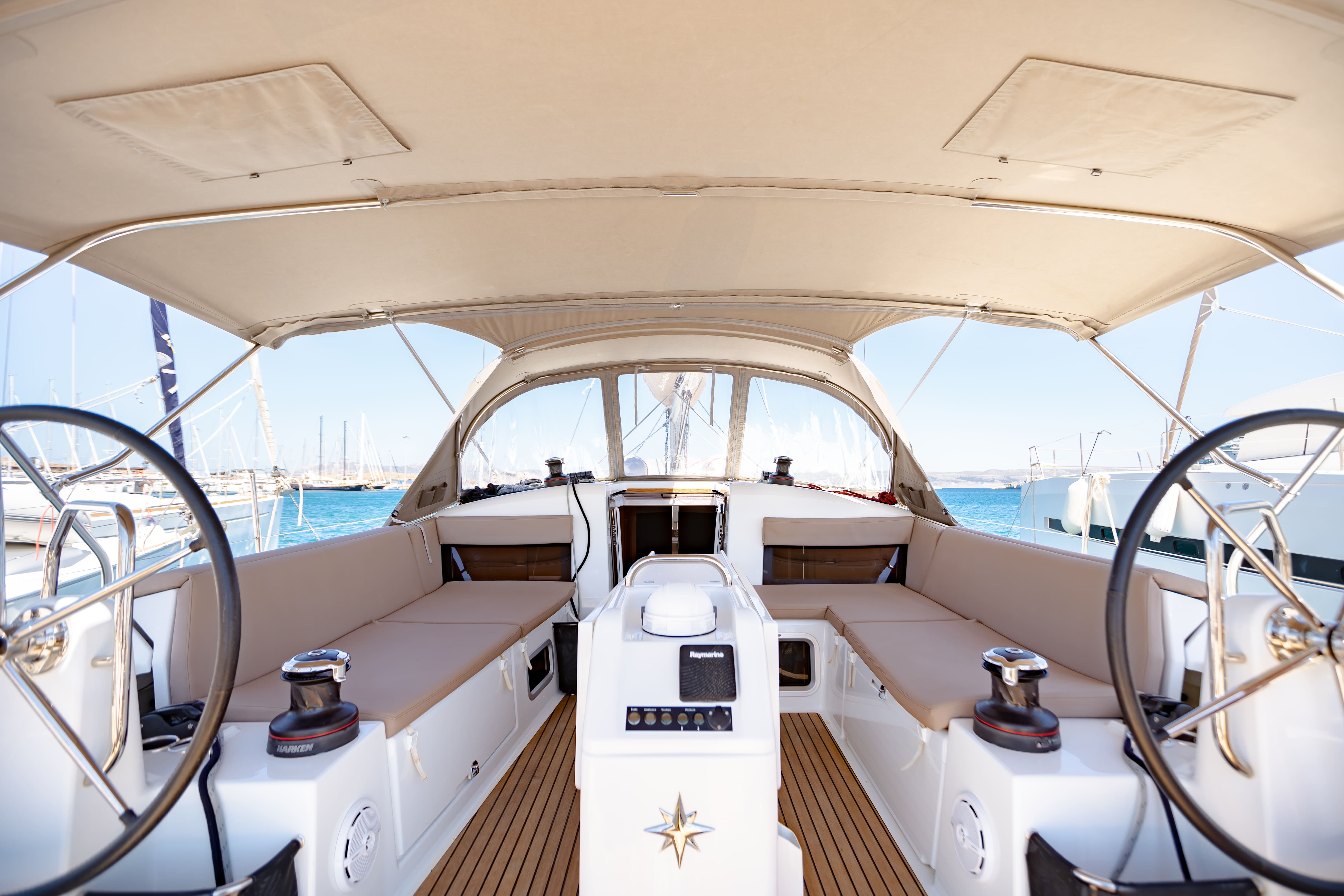 | Outside | 220V shore connection, Bathing ladder, Bimini top, Cockpit shower, Cockpit cushions, Cockpit table, Electr. anchor windlass, Snorkeling gear, Solar panels, Sprayhood |